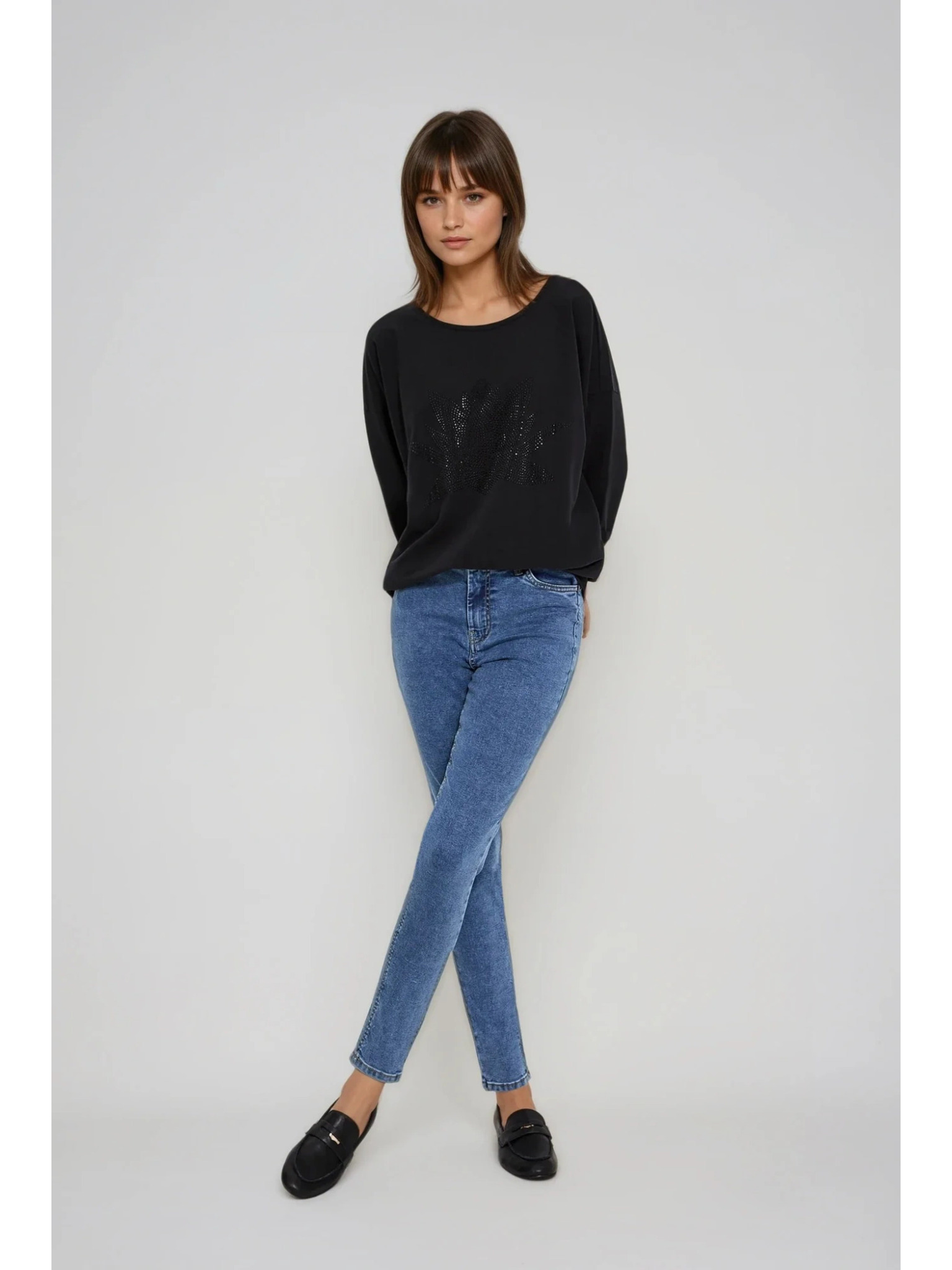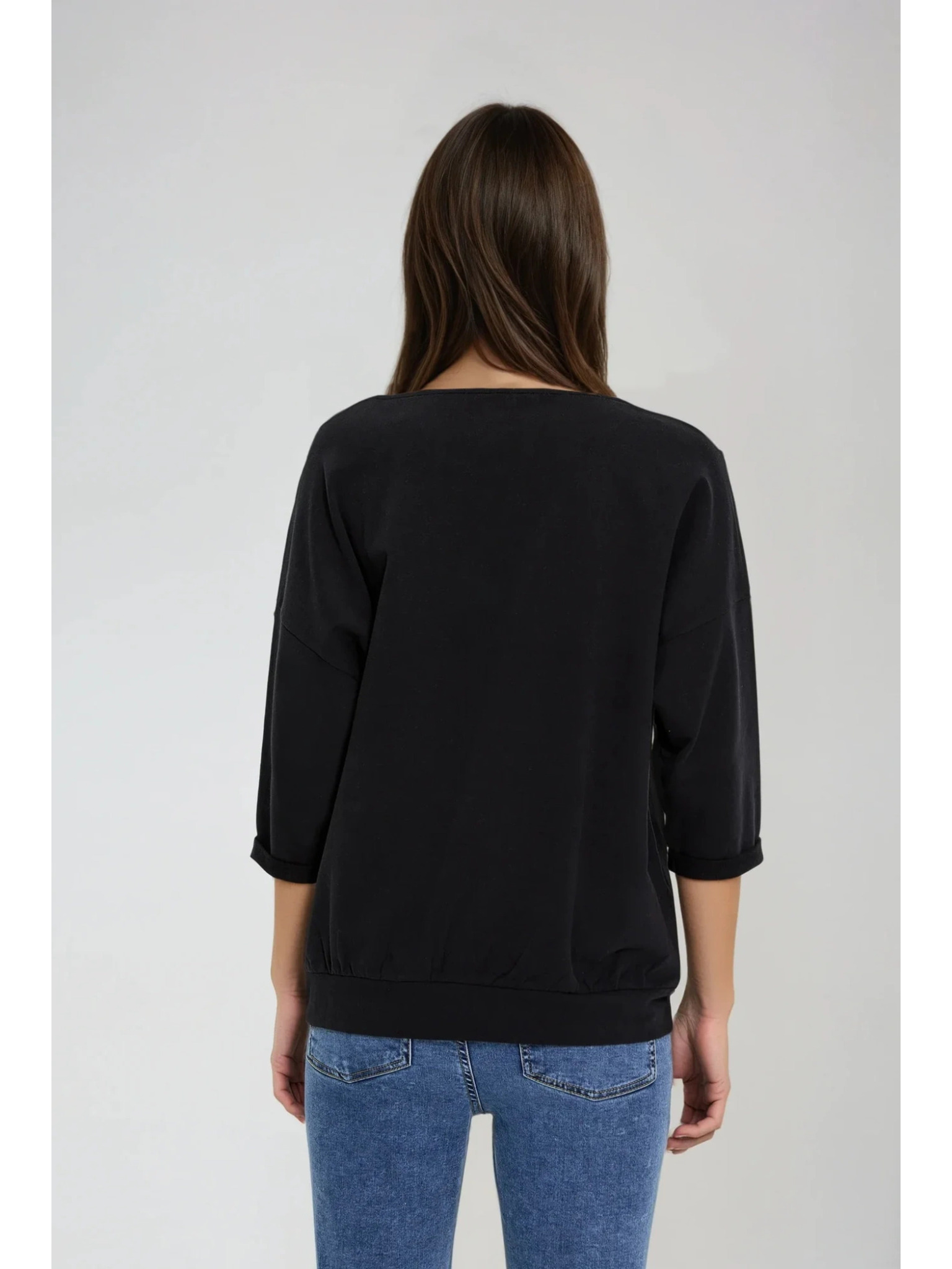 Černá halenka s nařaseným výstřihem a dlouhým rukávem