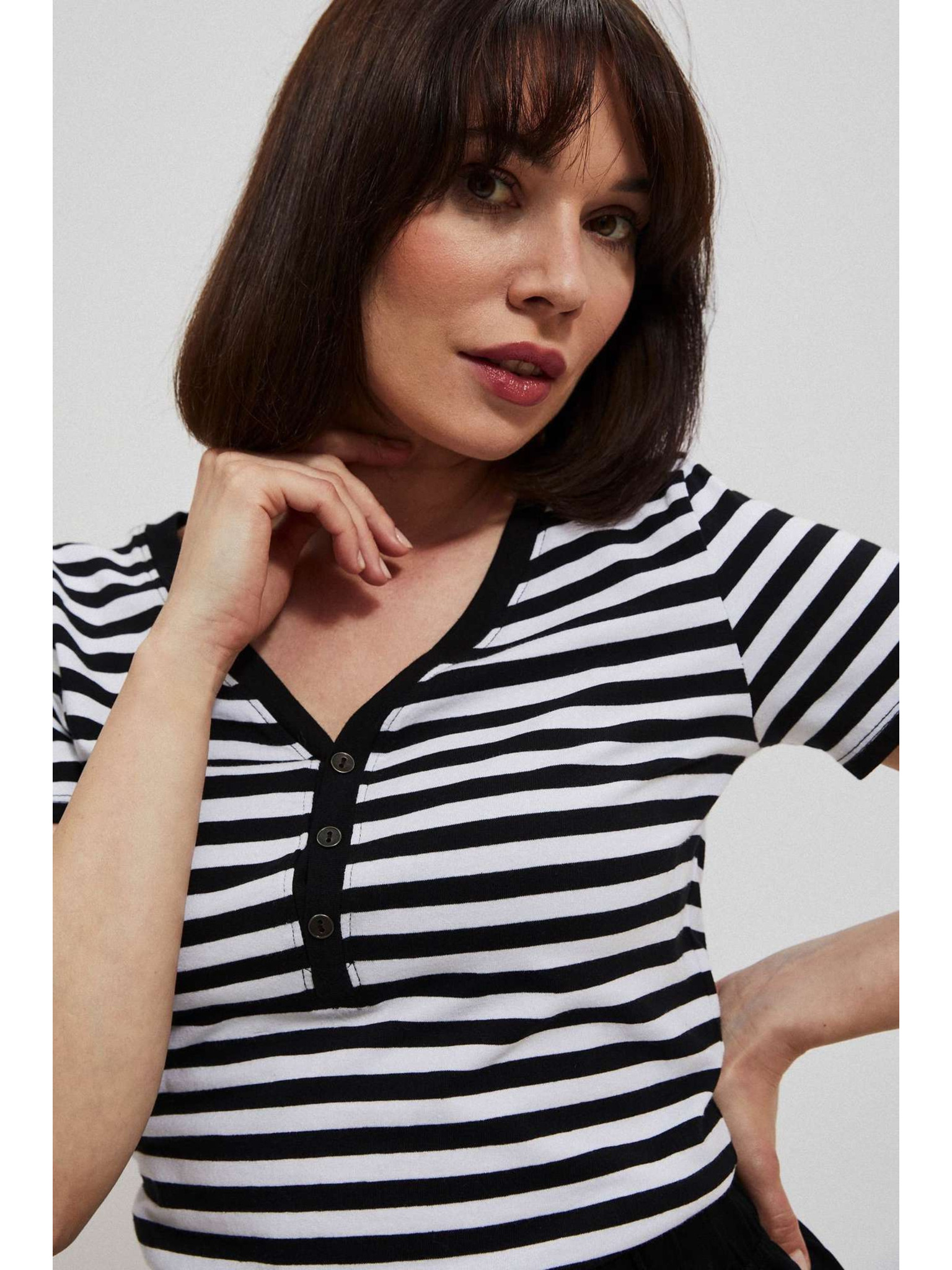 Bavlněné tričko s výstřihem do véčka mátové Moodo