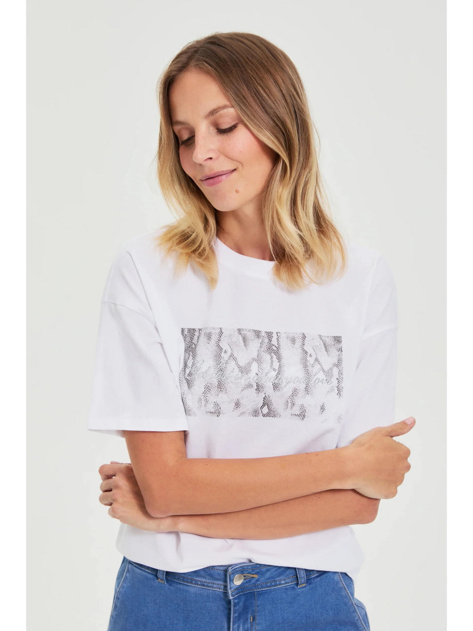 Bavlněné tričko s potiskem bílé Moodo