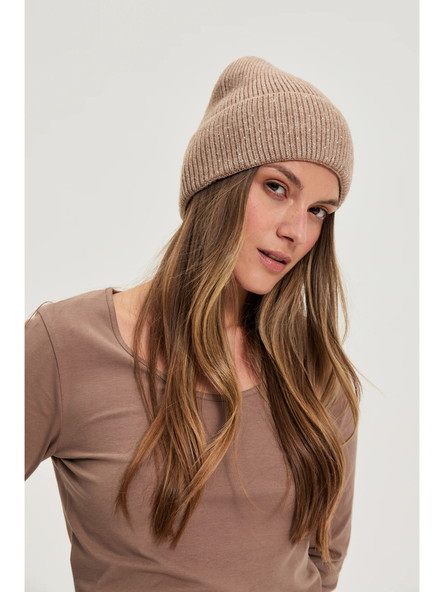 Čepice s metalickou nití béžová Moodo