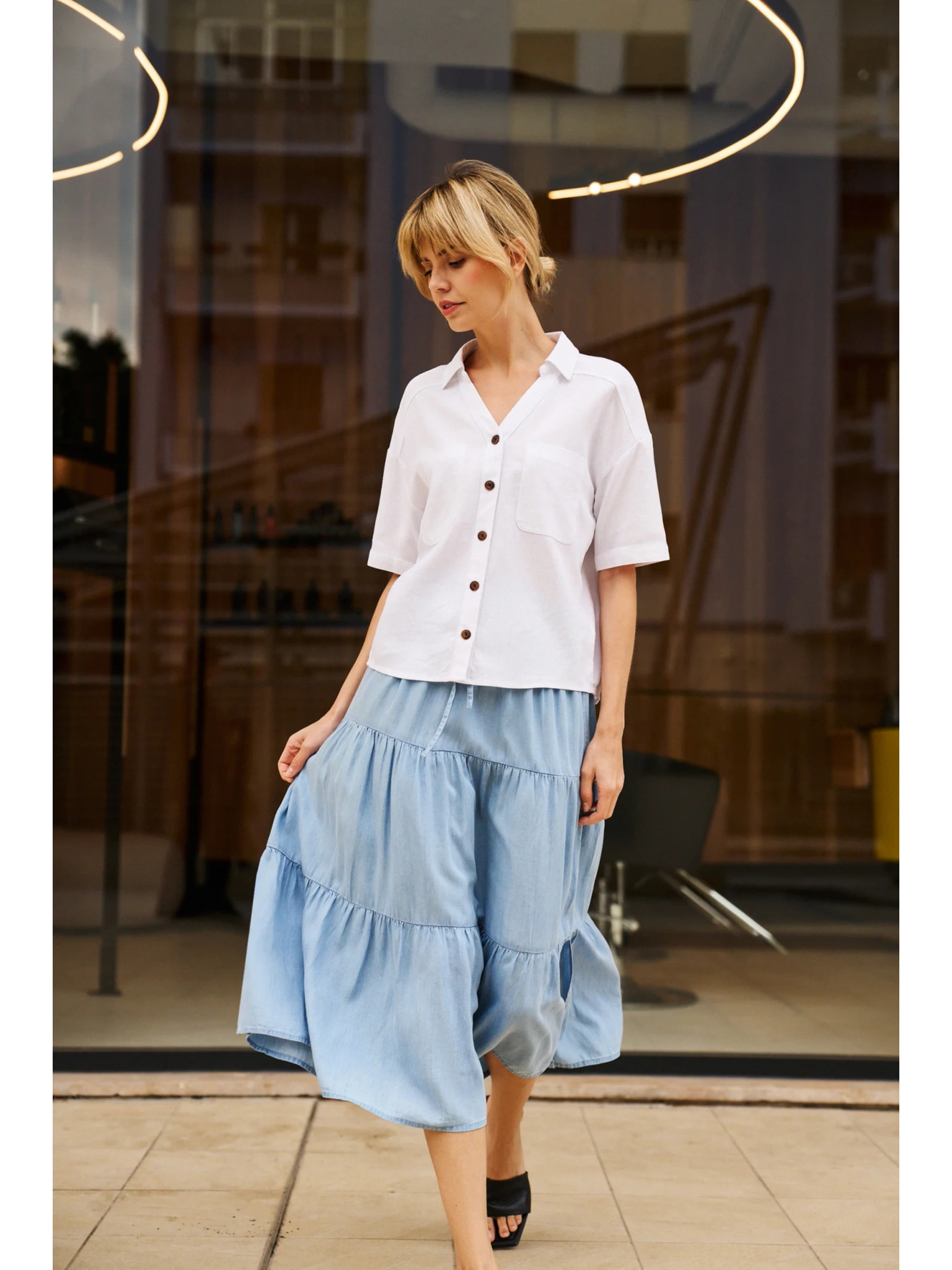 Světle modrá viskózová košile Moodo
