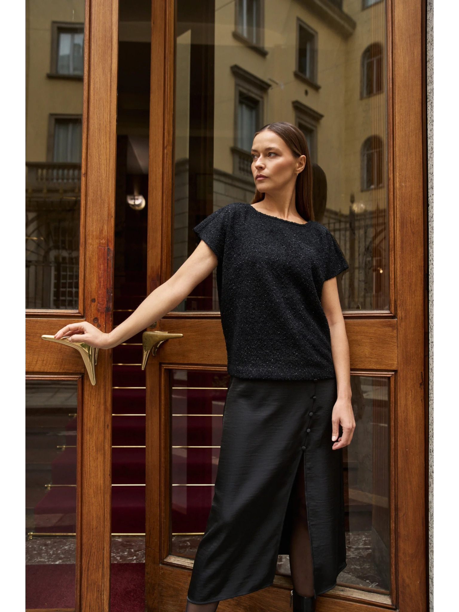 Černá volná halenka s krátkým rukávem
