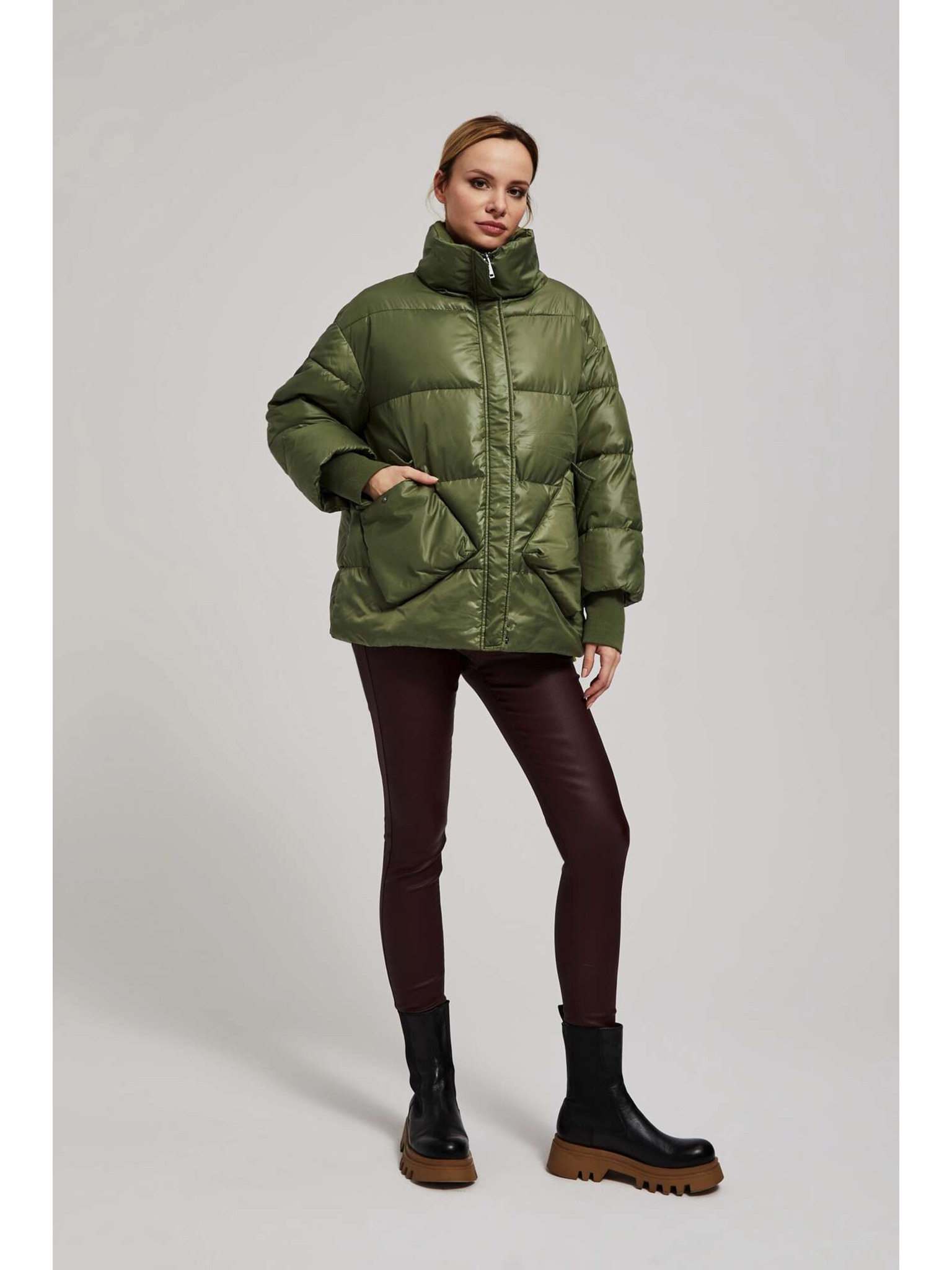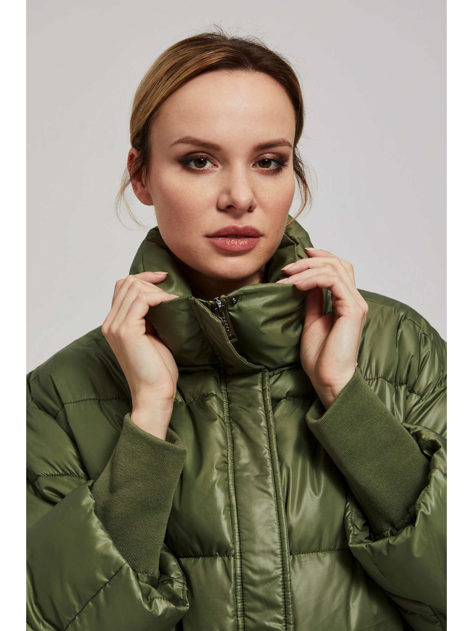 Prošívaná bunda s kapucí olivová Moodo