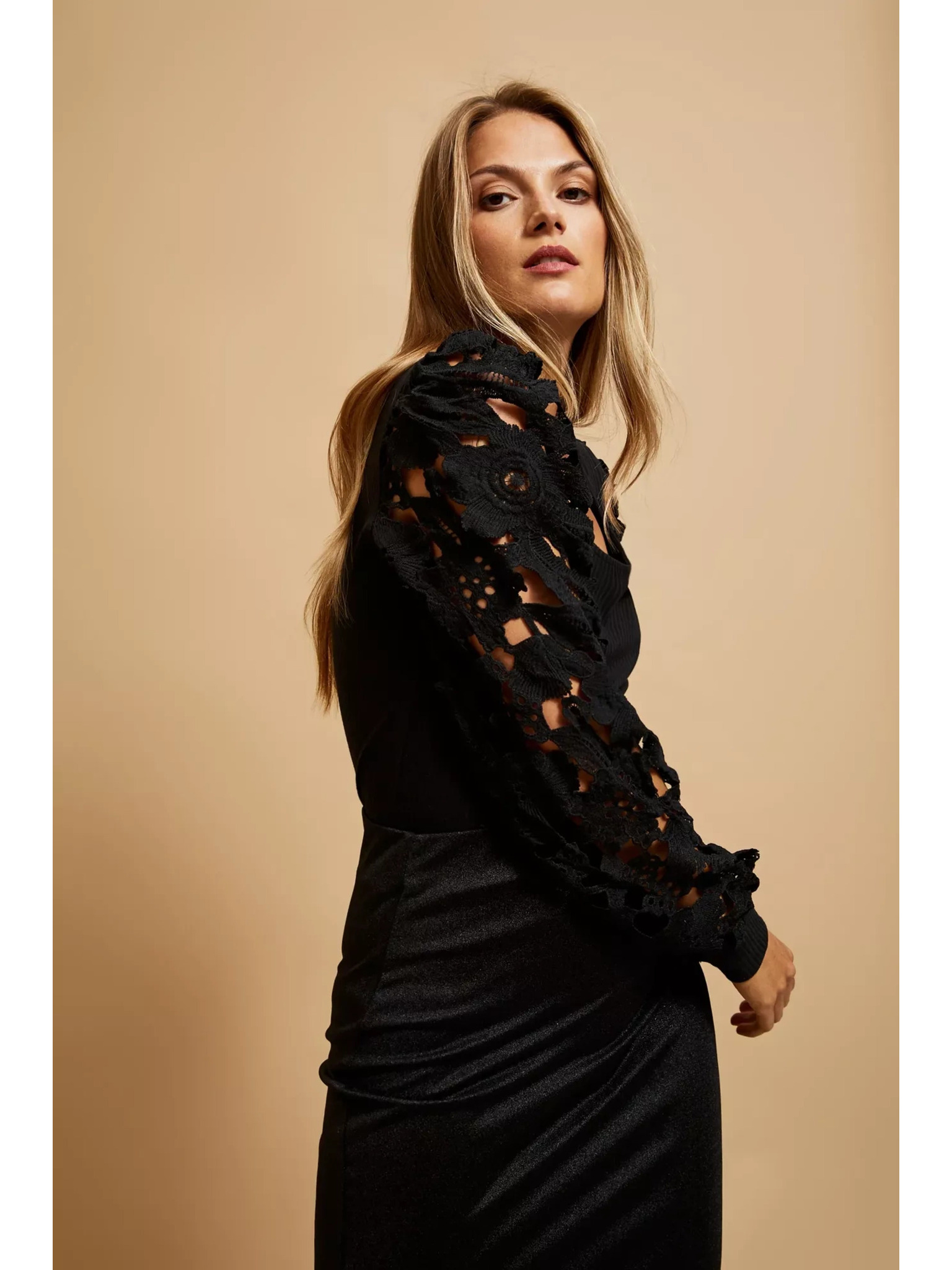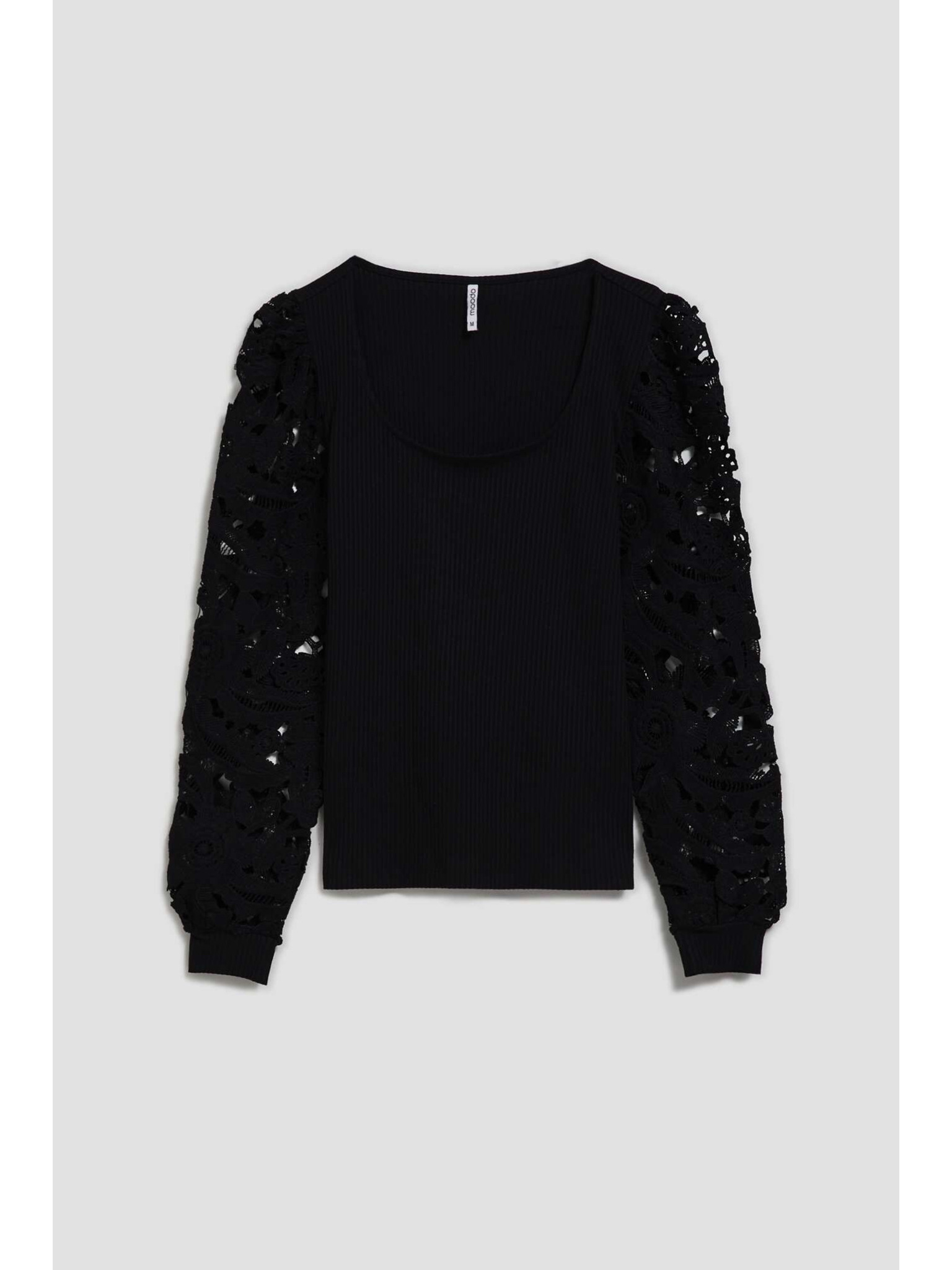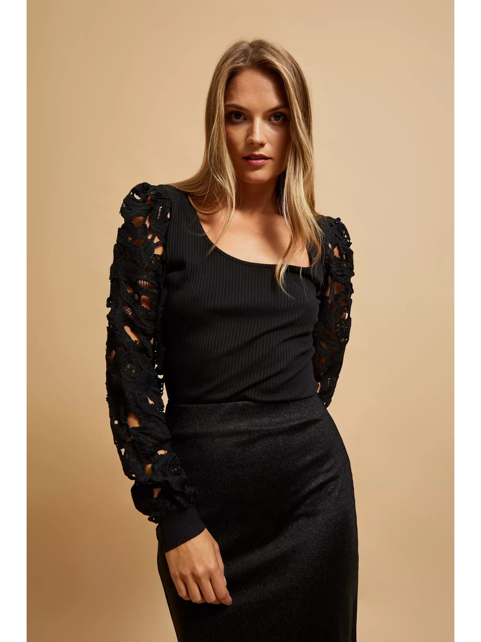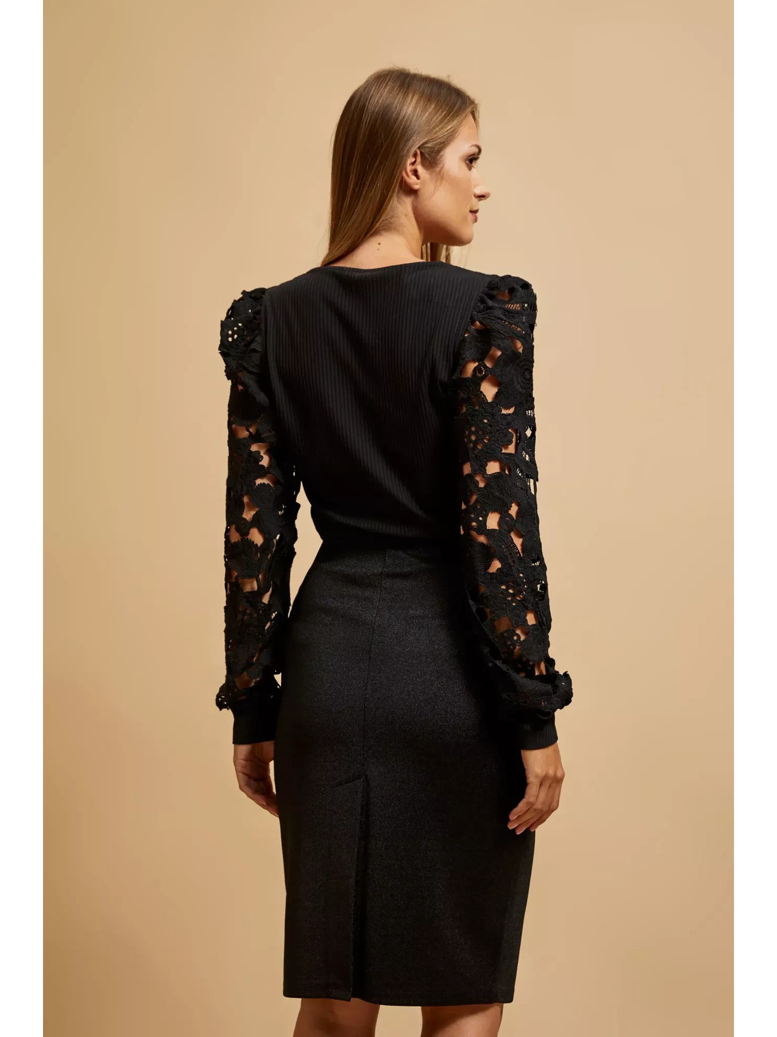 Černá halenka s ručně přišívanými korálky na výstřihu Moodo