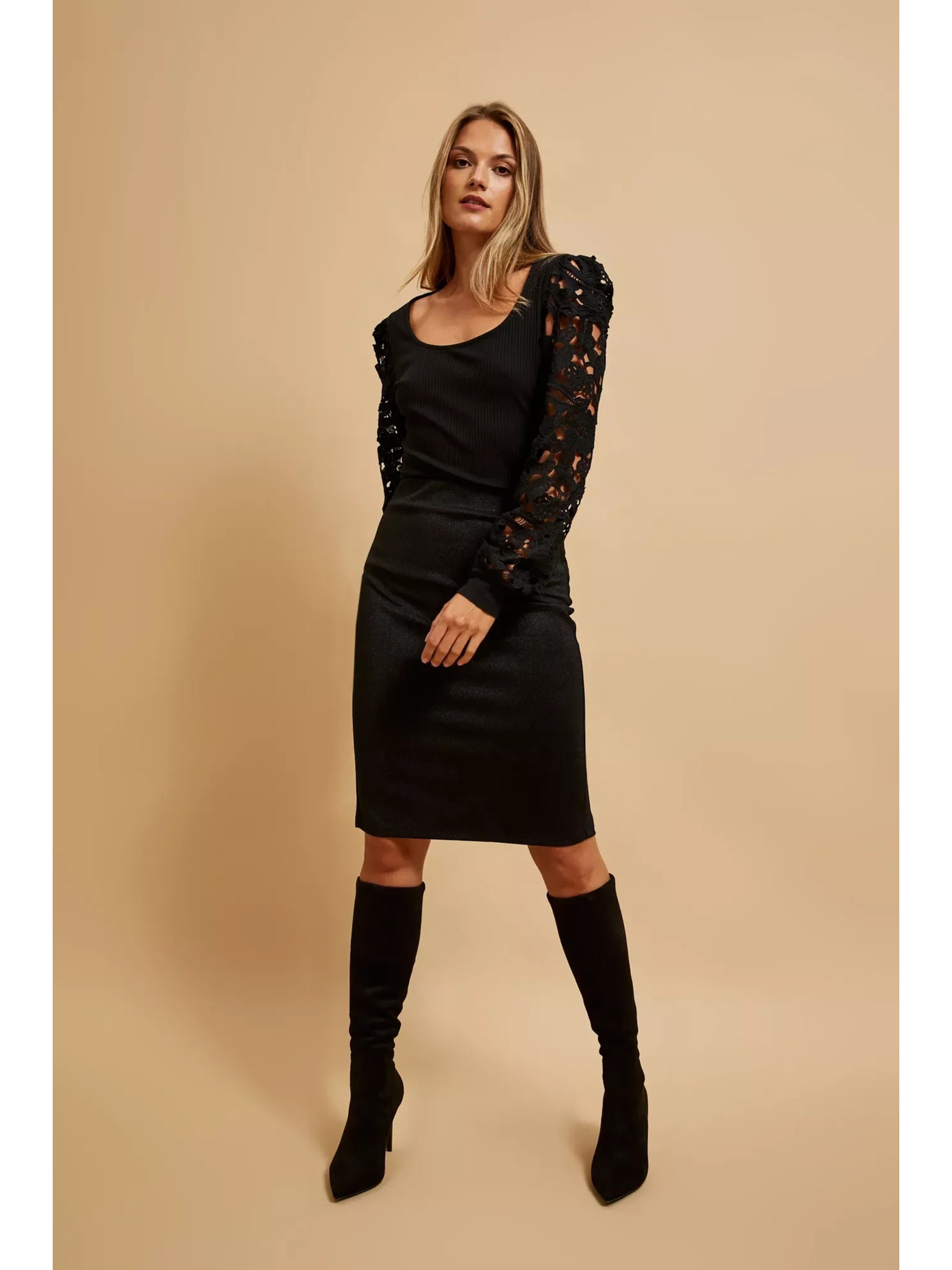 Elegantní košile černá s nabíranými rukávy Moodo