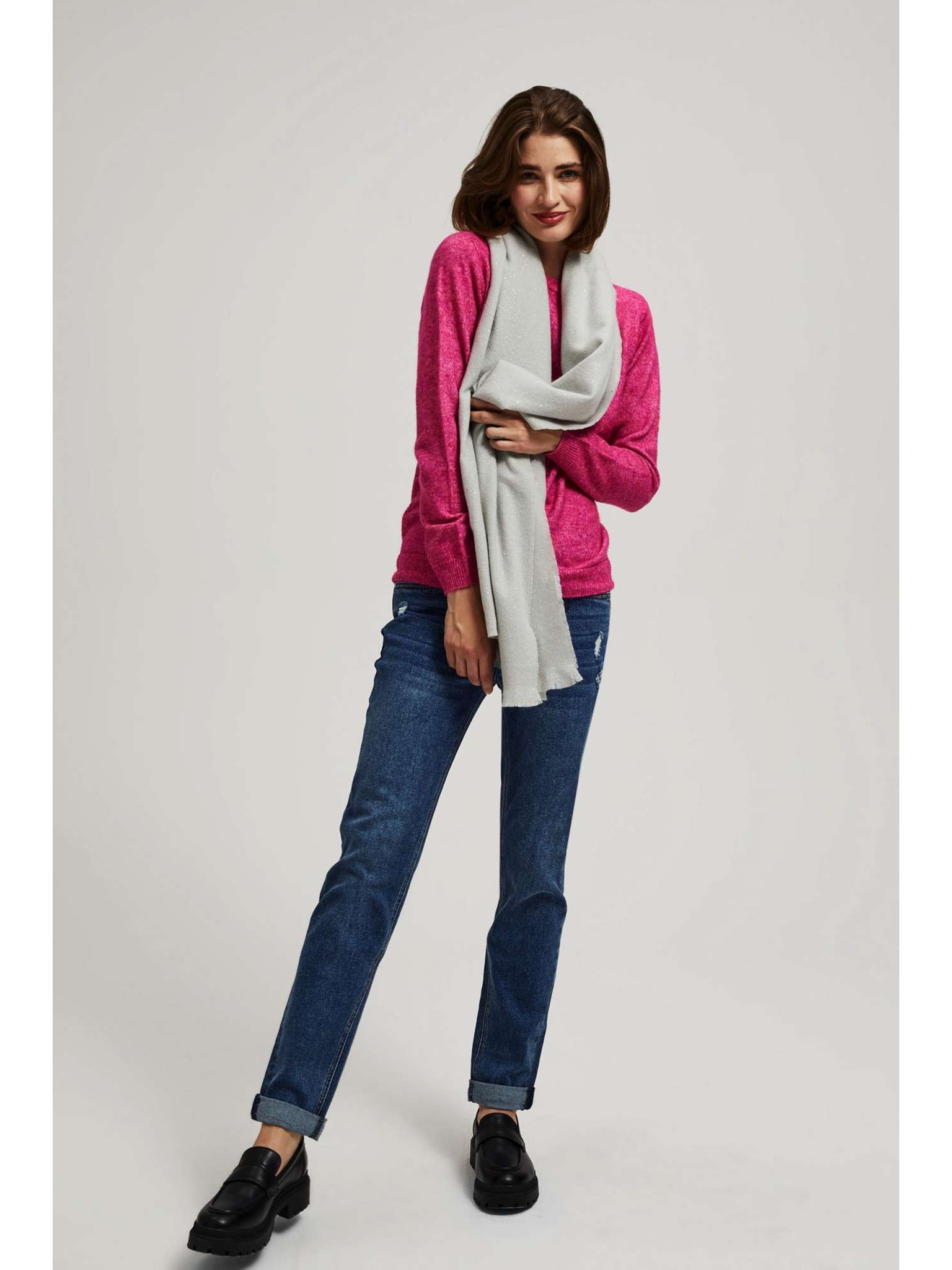 Šedý letní šátek s roztřepeným okrajem Moodo