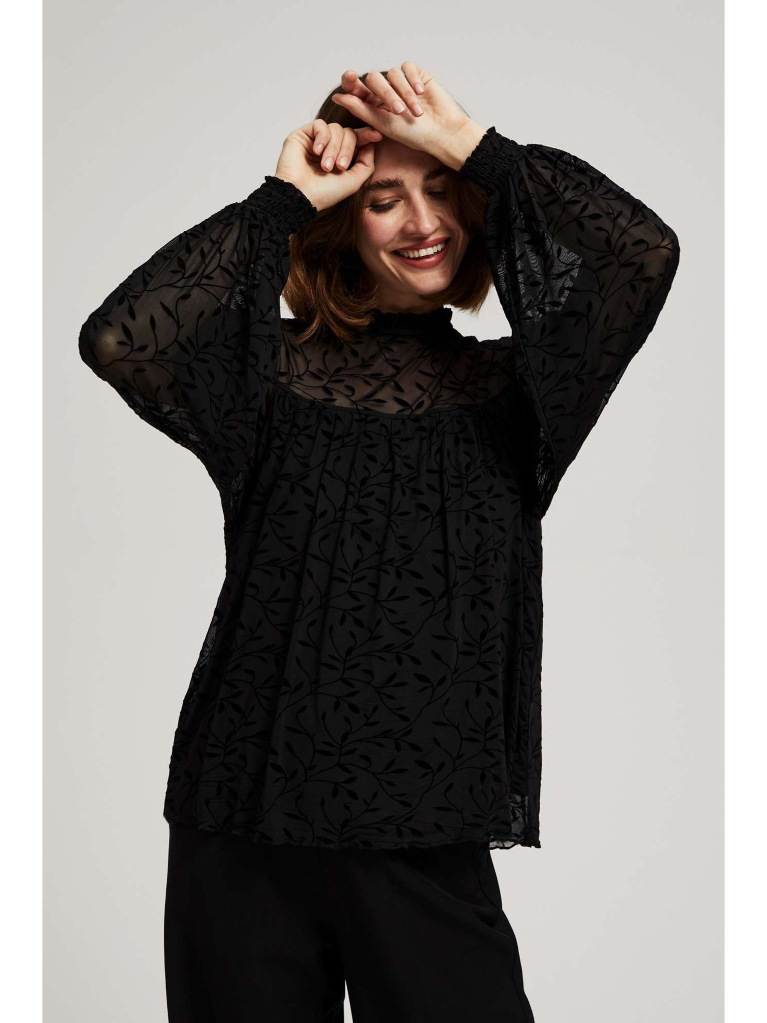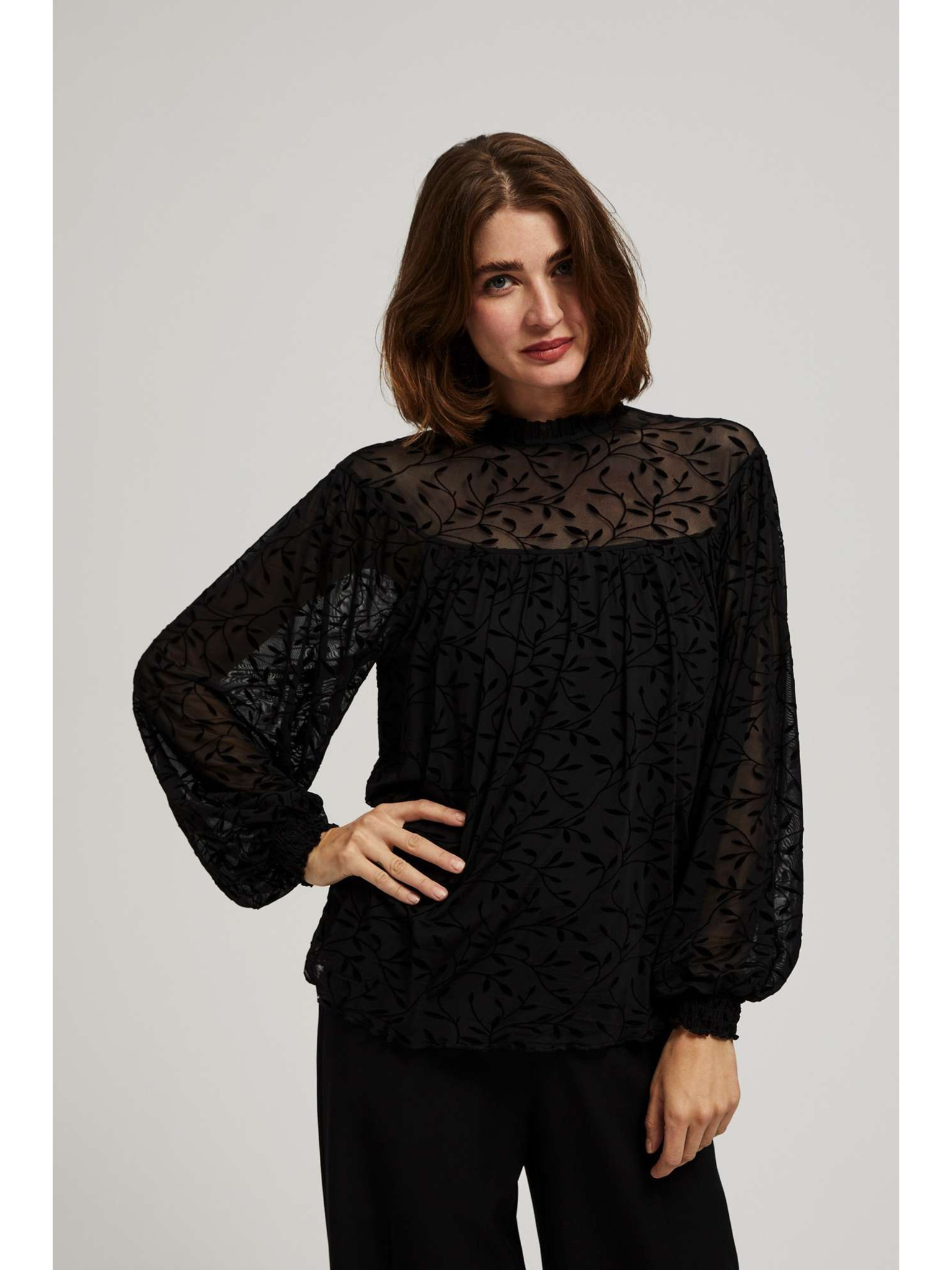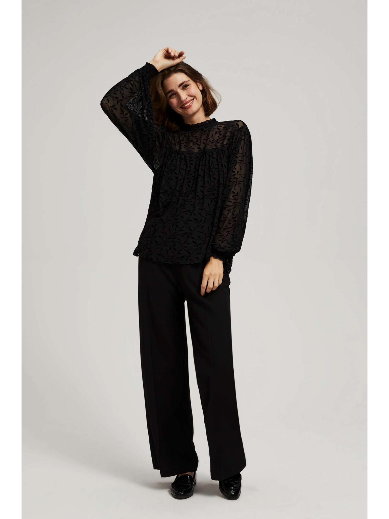Černá košile s nabíranými rukávy Moodo