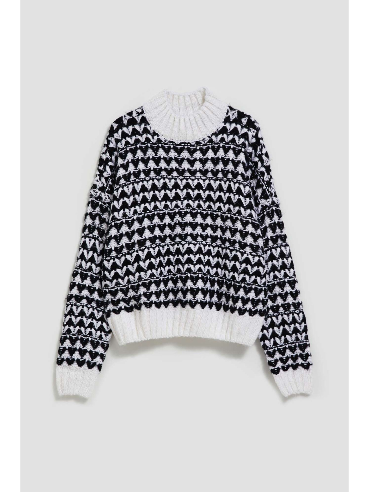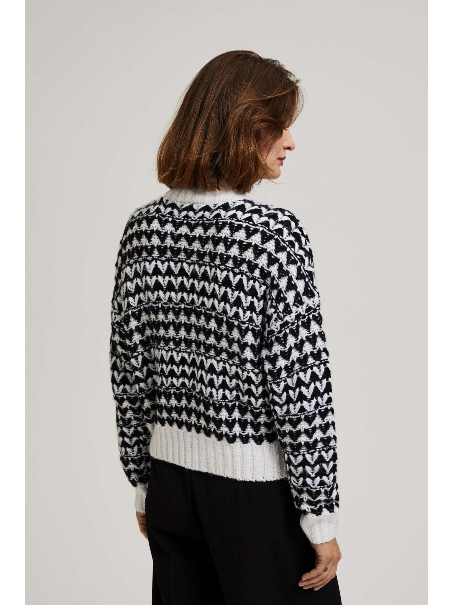 Svetr s ozdobným pletencem a dlouhými rukávy černý Moodo