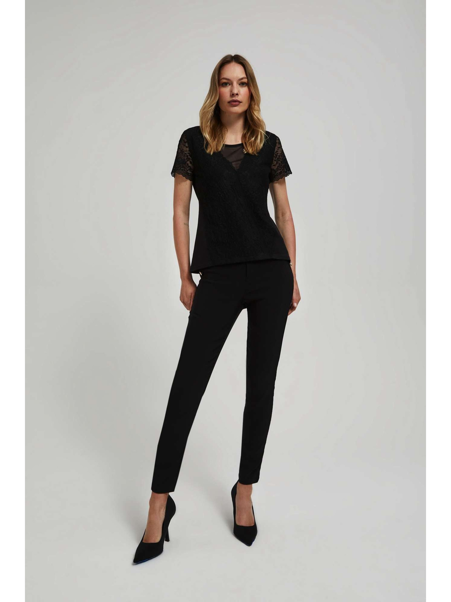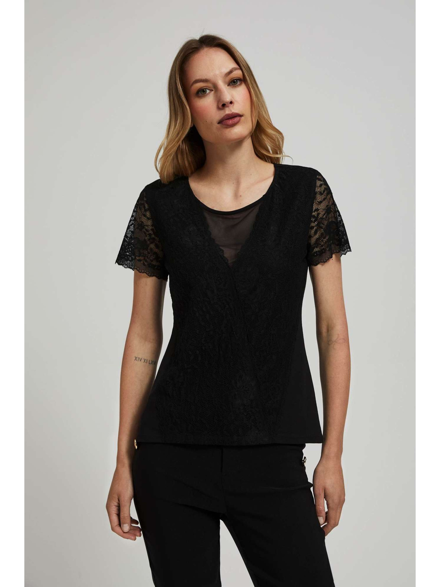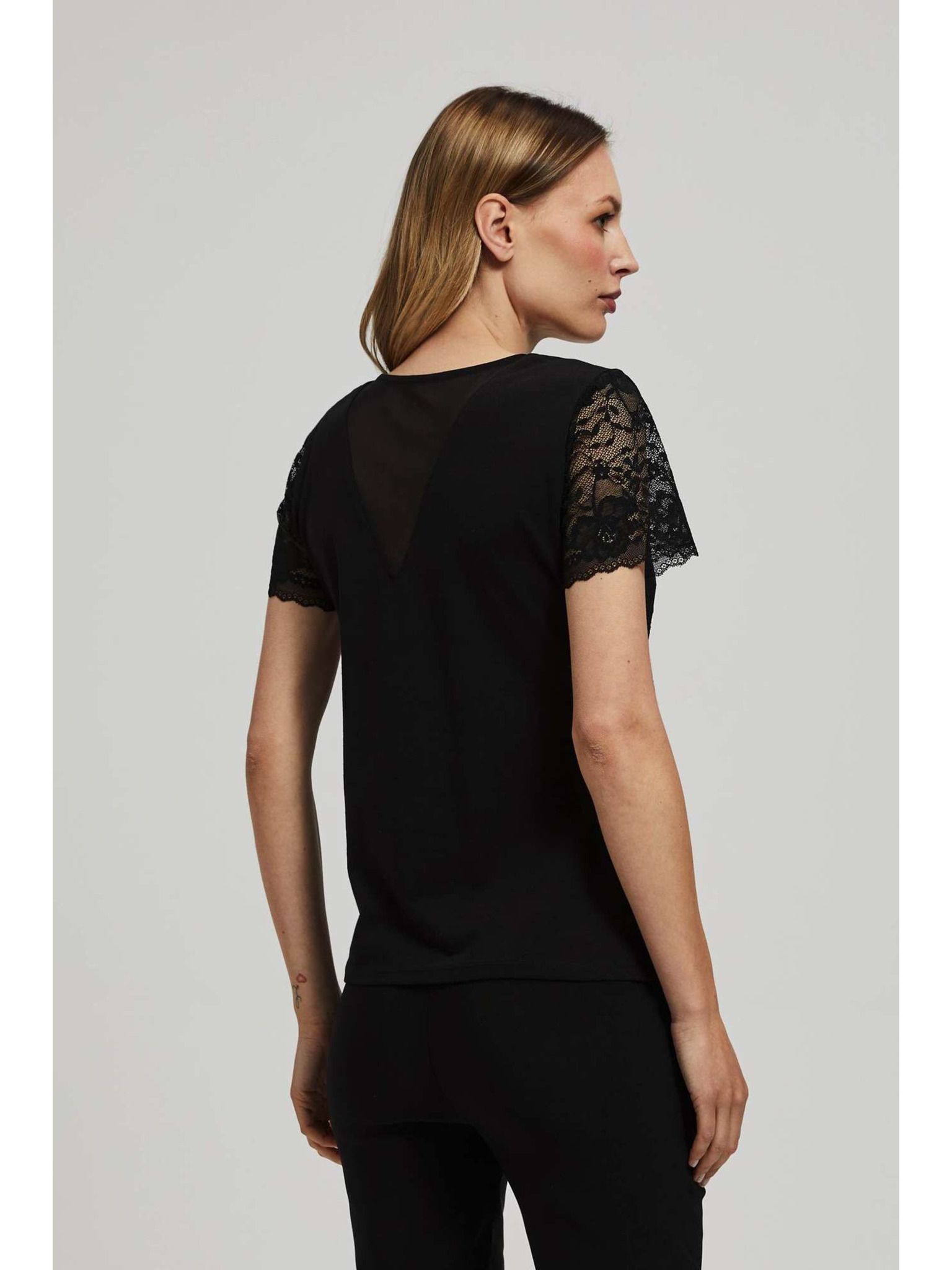Černá halenka s ručně přišívanými korálky na výstřihu Moodo
