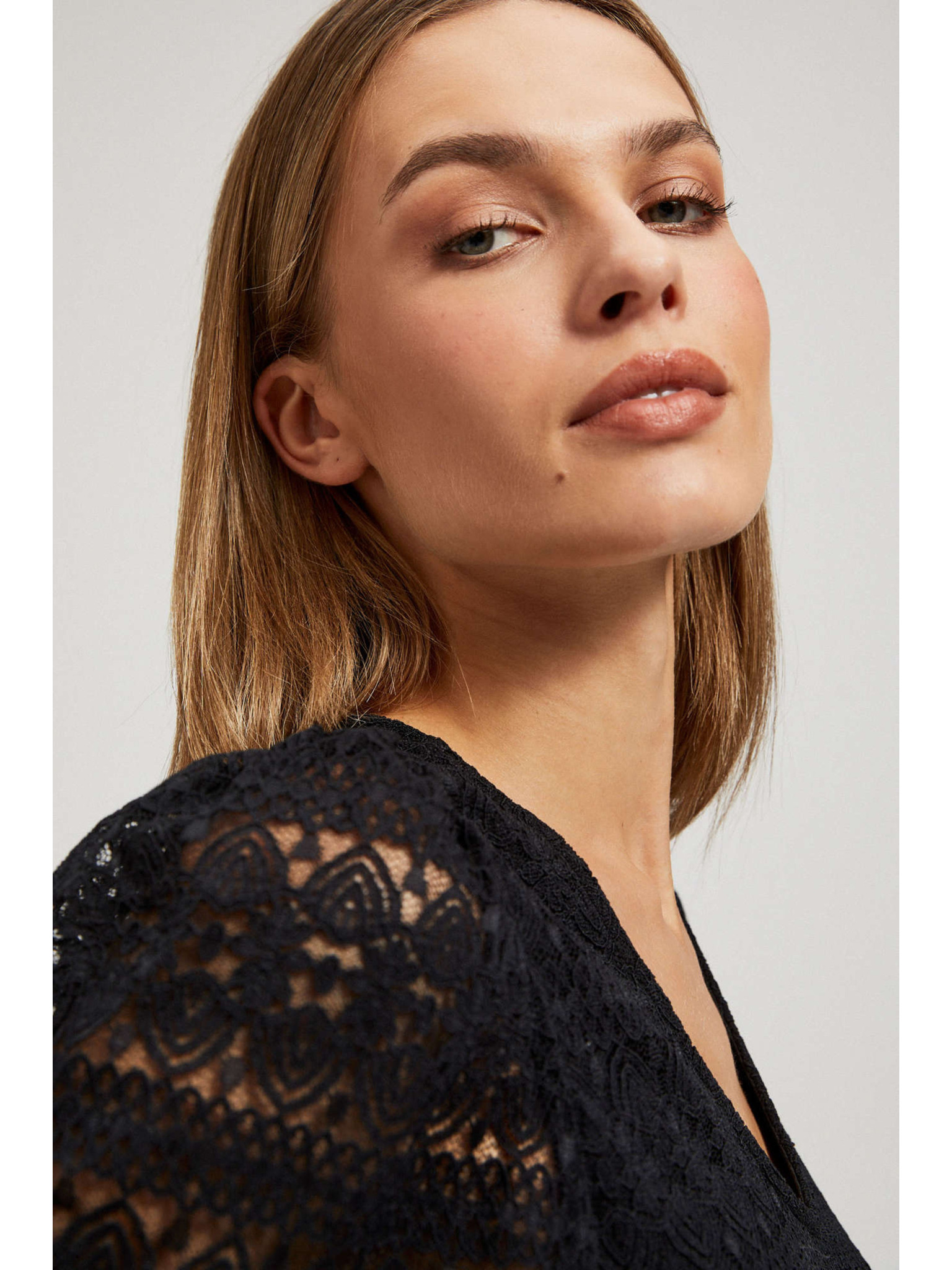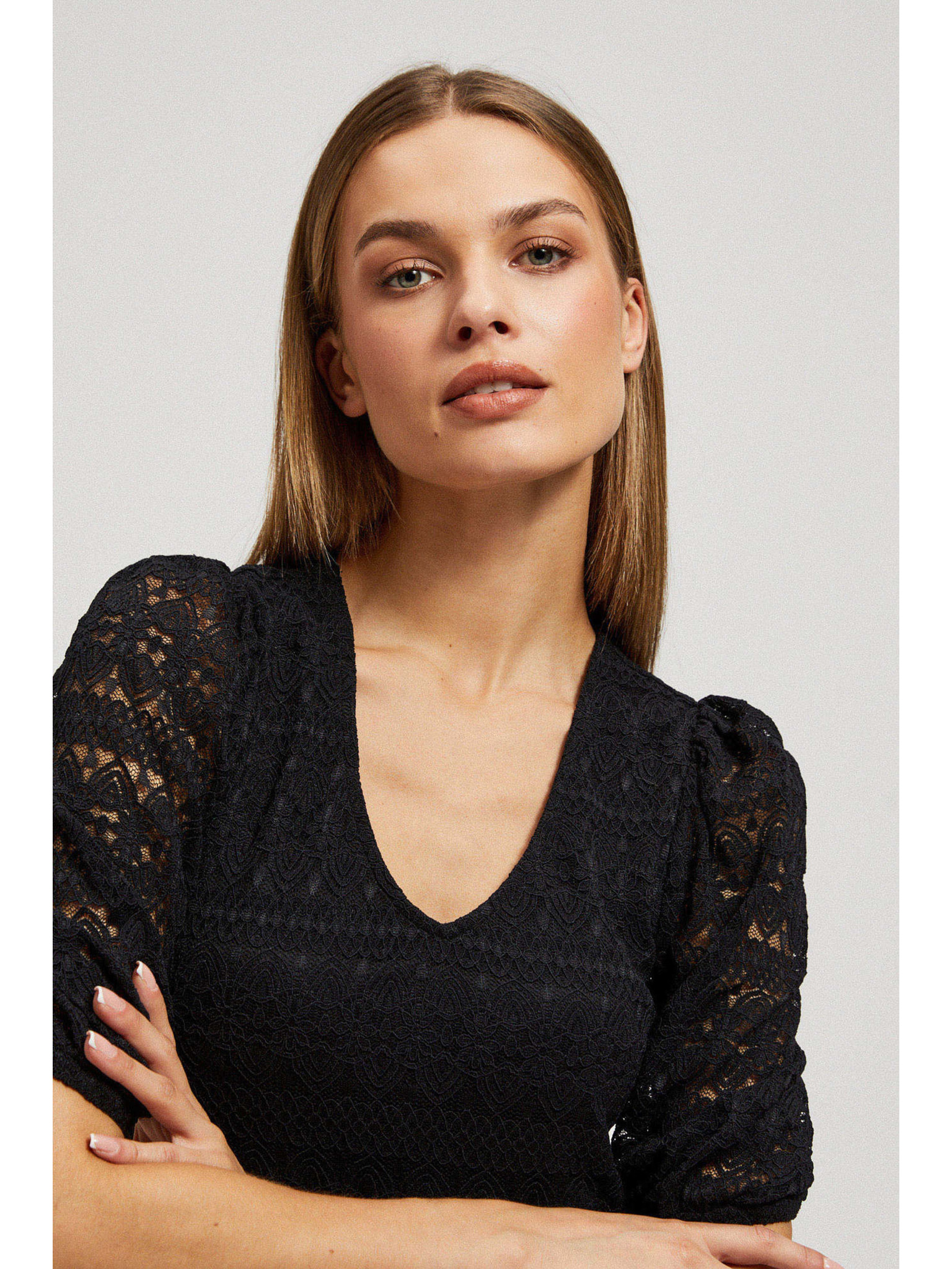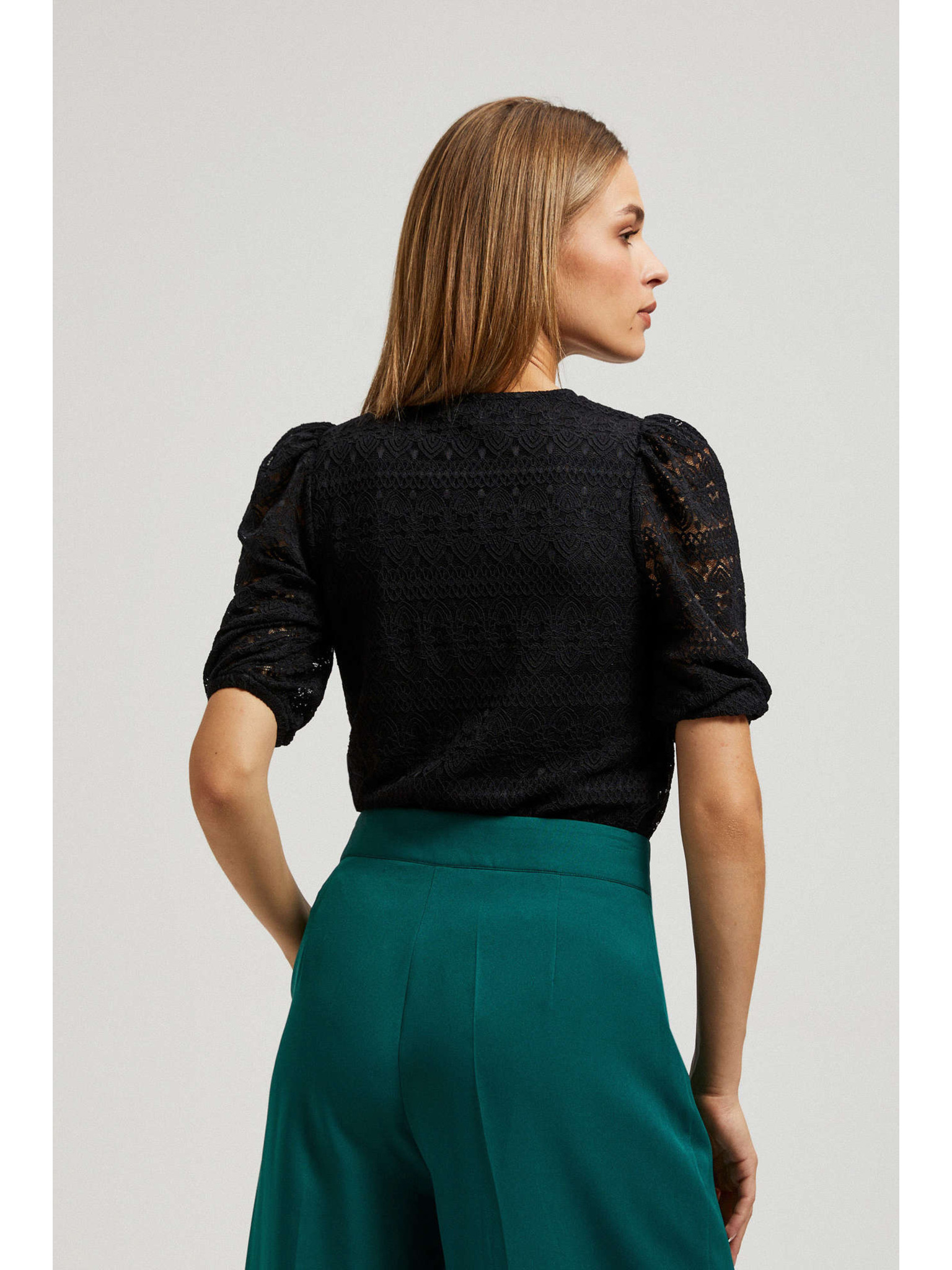 Černá krajková halenka s nafouklými rukávy Moodo