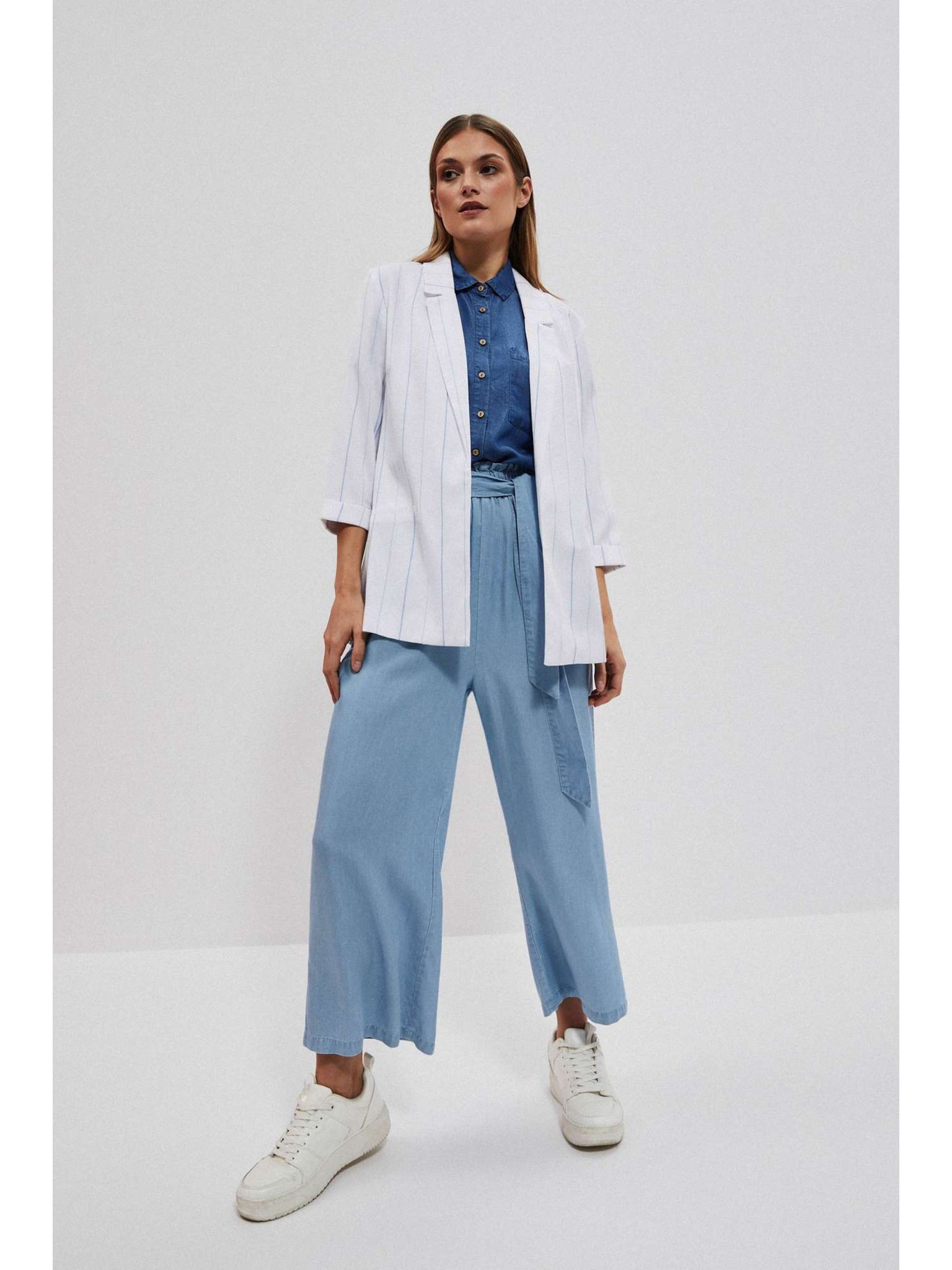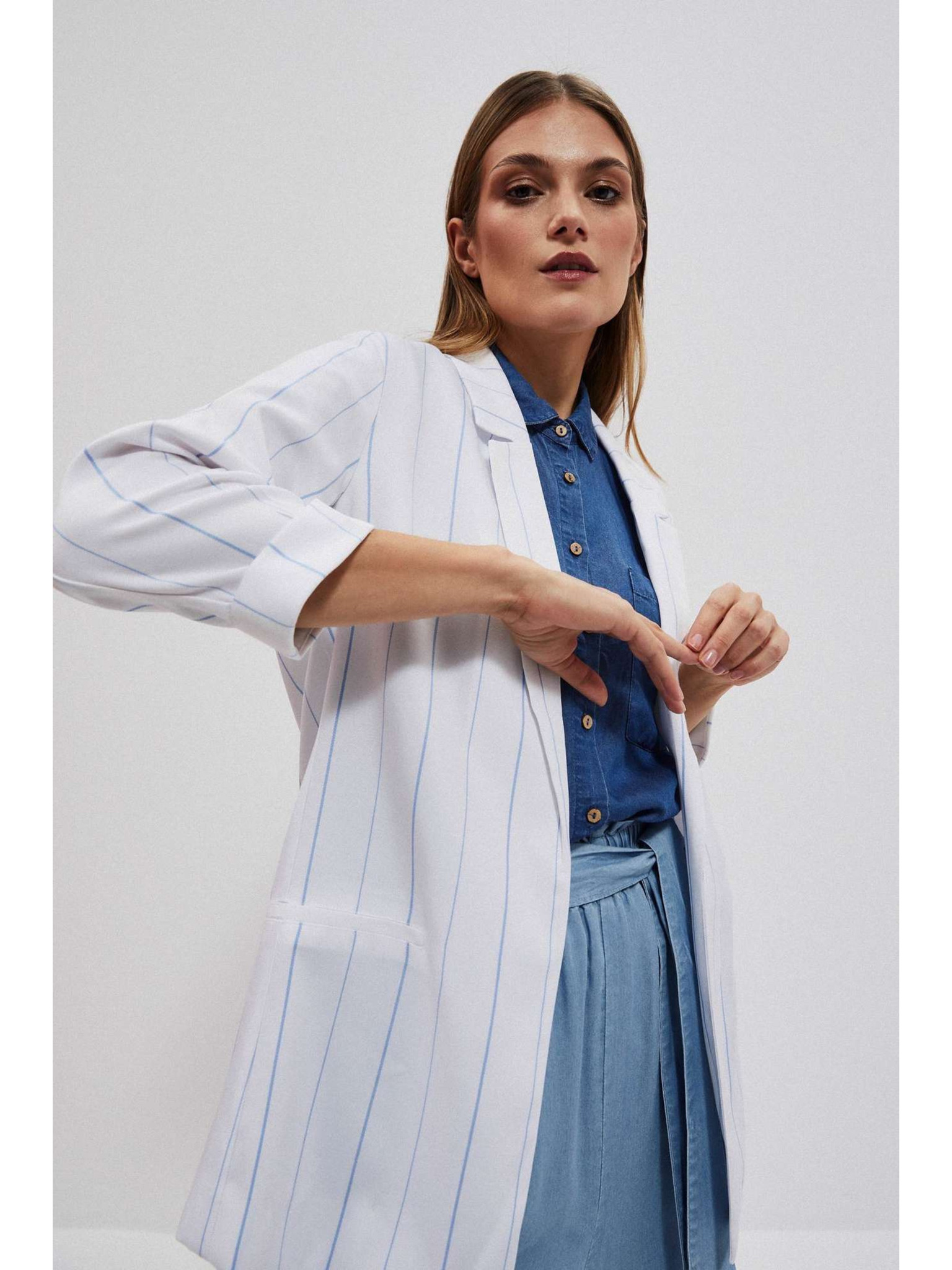 Viskózové sako s pruhy bílé Moodo