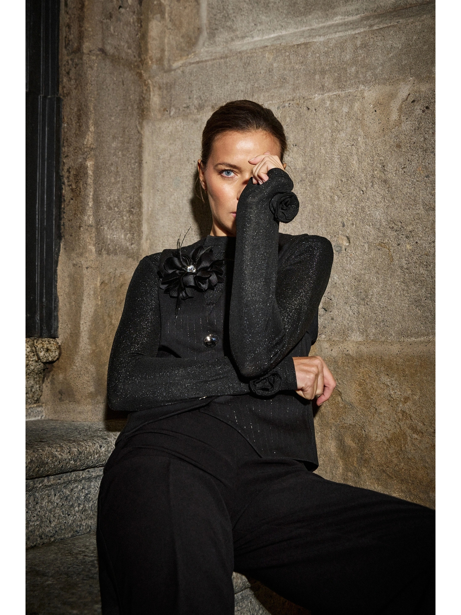 Elegantní sako černé s ozdobnými klopy Moodo