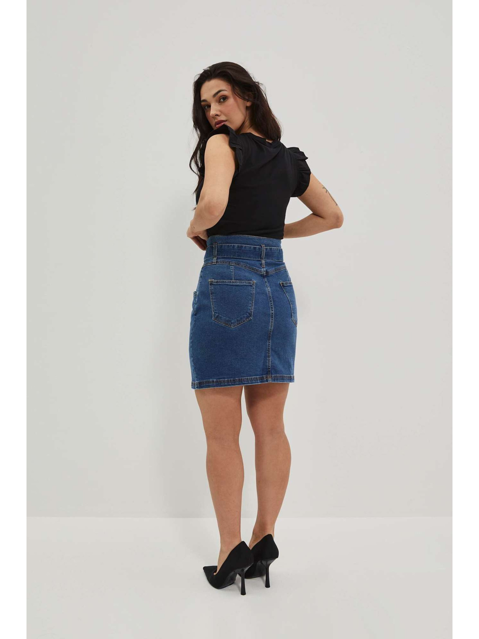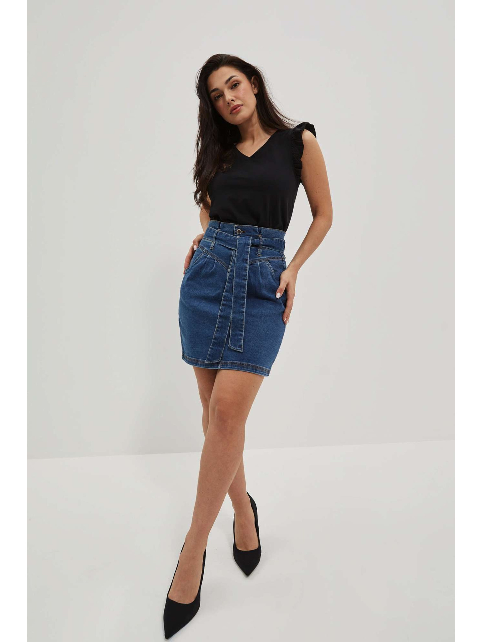 Modrá mini sukně s páskem Moodo