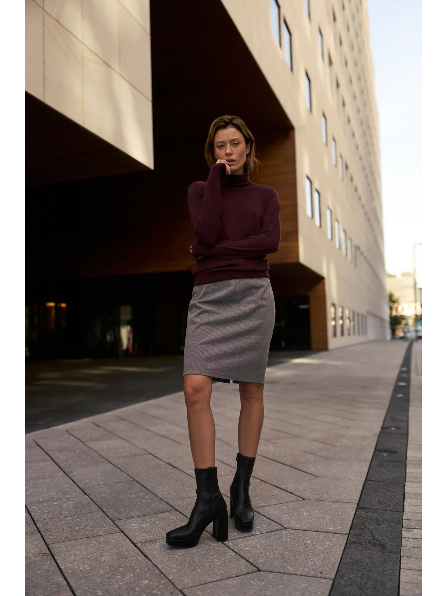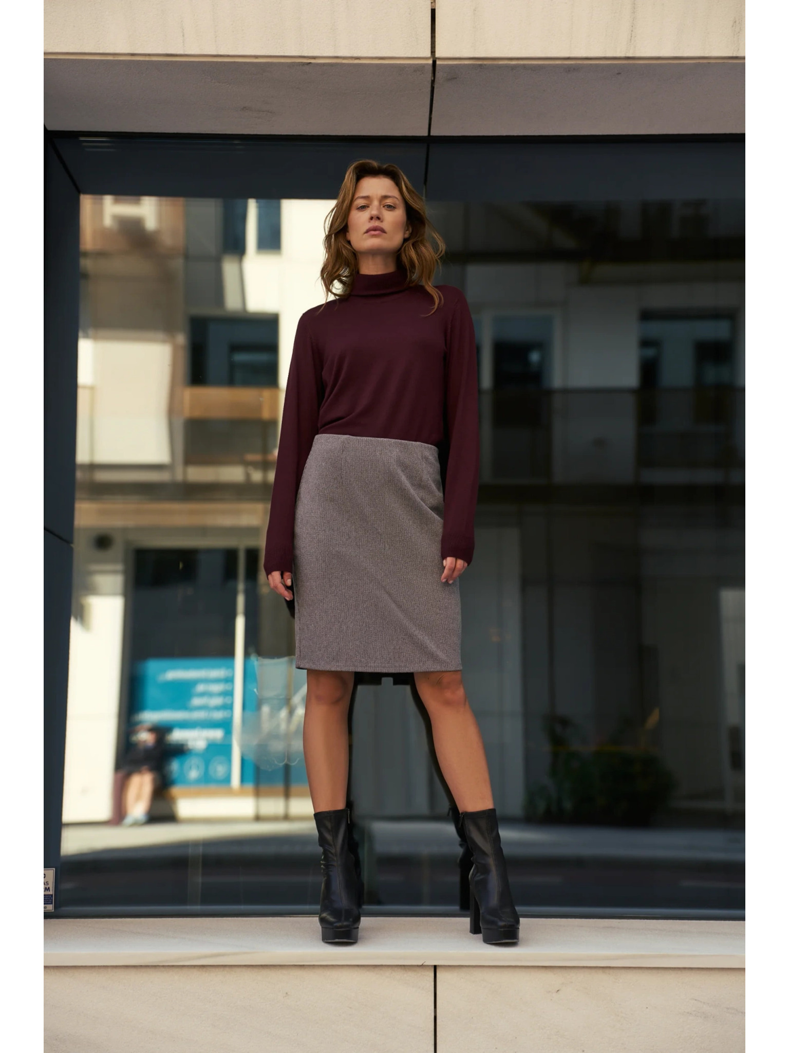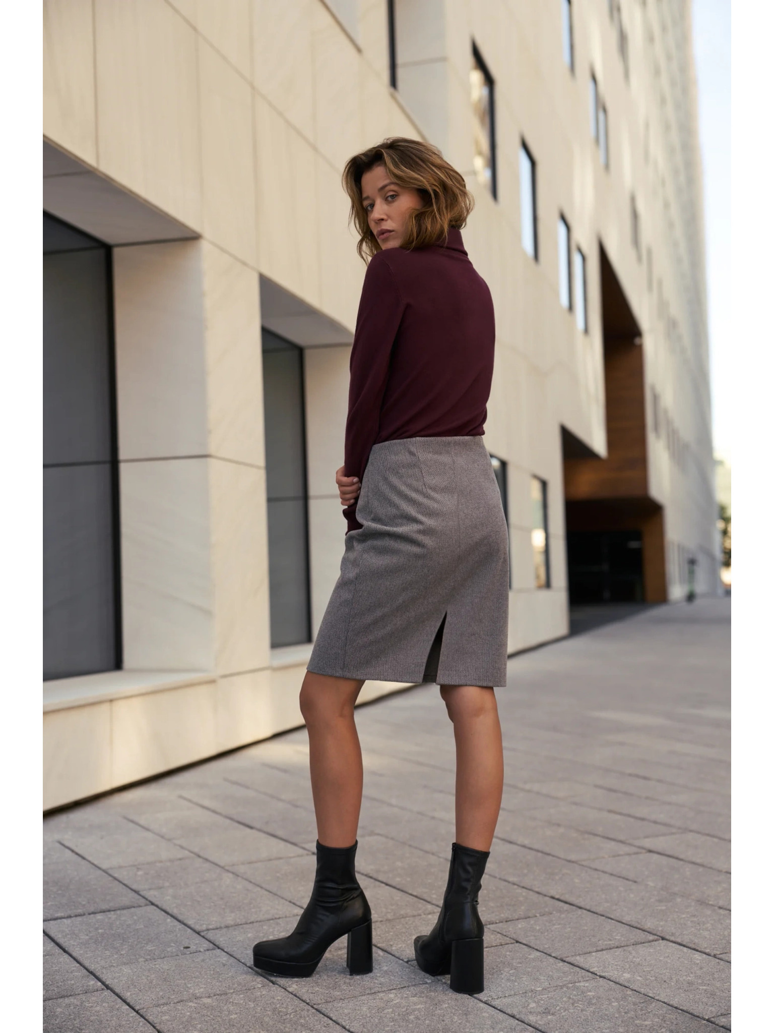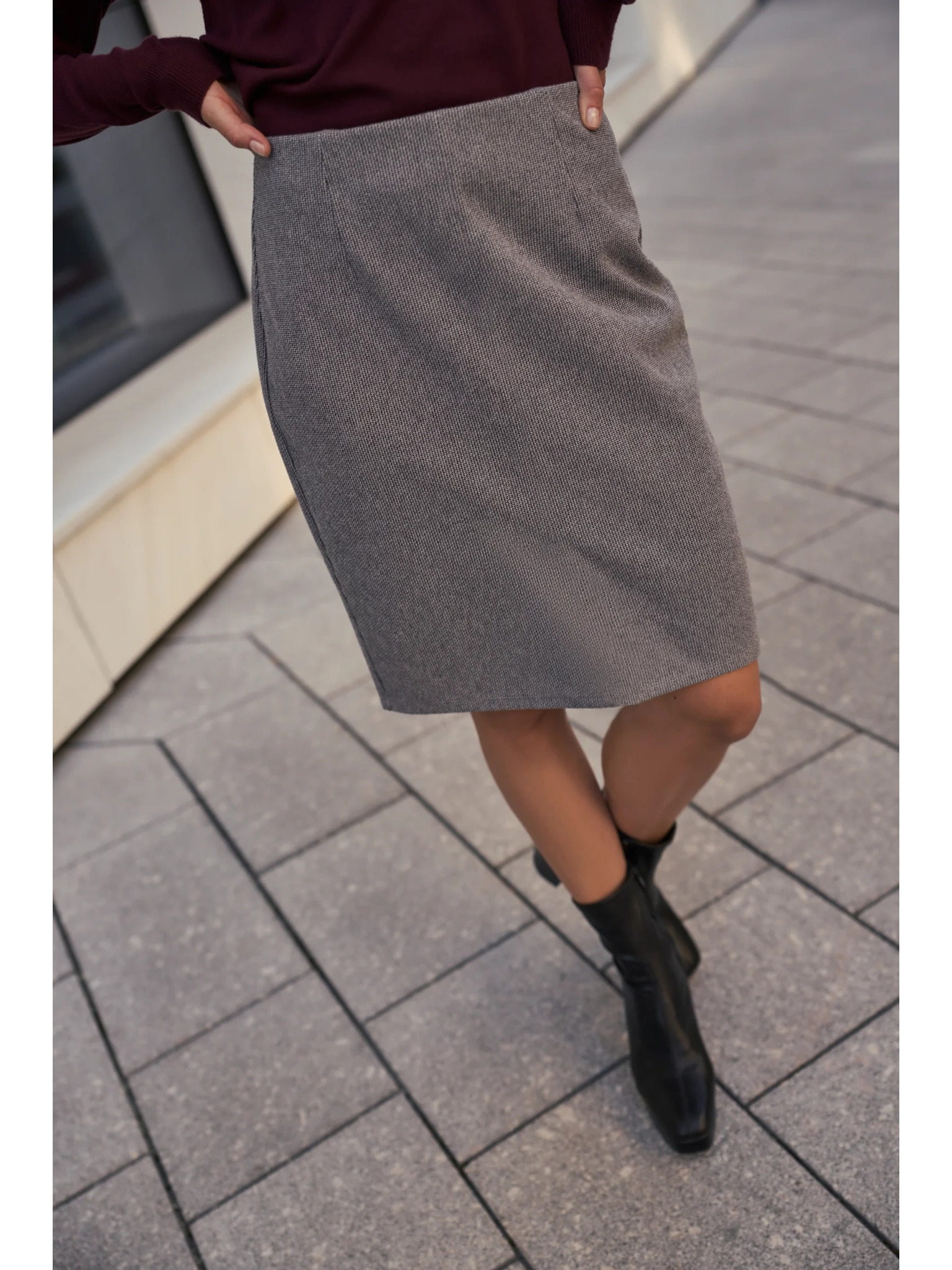 Tmavě šedá dámská károvaná pouzdrová sukně METROOPOLIS Fatima