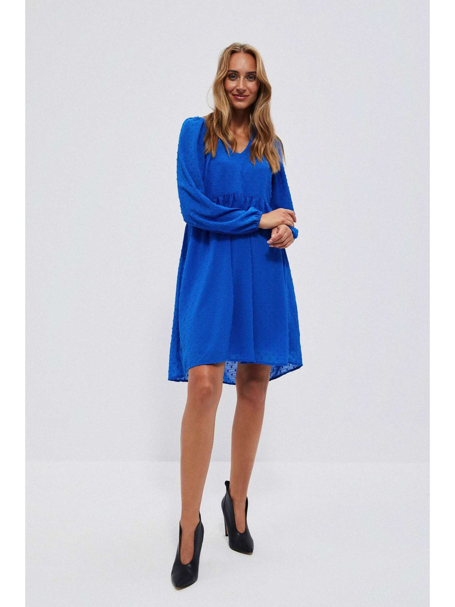Rozšířené šaty s výstřihem - tmavě modré Numoco SCARLETT