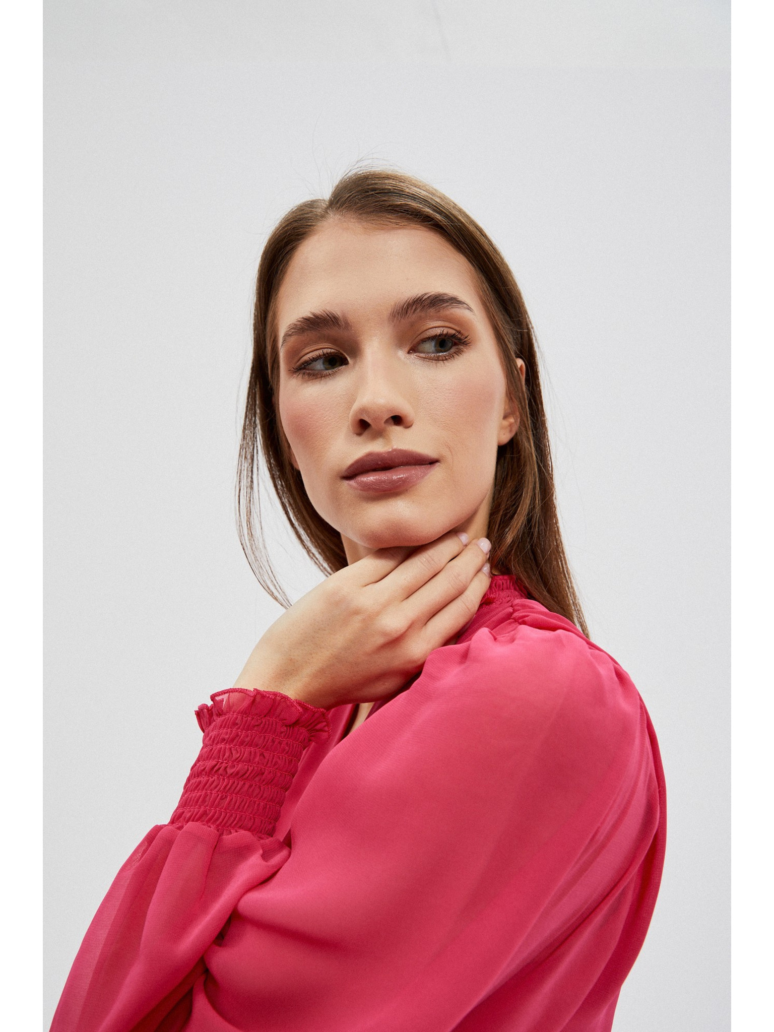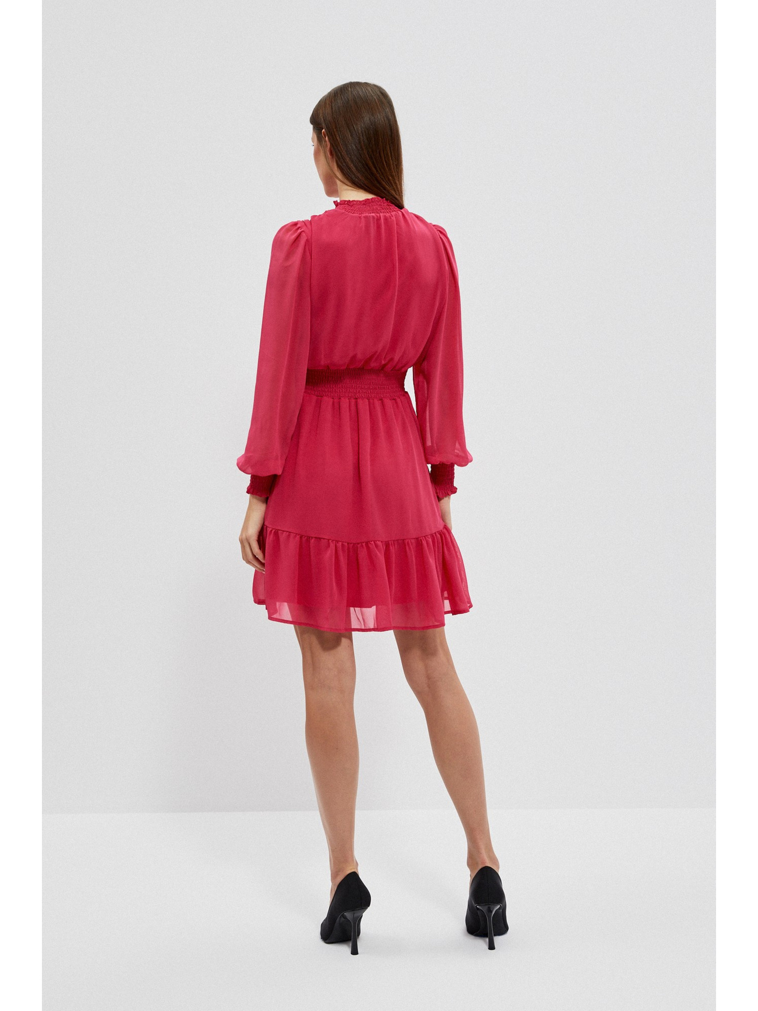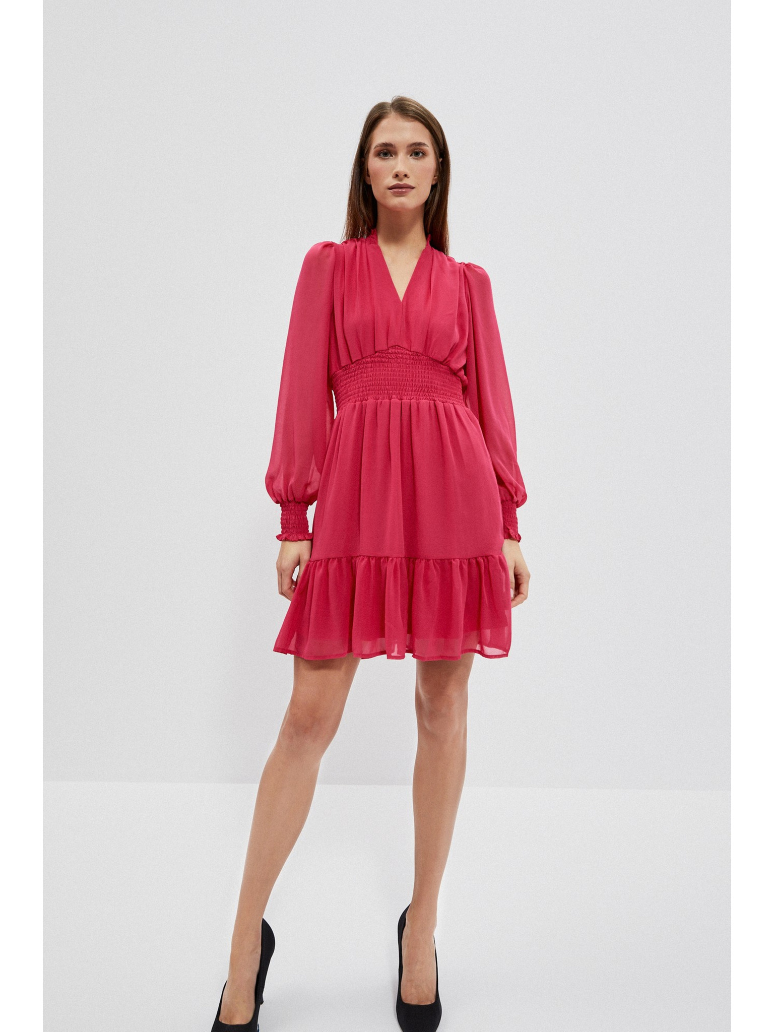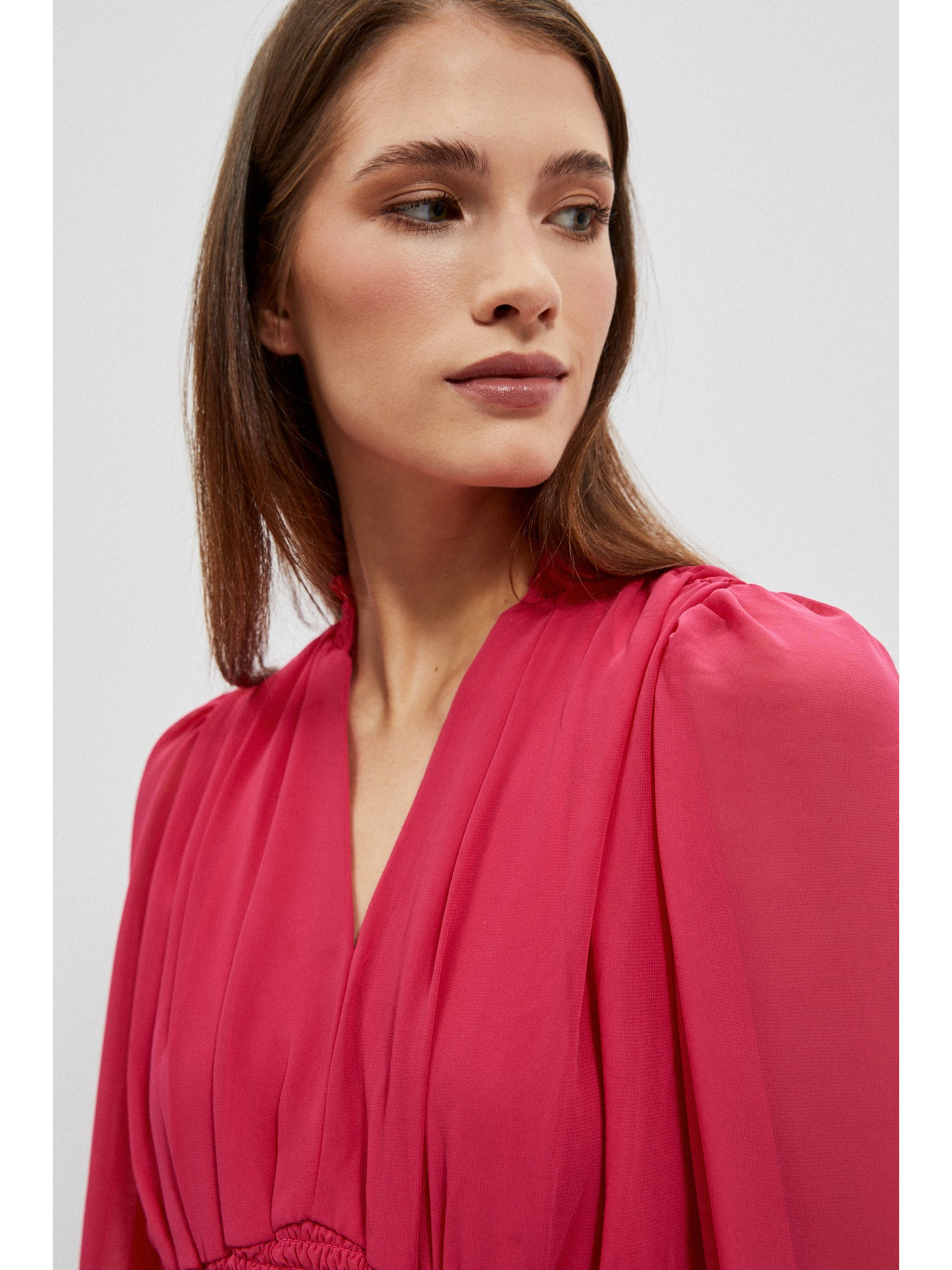Plisované šaty s psaníčkovým výstřihem - malinová barva Numoco WENDY