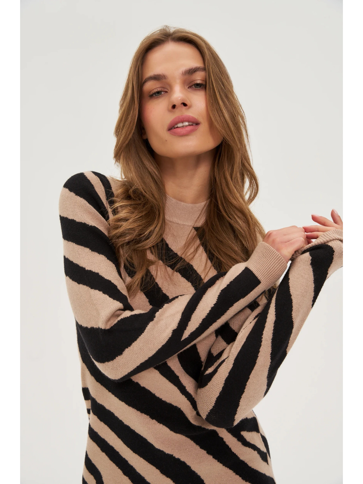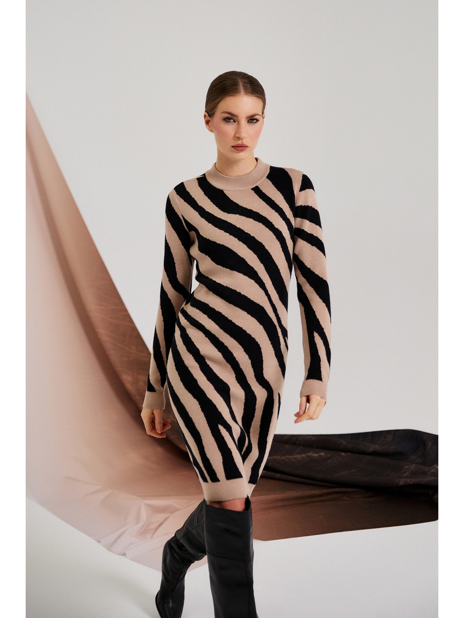 Svetrové šaty s rolákem - stříbrně hnědá Numoco IRENE