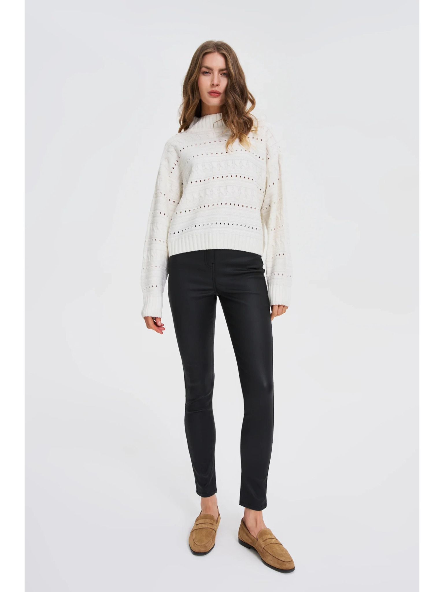 Bílý svetr s balónovými rukávy
