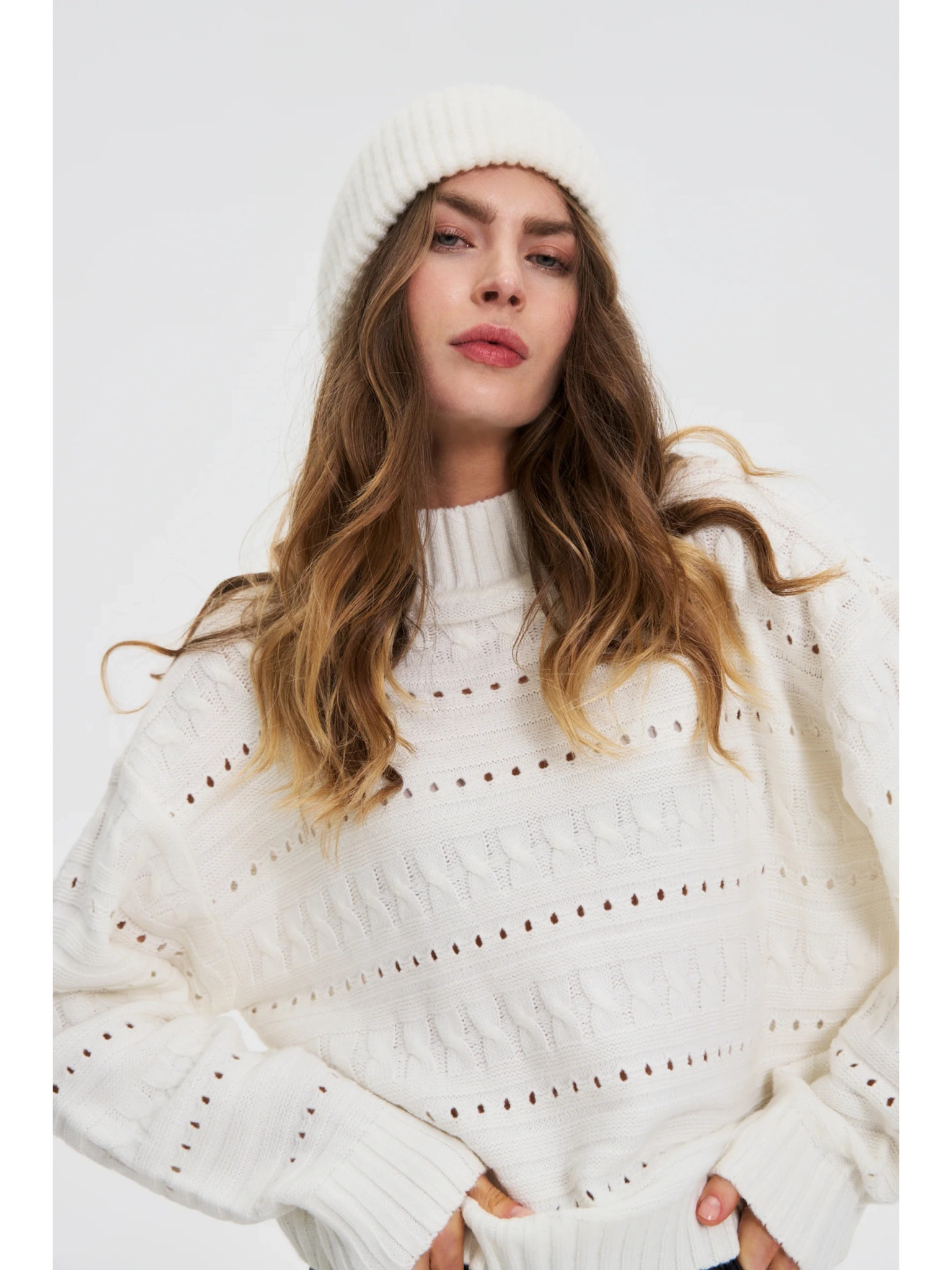 Krémový dámský děrovaný svetr ORSAY