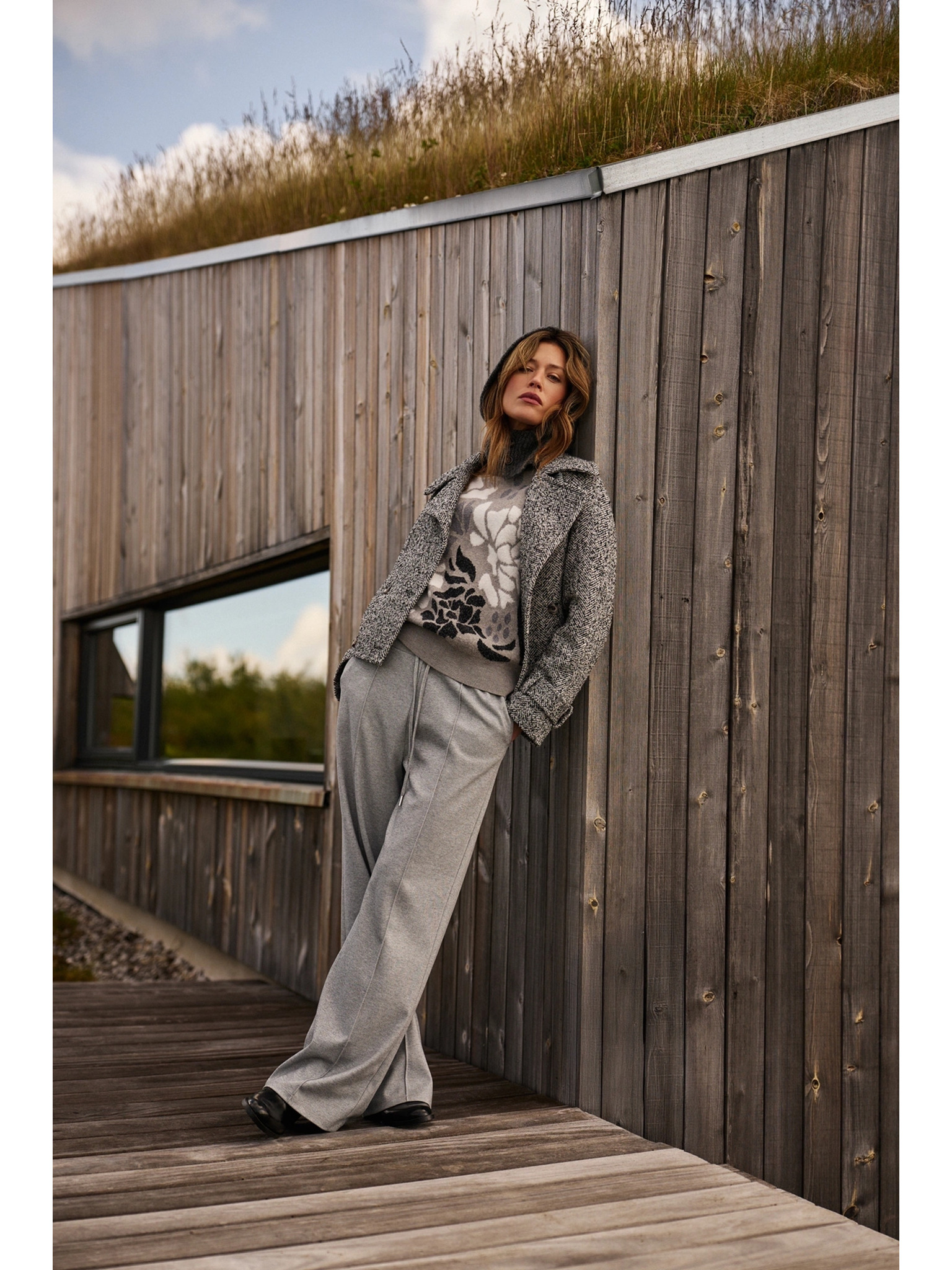 Svetr s květinovým vzorem šedý Moodo