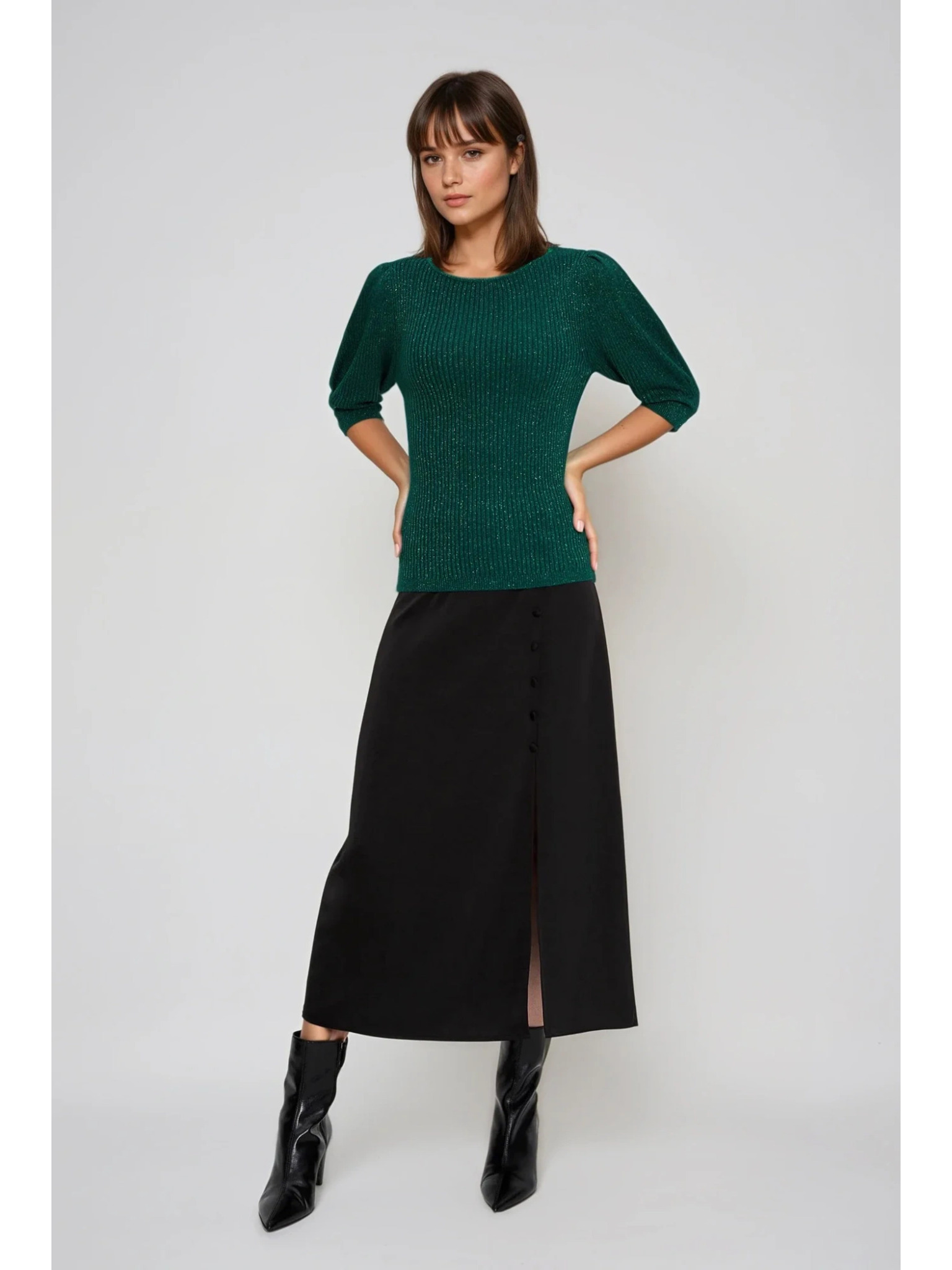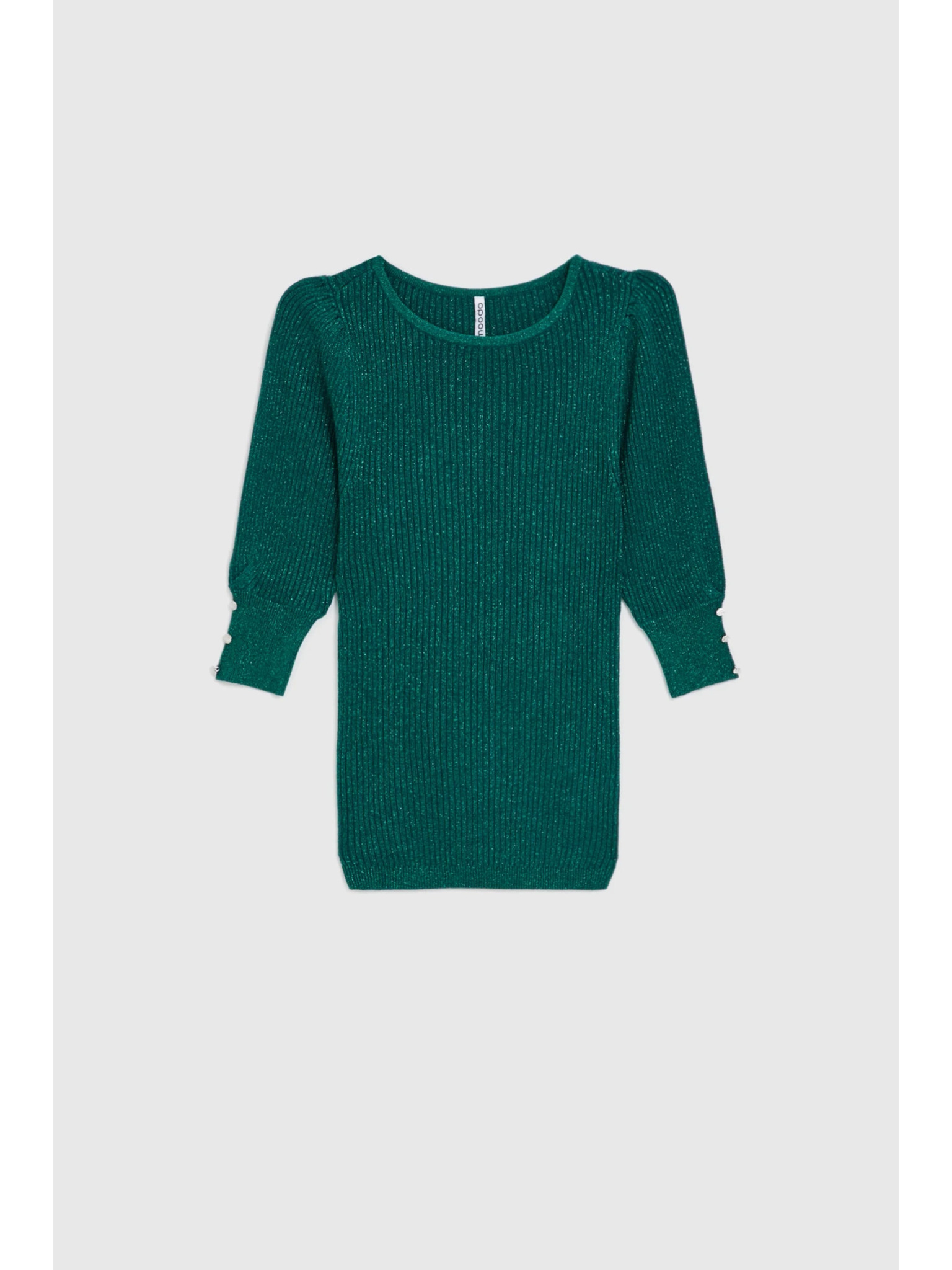 Svetr s dlouhými rukávy zdobený metalickou nití zelený Moodo