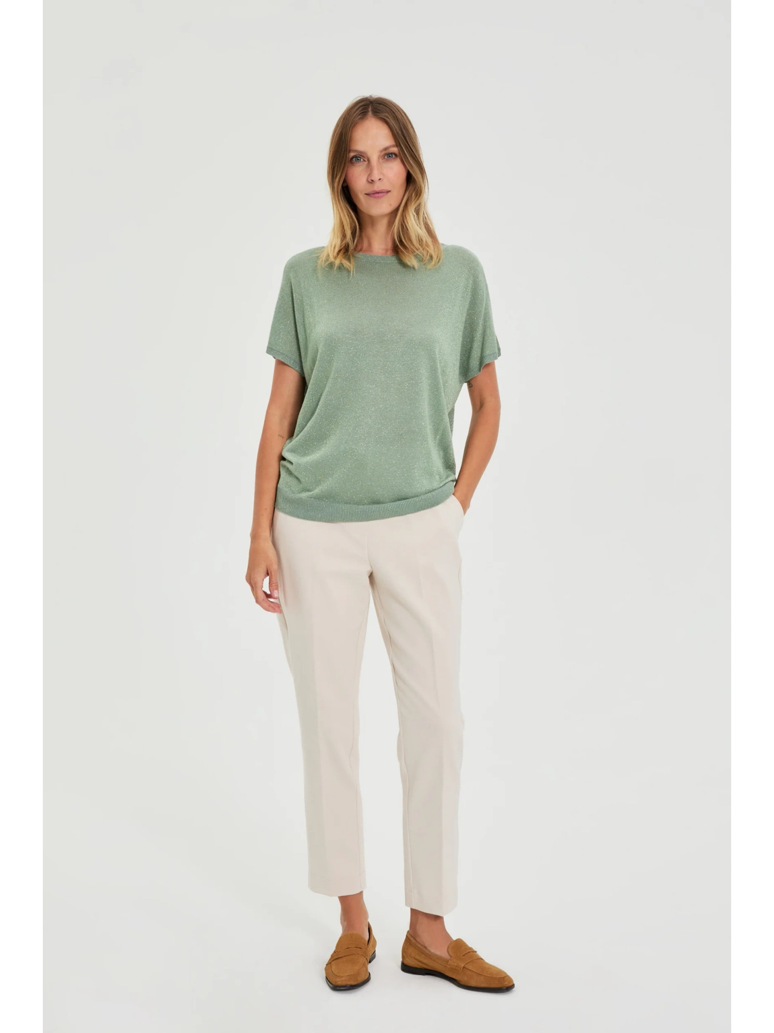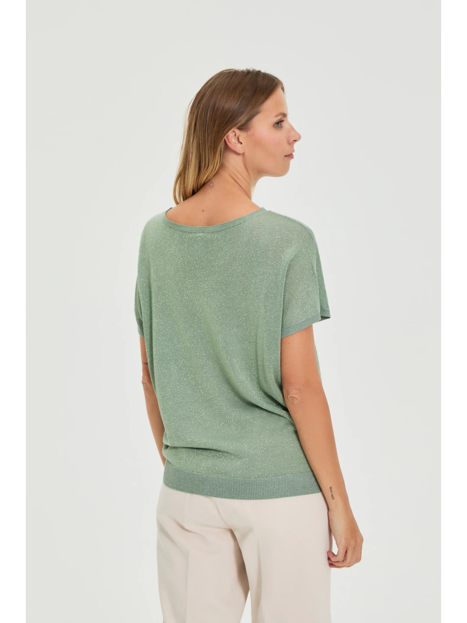 Olivový svetr s krátkými rukávy Moodo