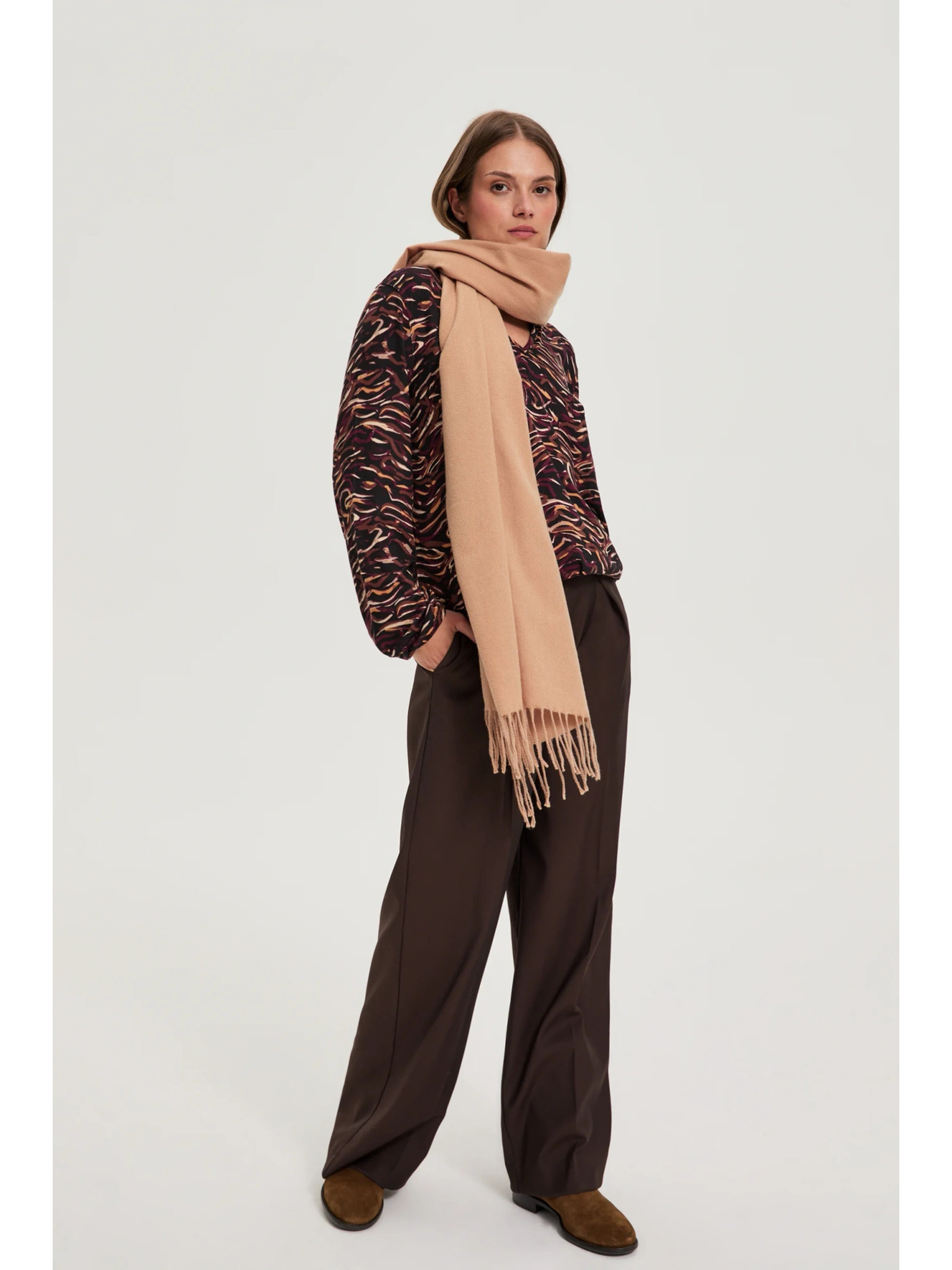 Šála s geometrickým vzorem hnědá Moodo