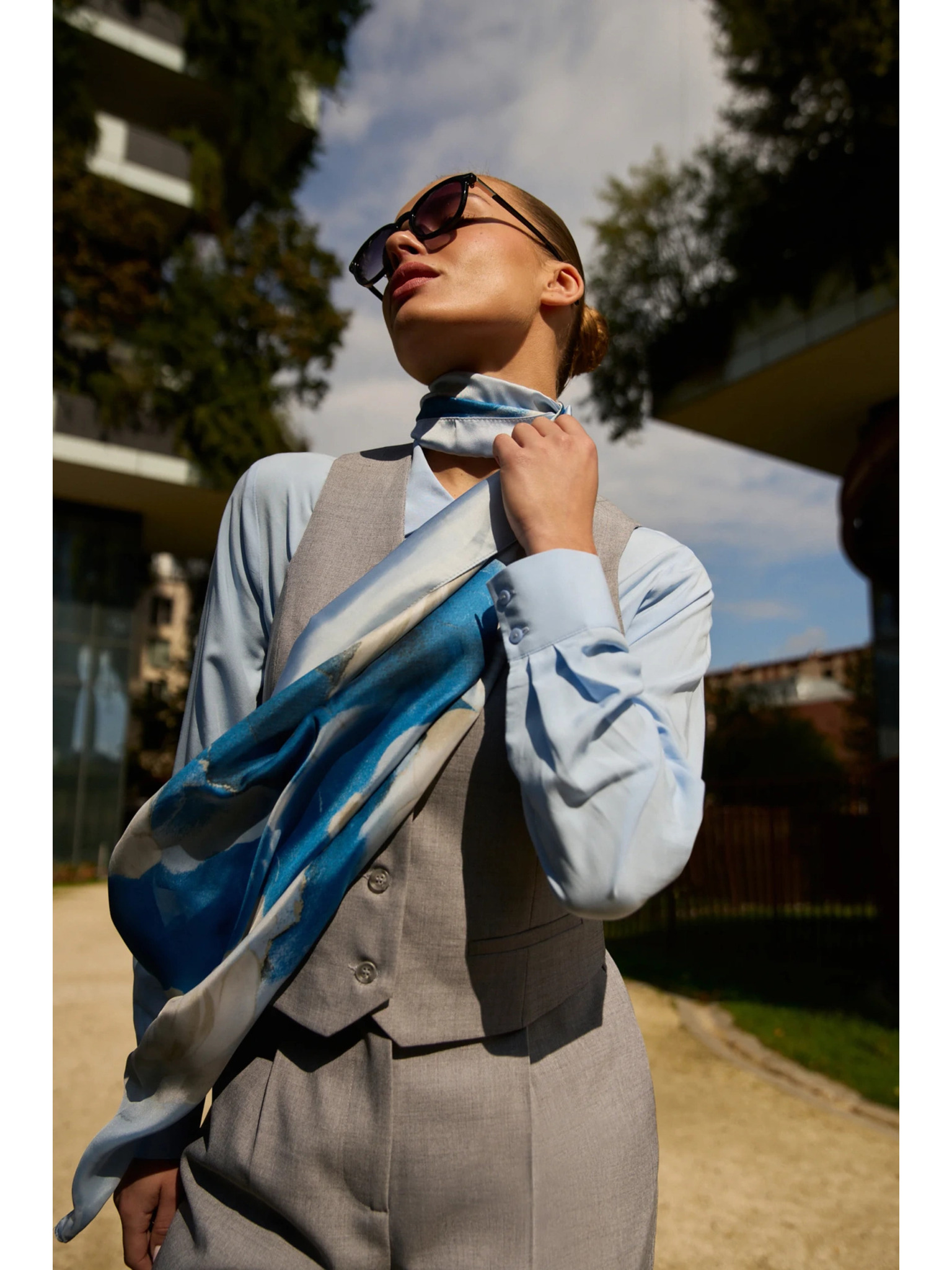 Bílo-modrý dámský vzorovaný šátek Moodo