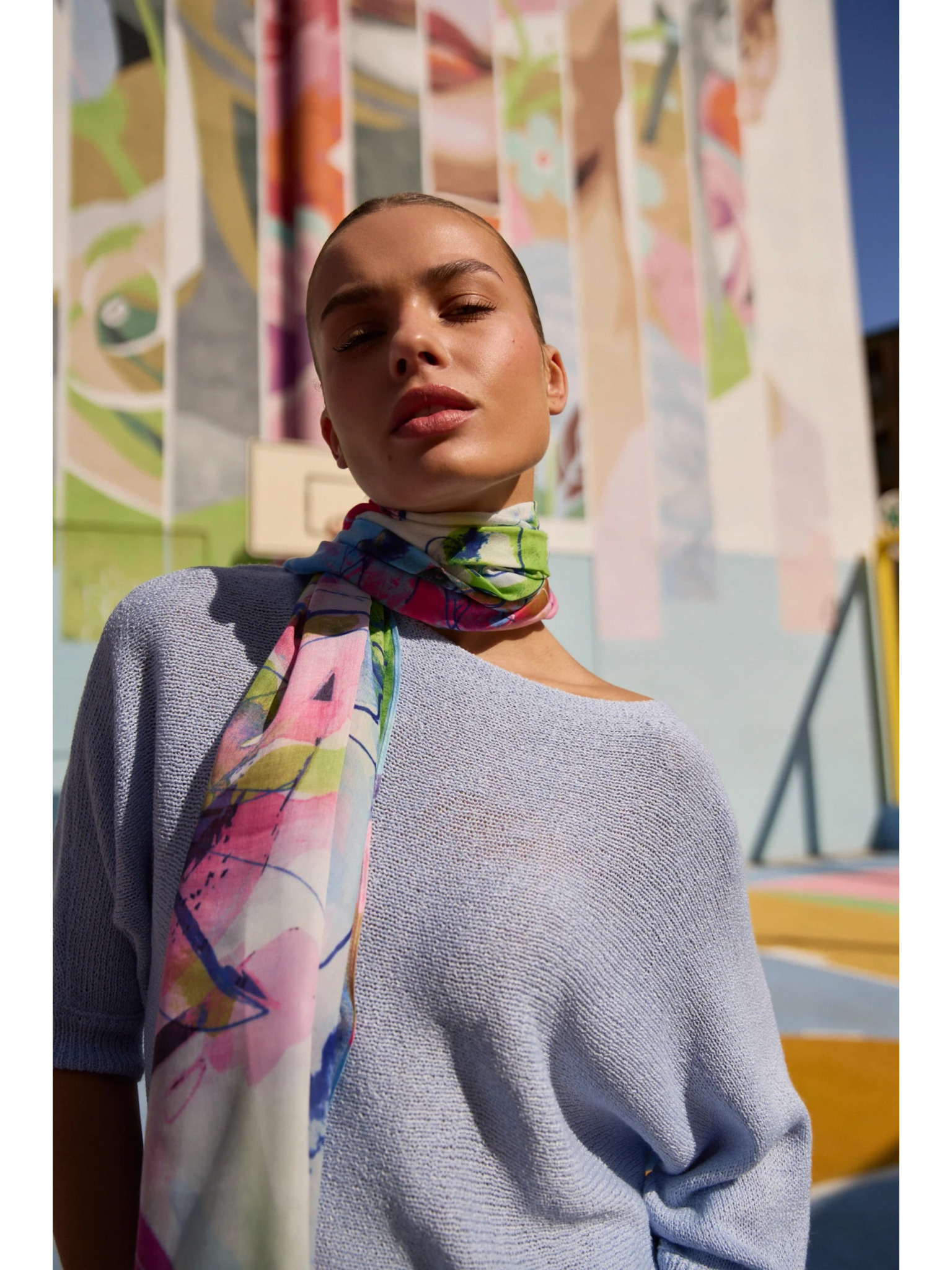Šála s květinovým vzorem světle modrá Moodo