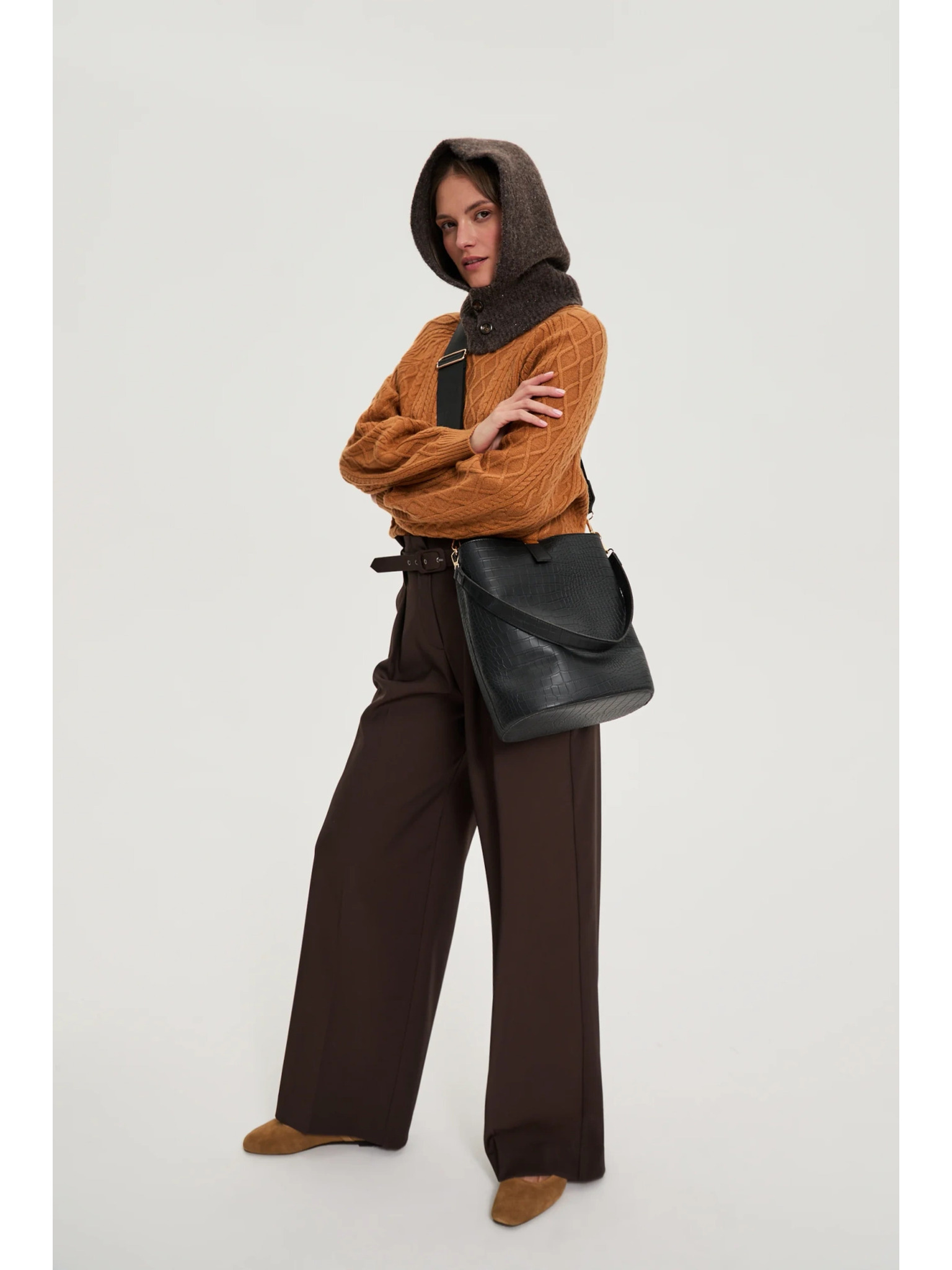 Pletená kabelka s kulatým držadlem béžová Moodo