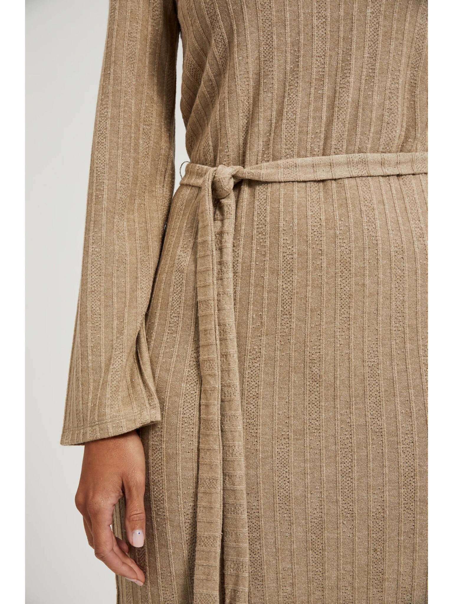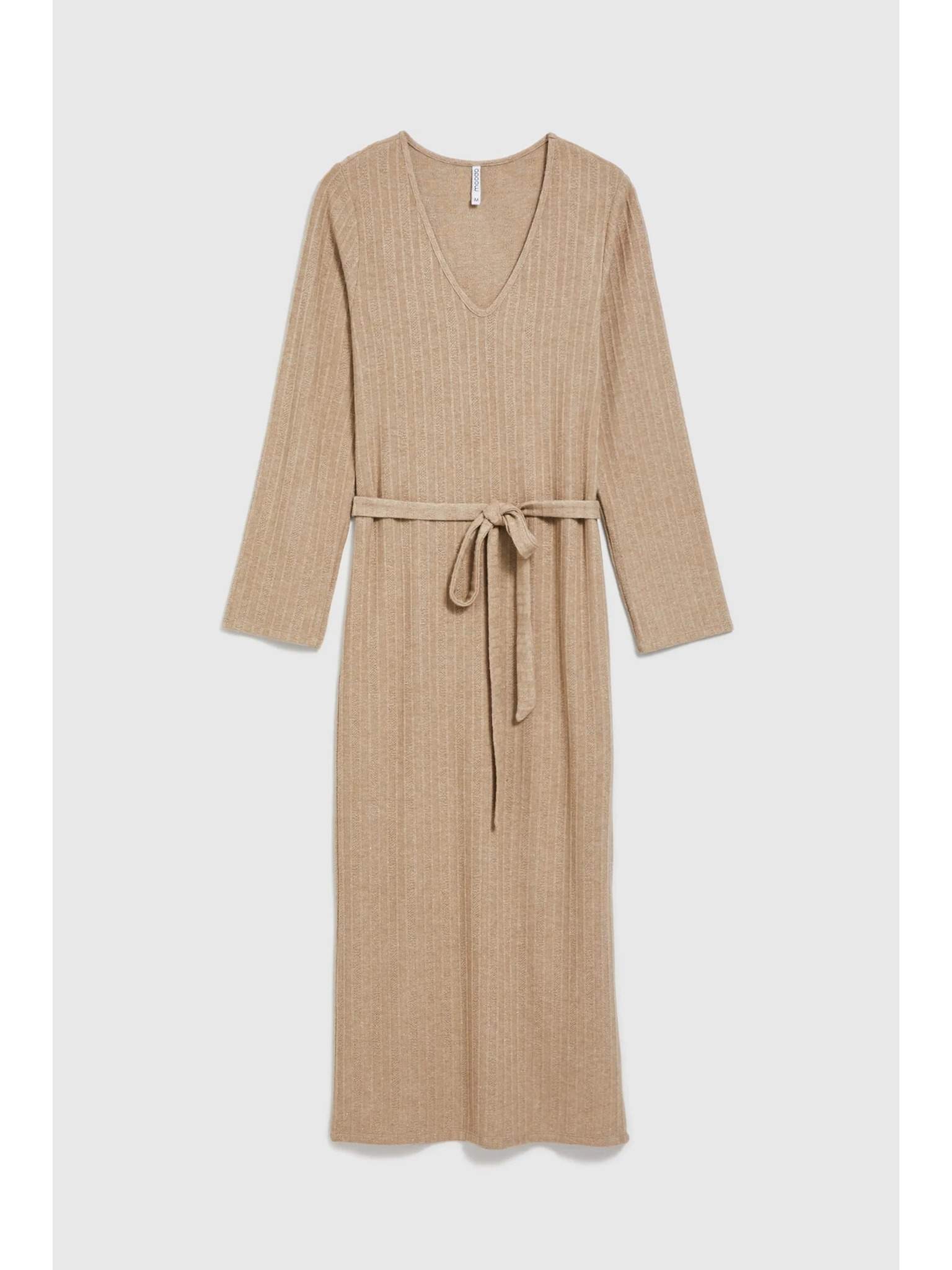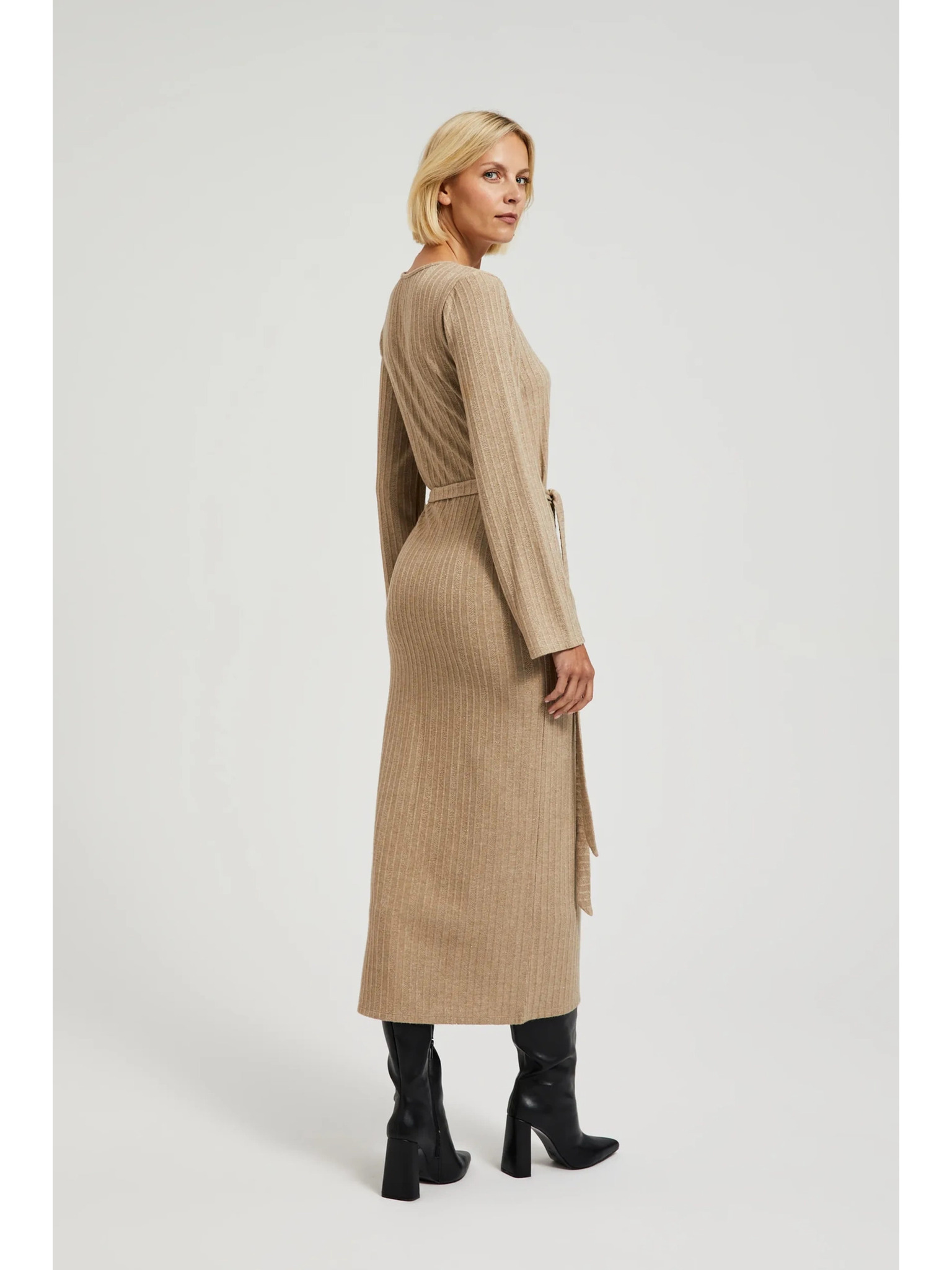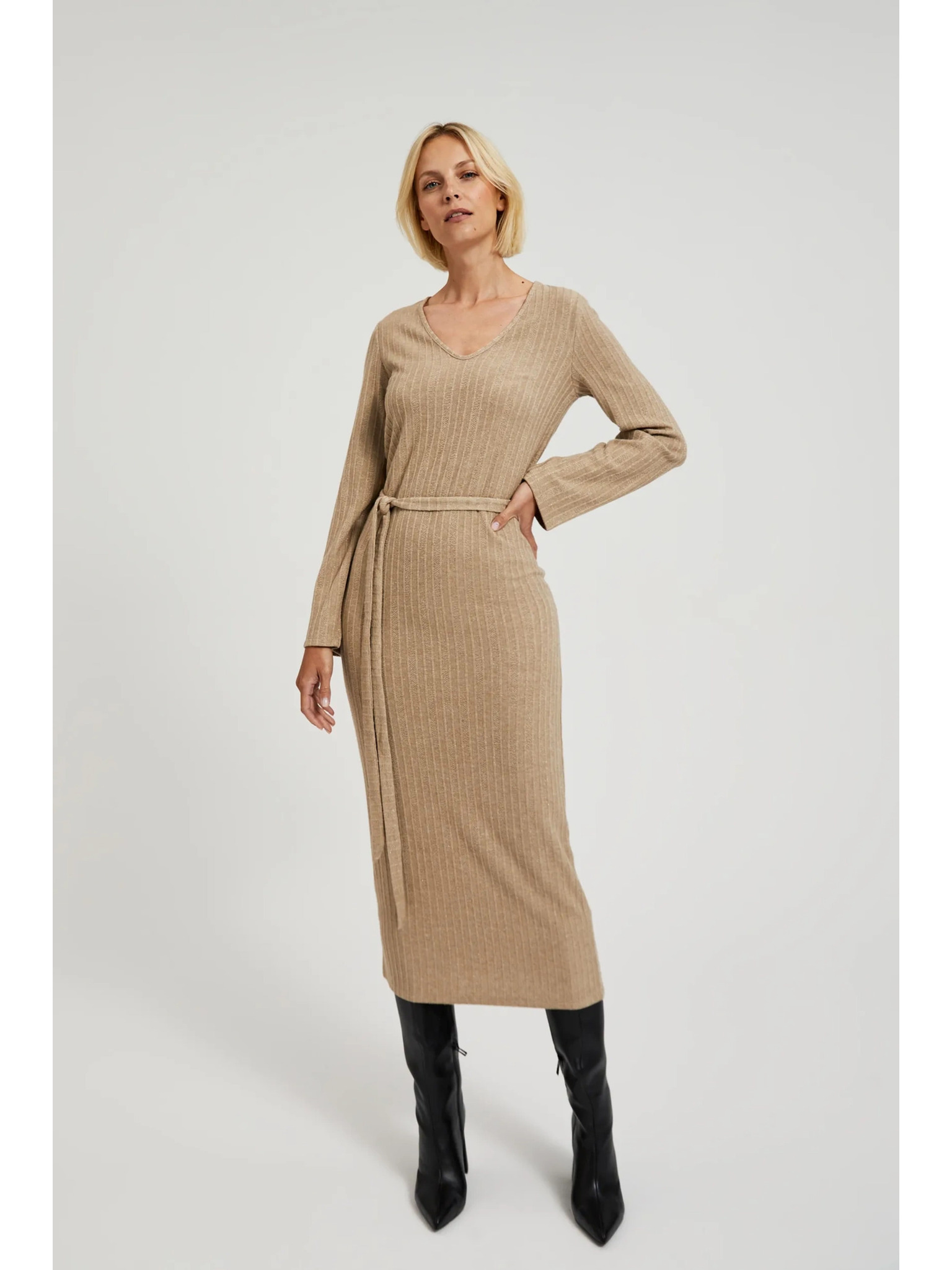 Béžové midi šaty s dlouhým rukávem Moodo