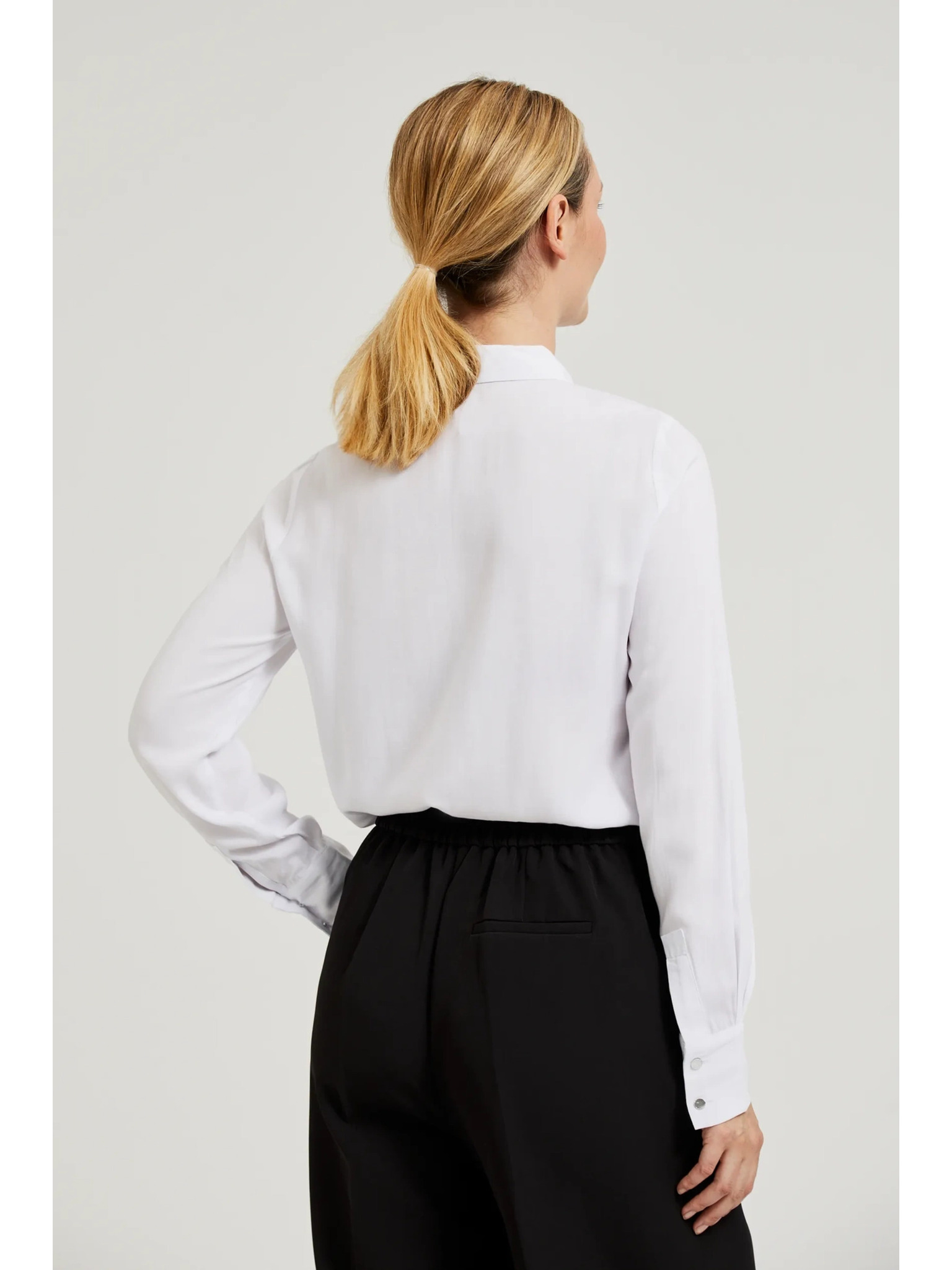 Bílá košile s ozdobným výstřihem Moodo
