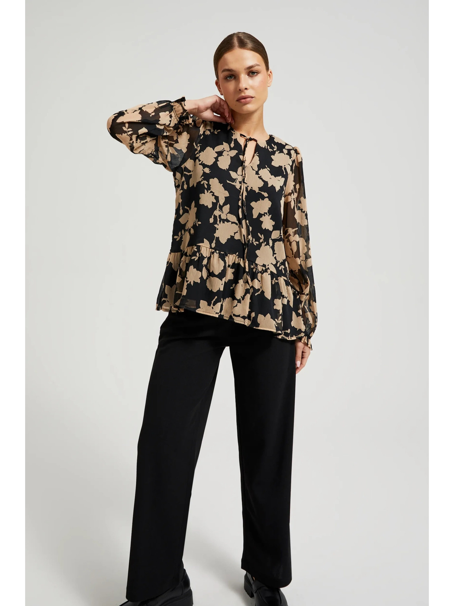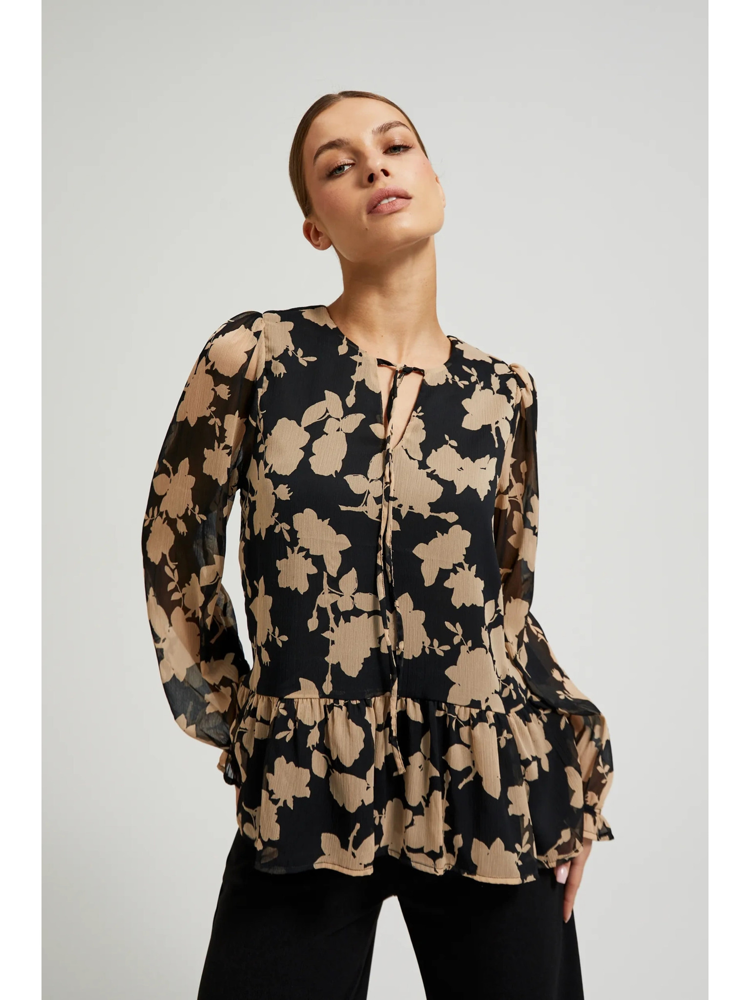 Černá dámská halenka s květinovým vzorem ORSAY