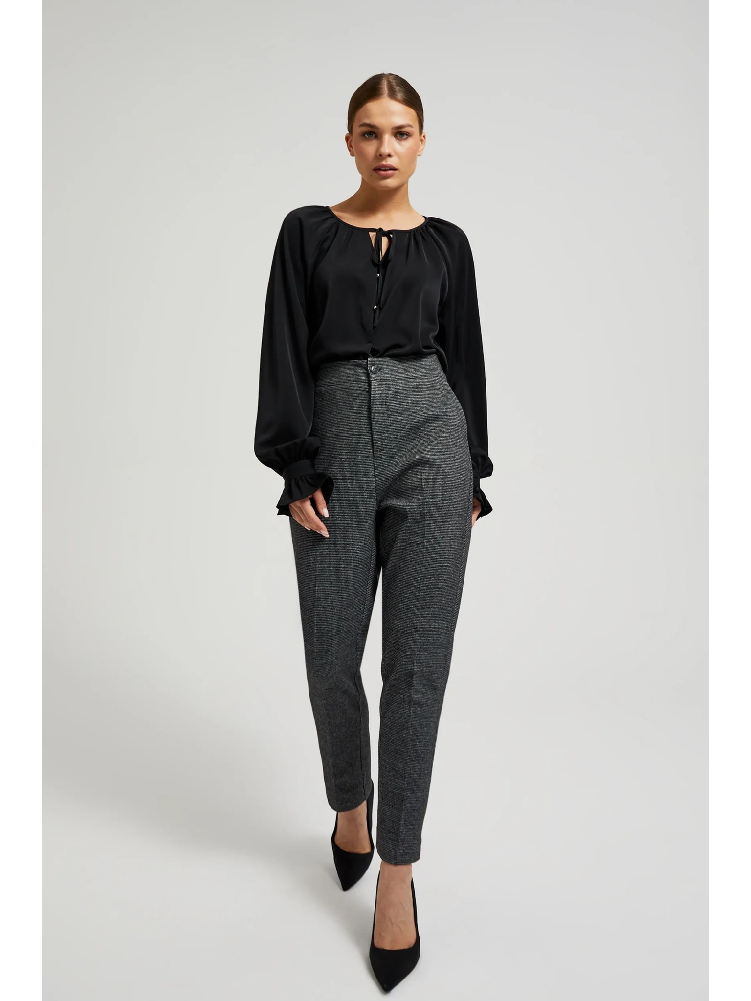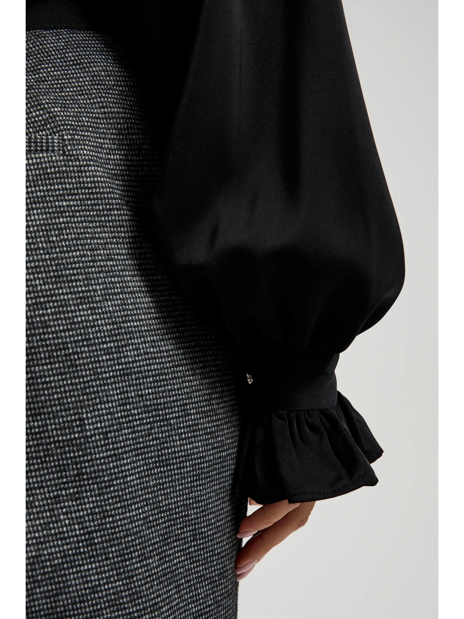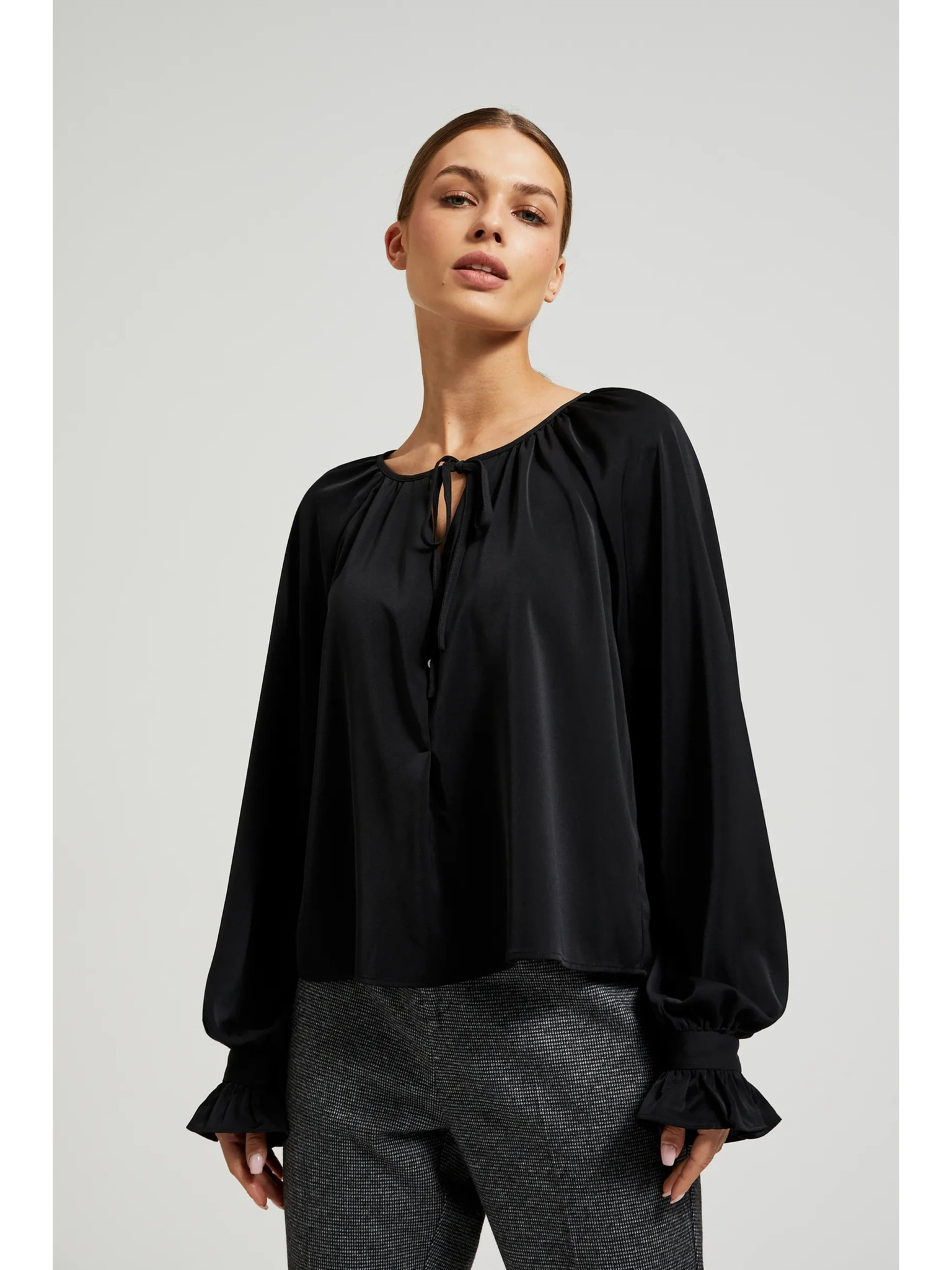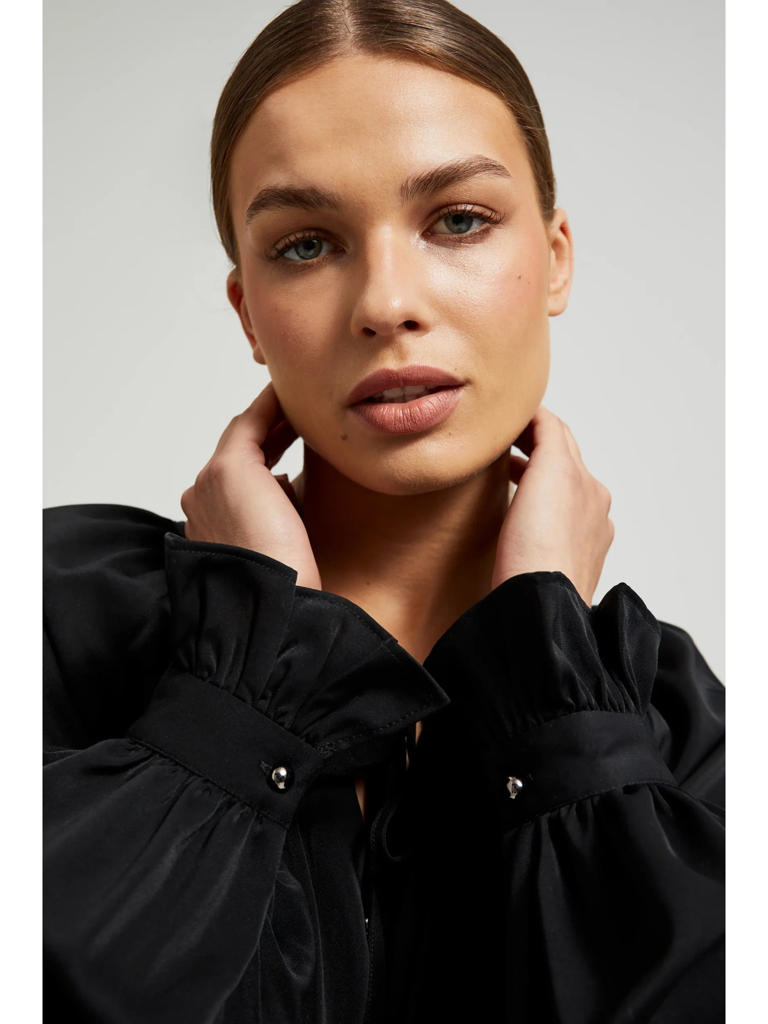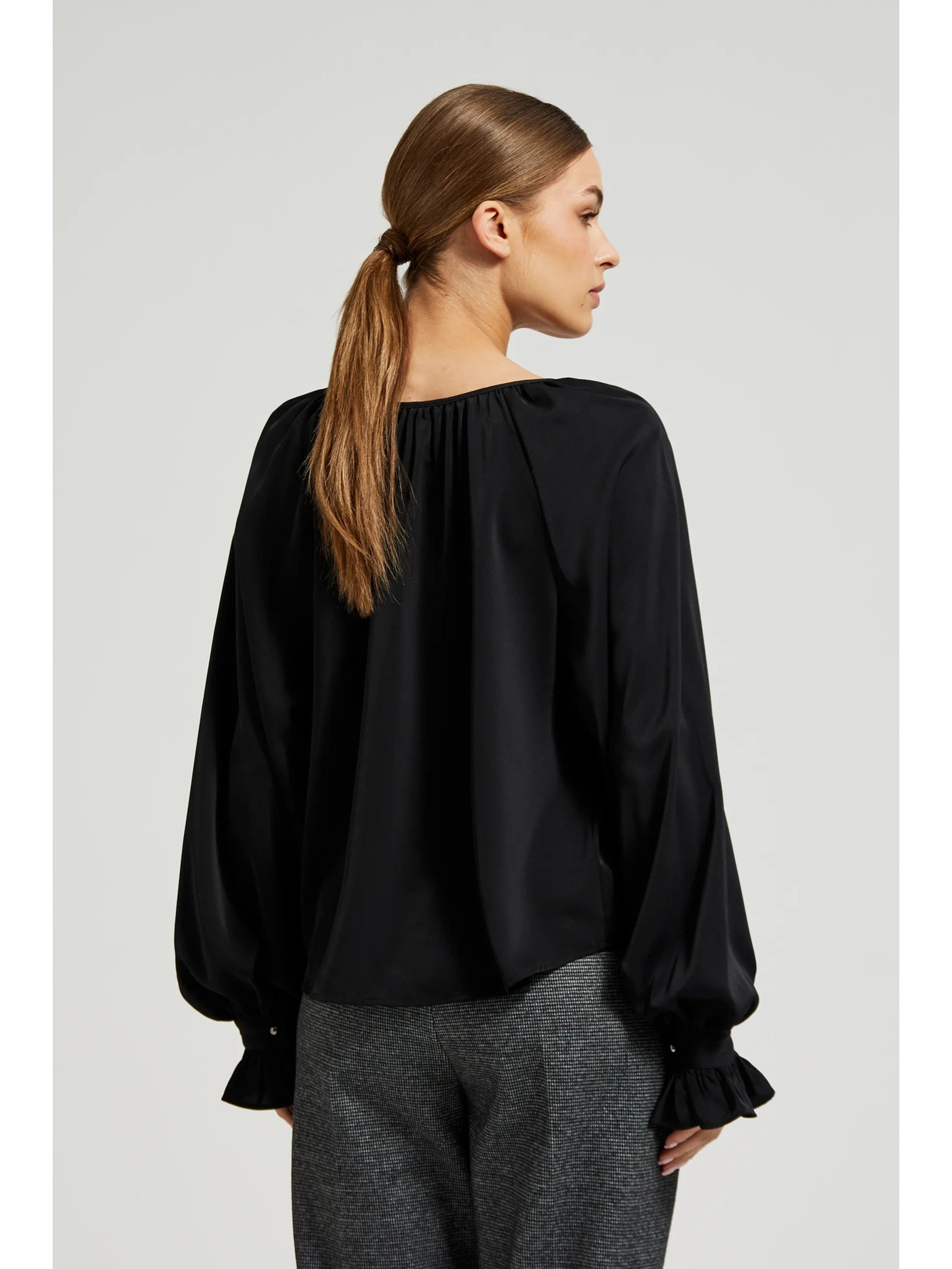 Elegantní košile černá s nabíranými rukávy Moodo