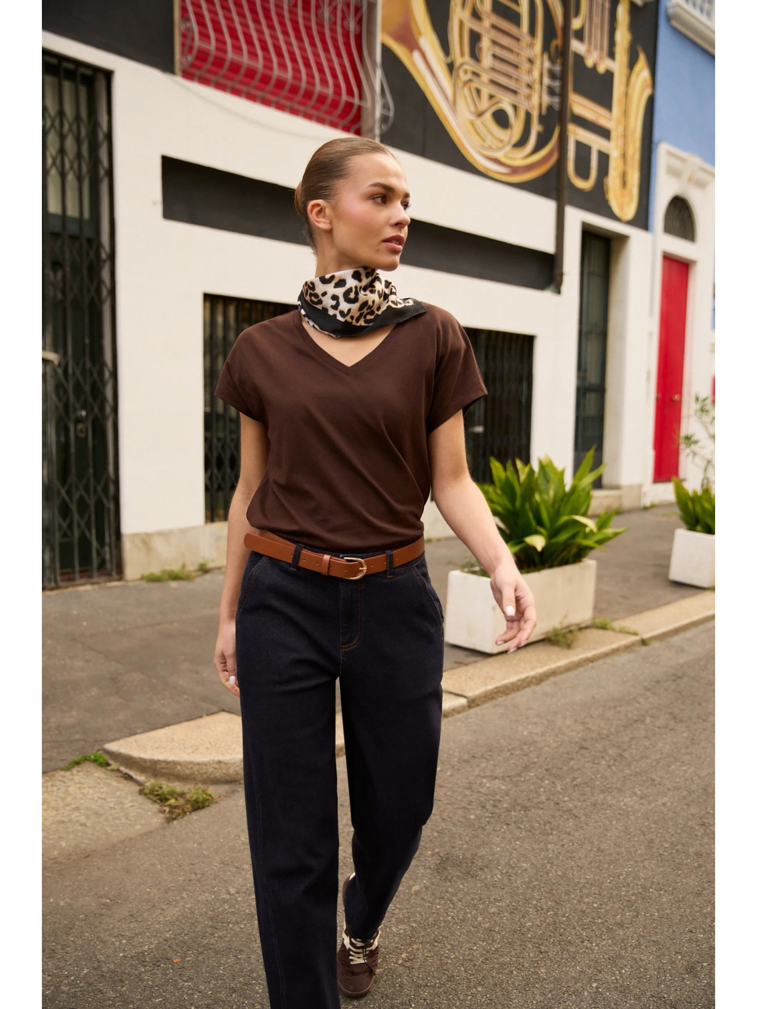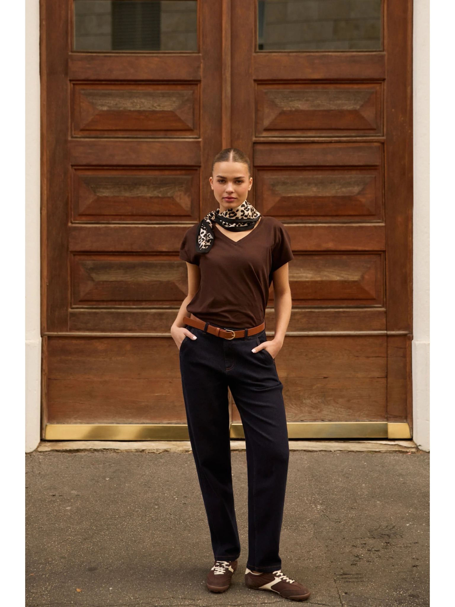 Dámské hnědé tričko se zavazováním