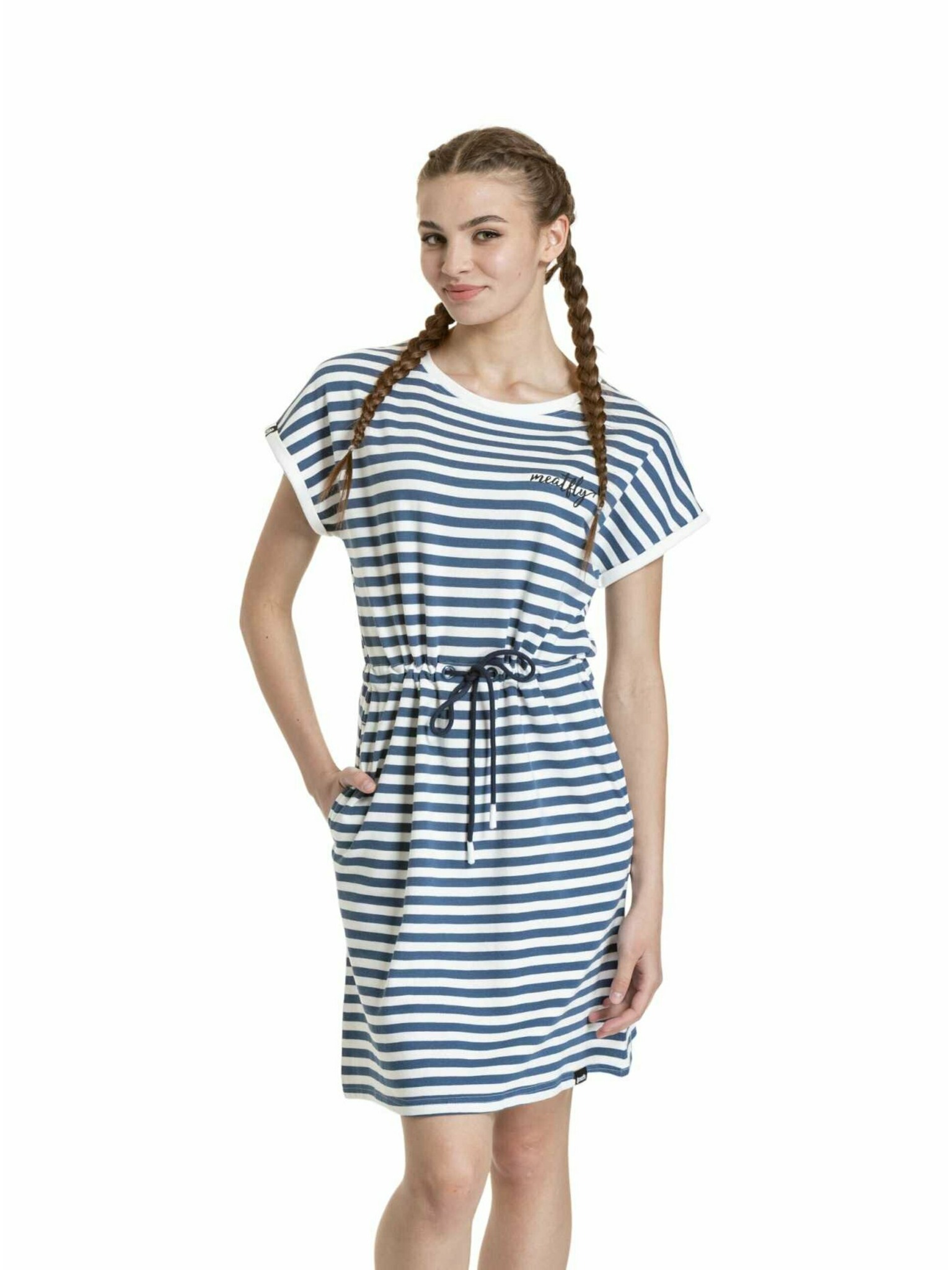Šaty s výstřihem a krátkým rukávem - světle modré Numoco
