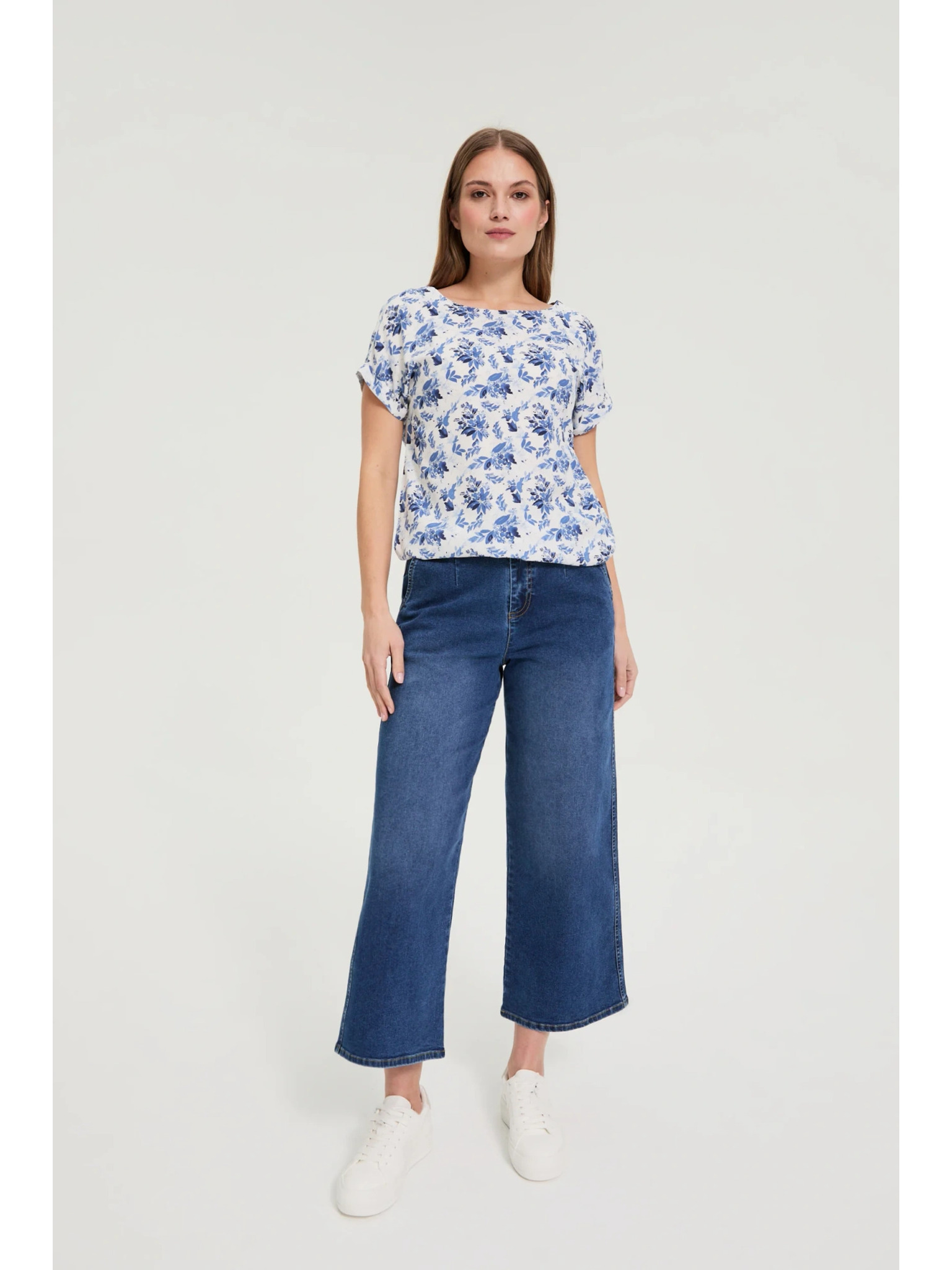 Bílá halenka s vyhrnutými rukávy Moodo