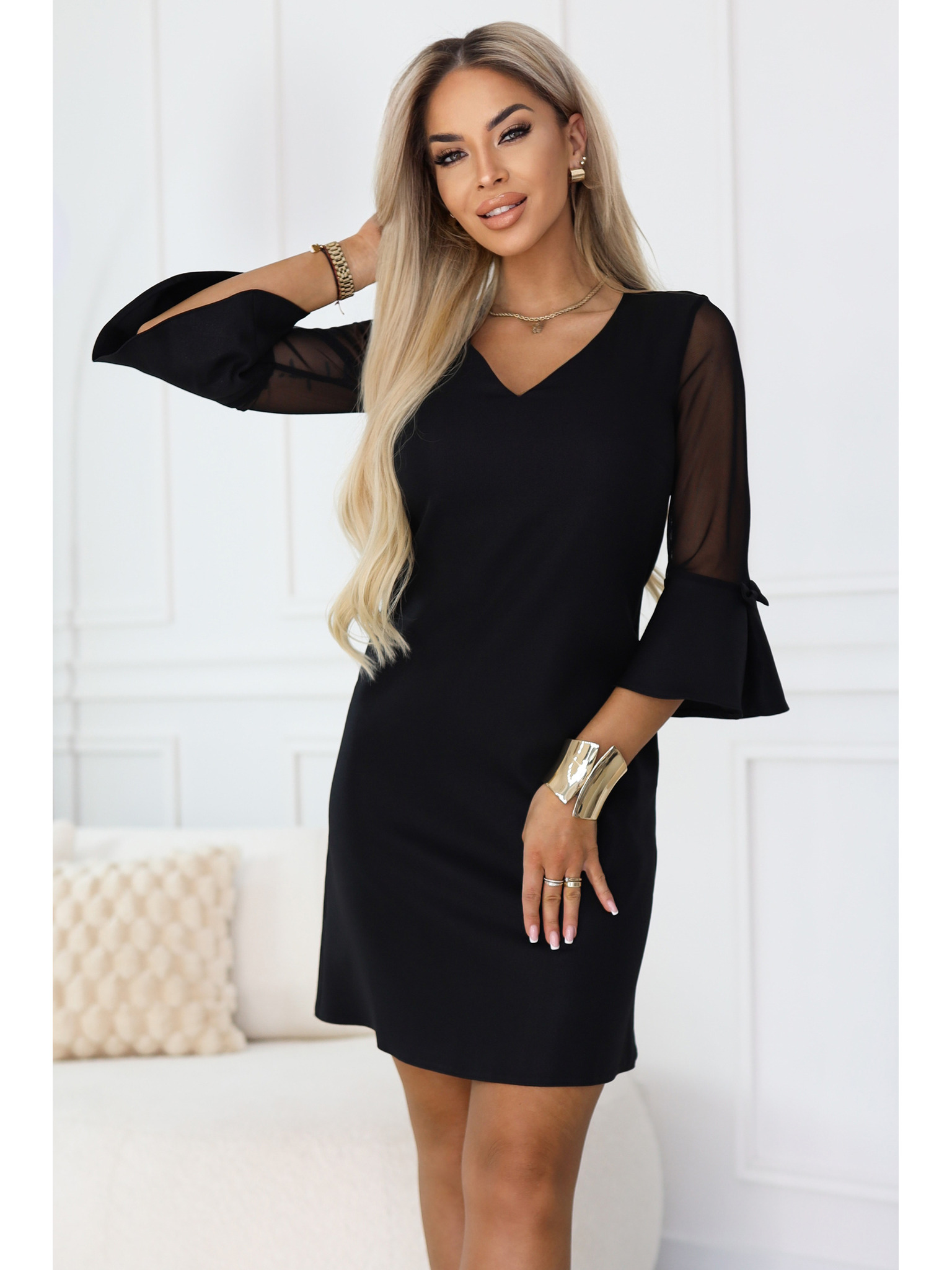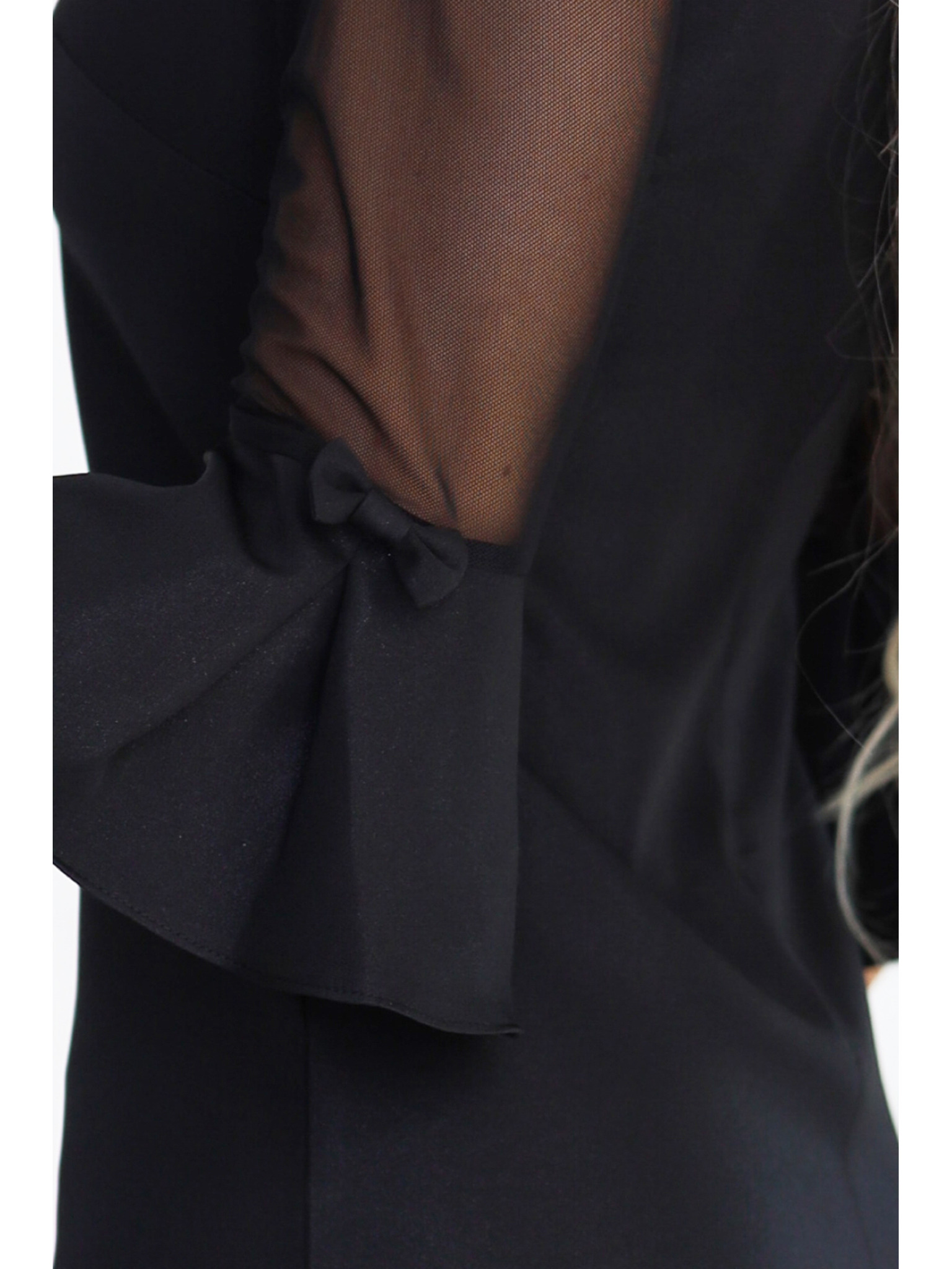 Černé třpytivé šaty s průhlednými rukávy Moodo