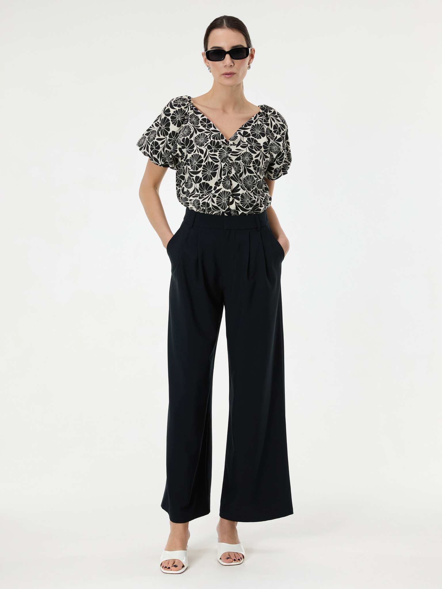 Elegantní košile černá s nabíranými rukávy Moodo