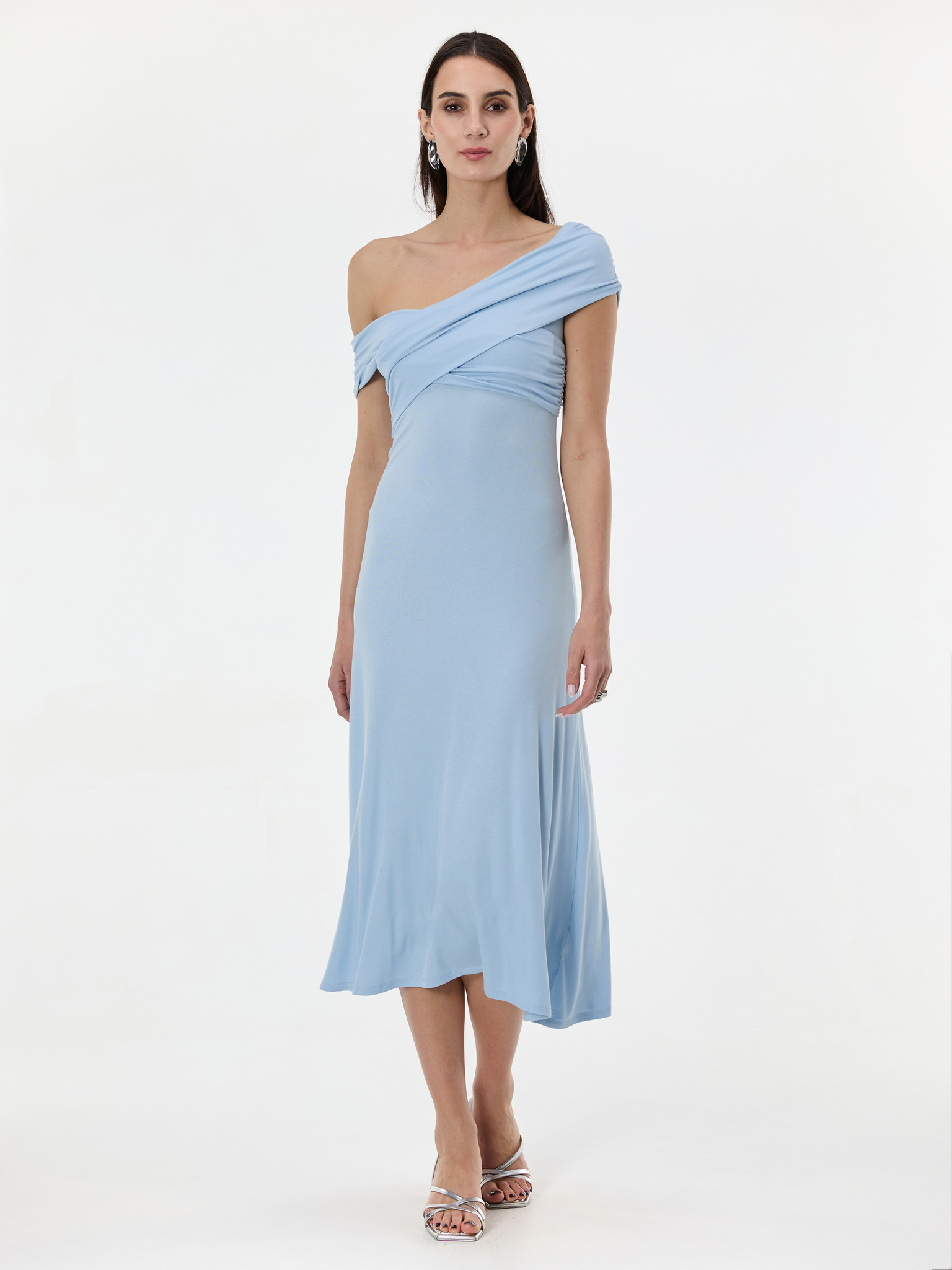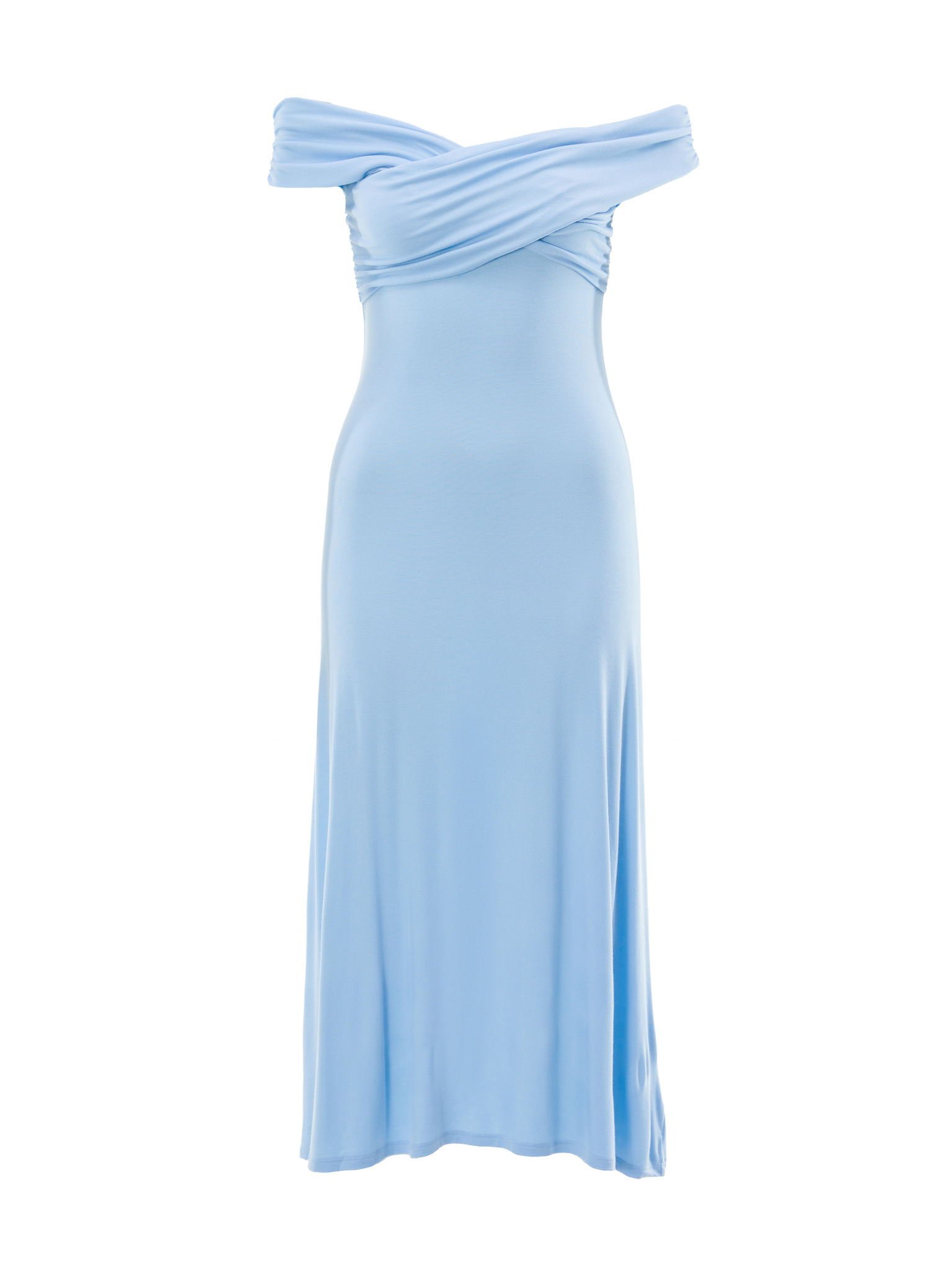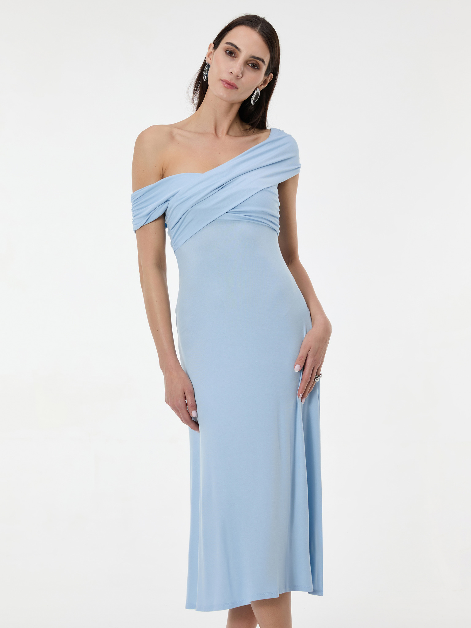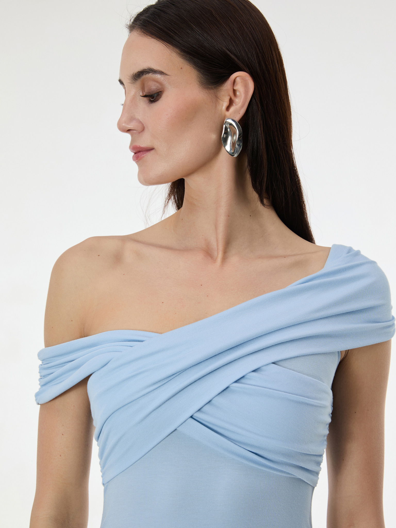Plisované šaty s výstřihem a dlouhým rukávem - světle modrá Numoco ISABELLE