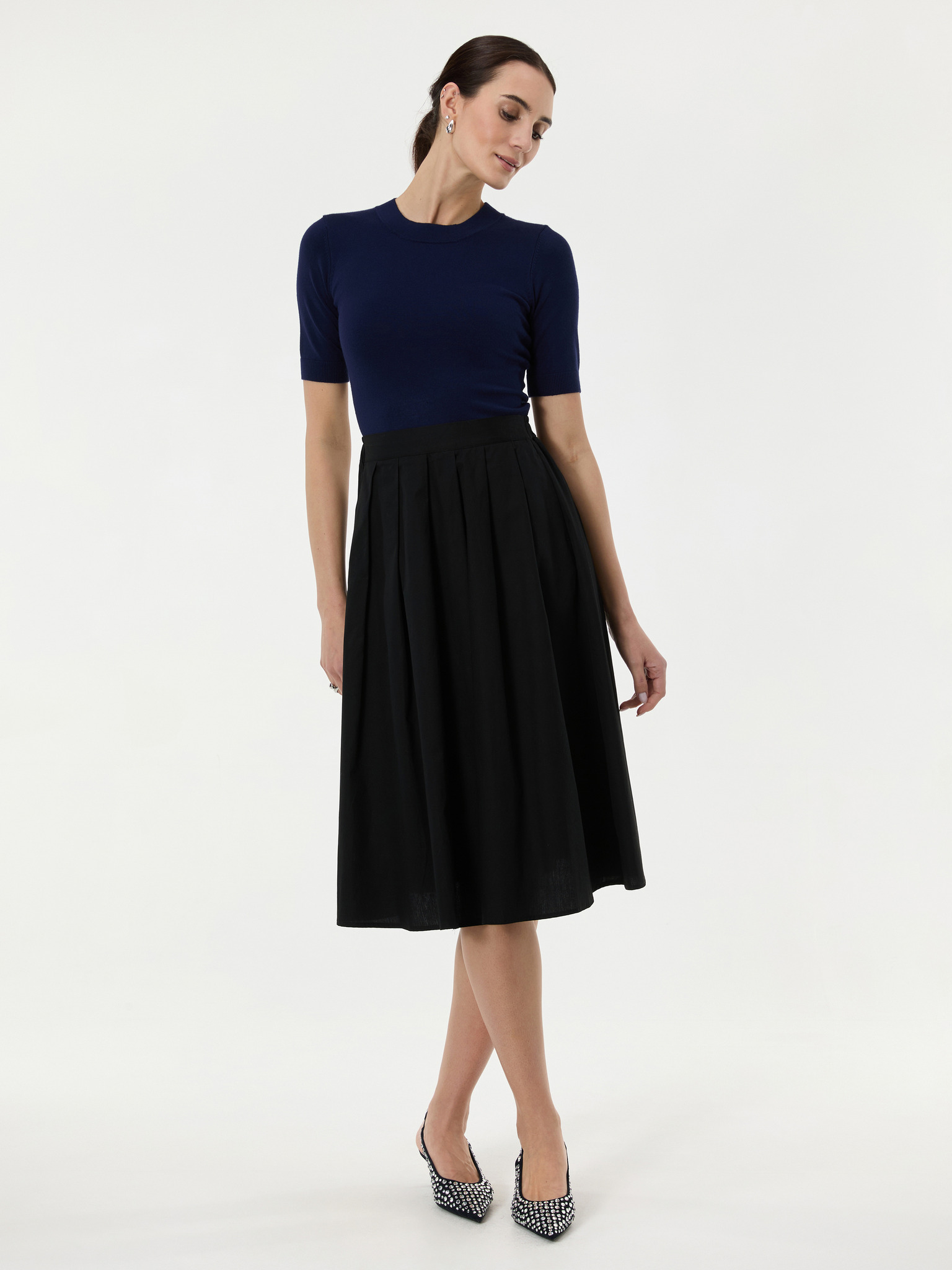 Tmavě modrá dámská úpletová sukně ORSAY