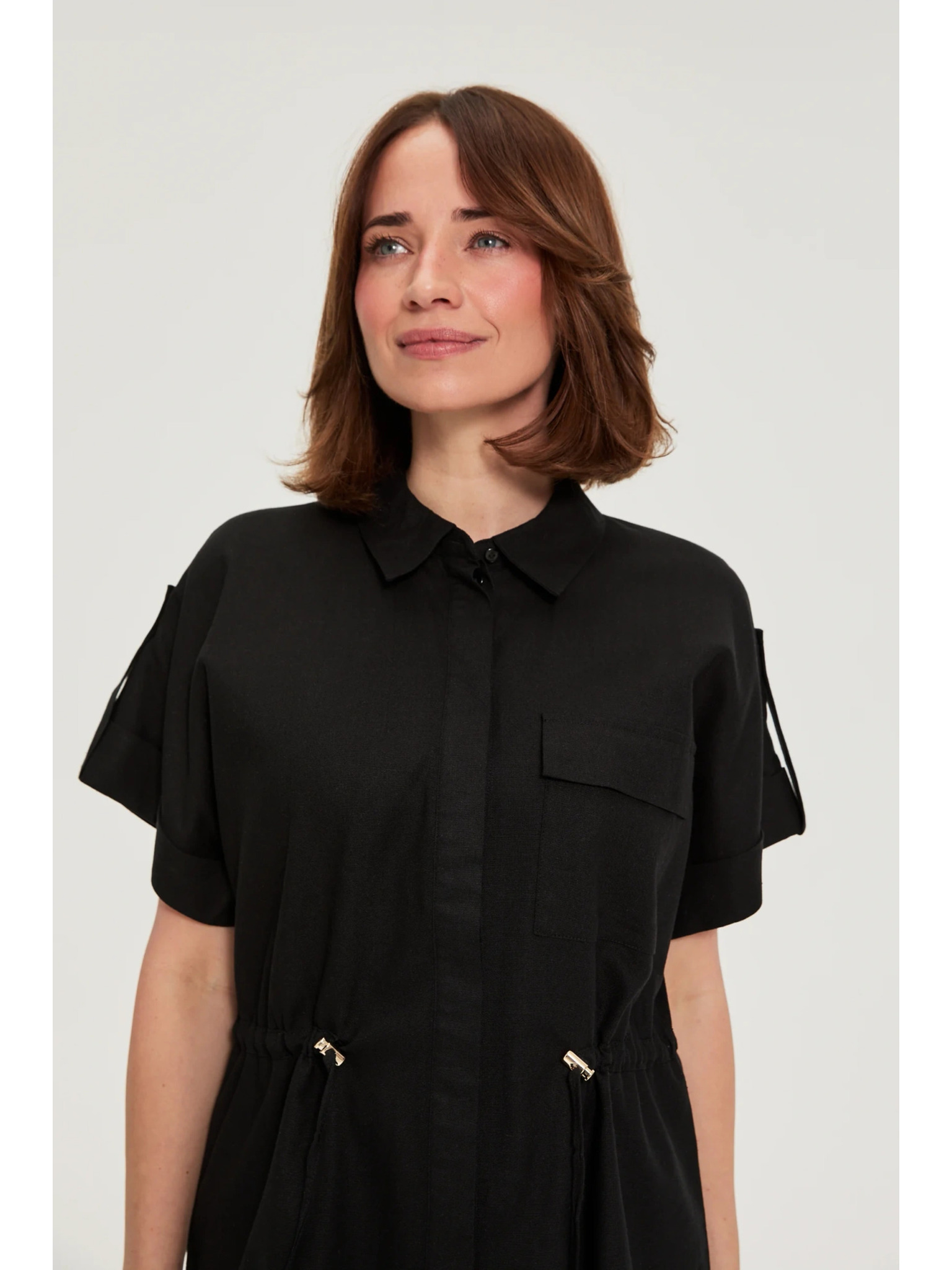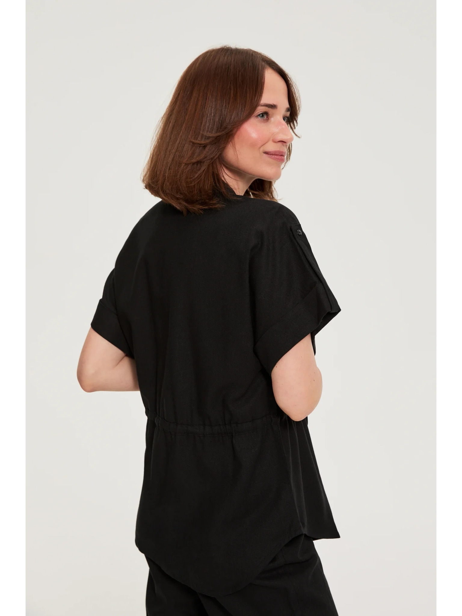 Viskózová košile s krátkými rukávy černá Moodo