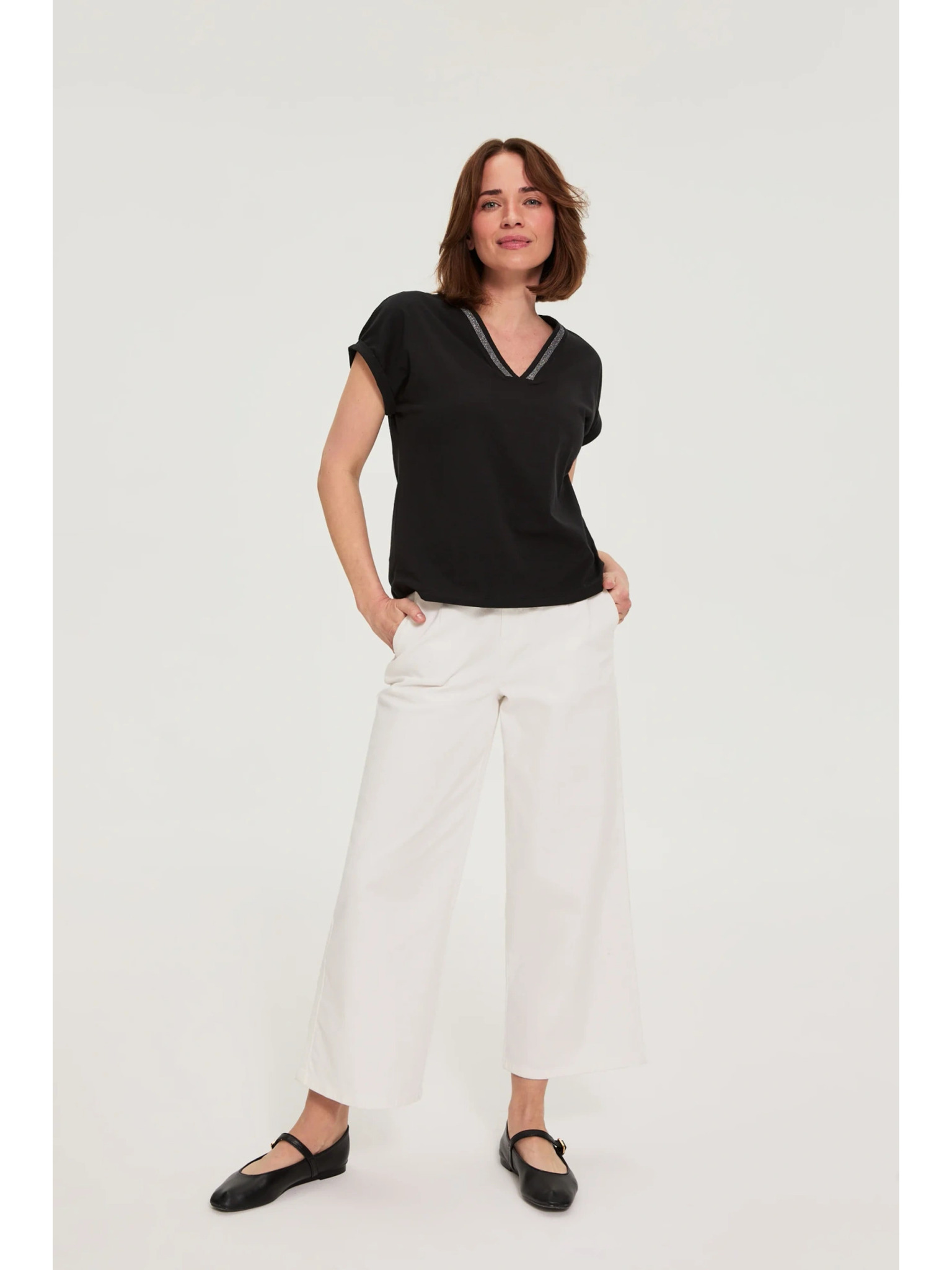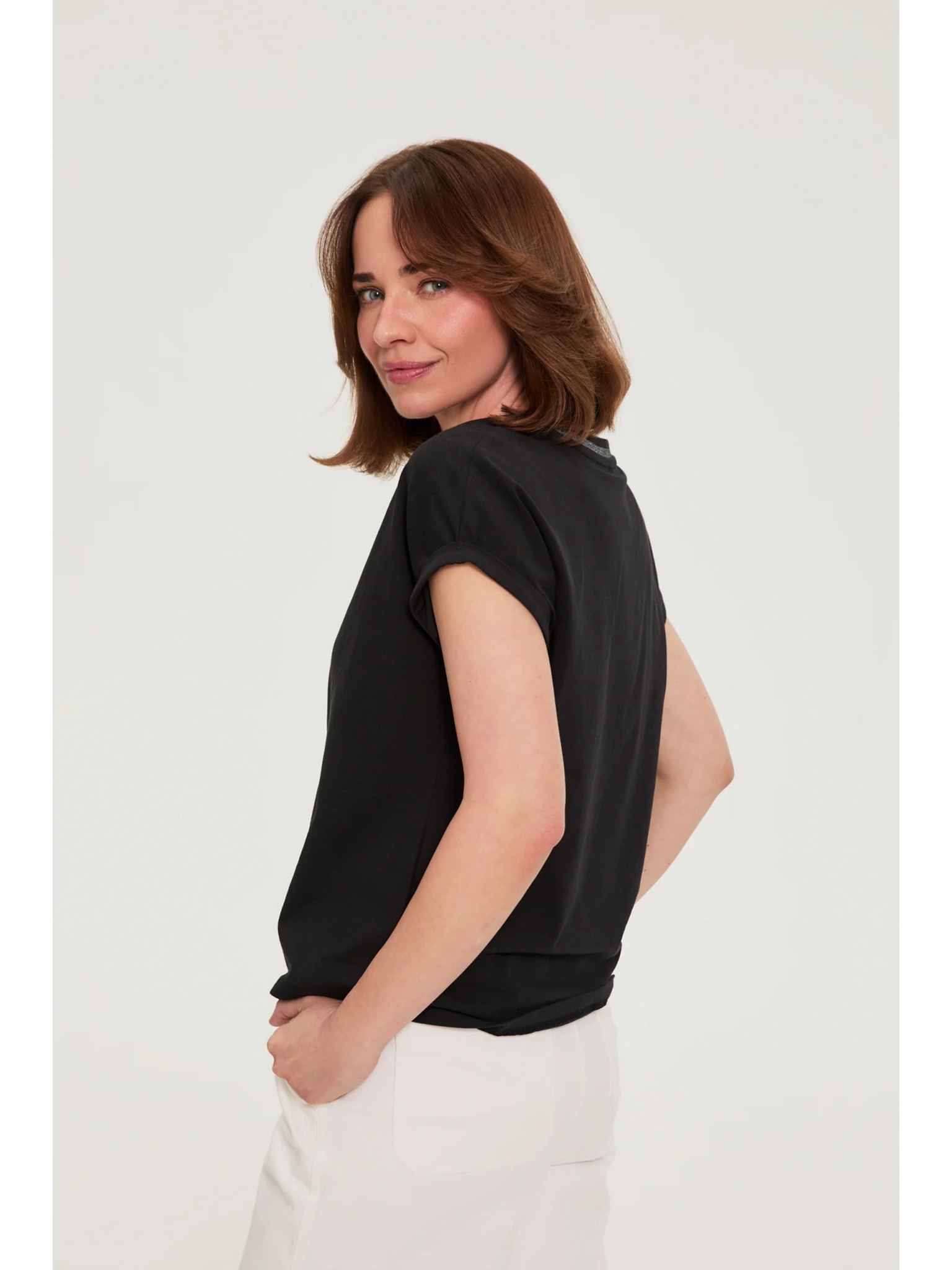 Bavlněná halenka s ozdobenými rukávy černá Moodo