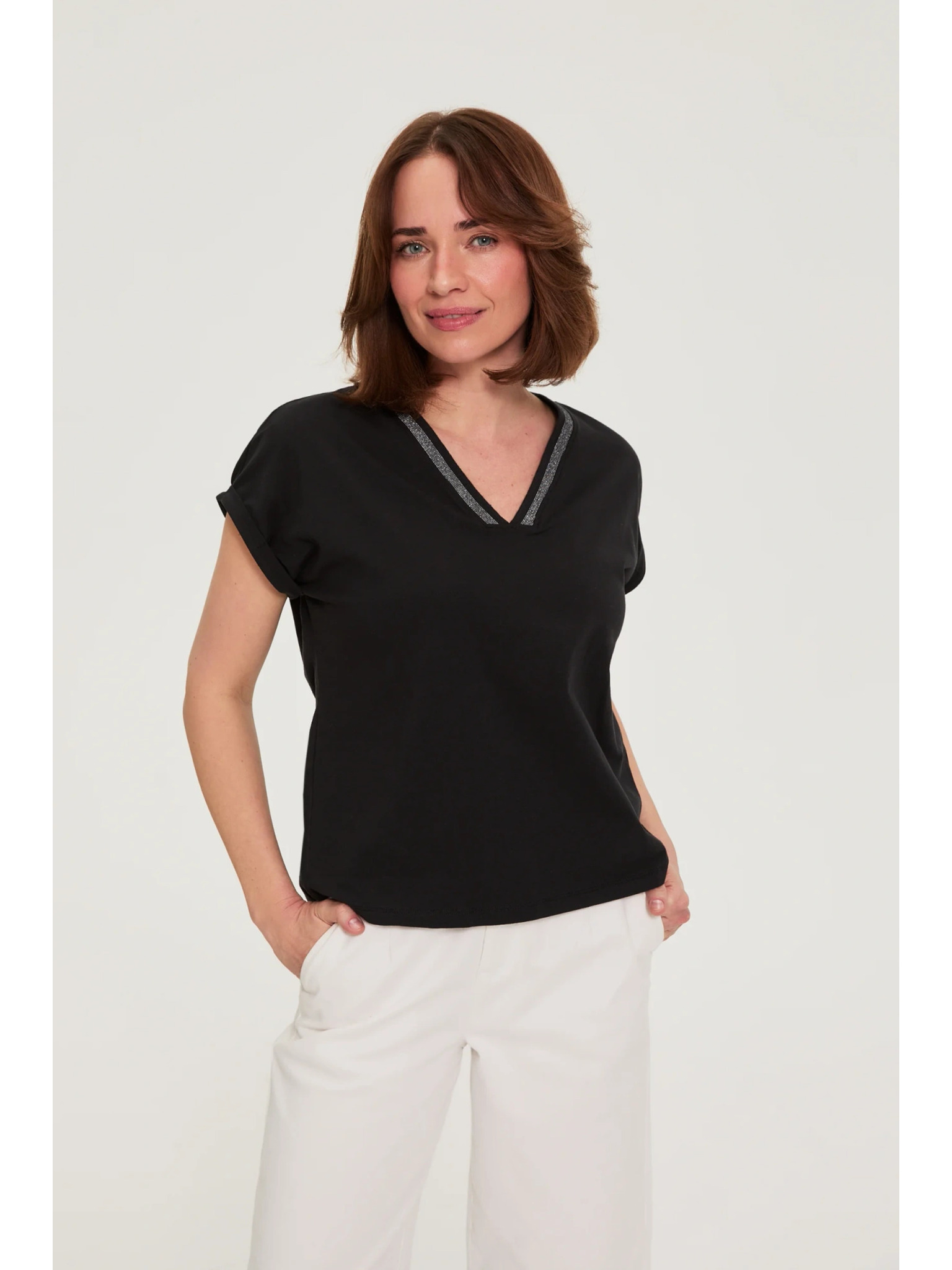 Bavlněná halenka s výstřihem do "V" olivová Moodo