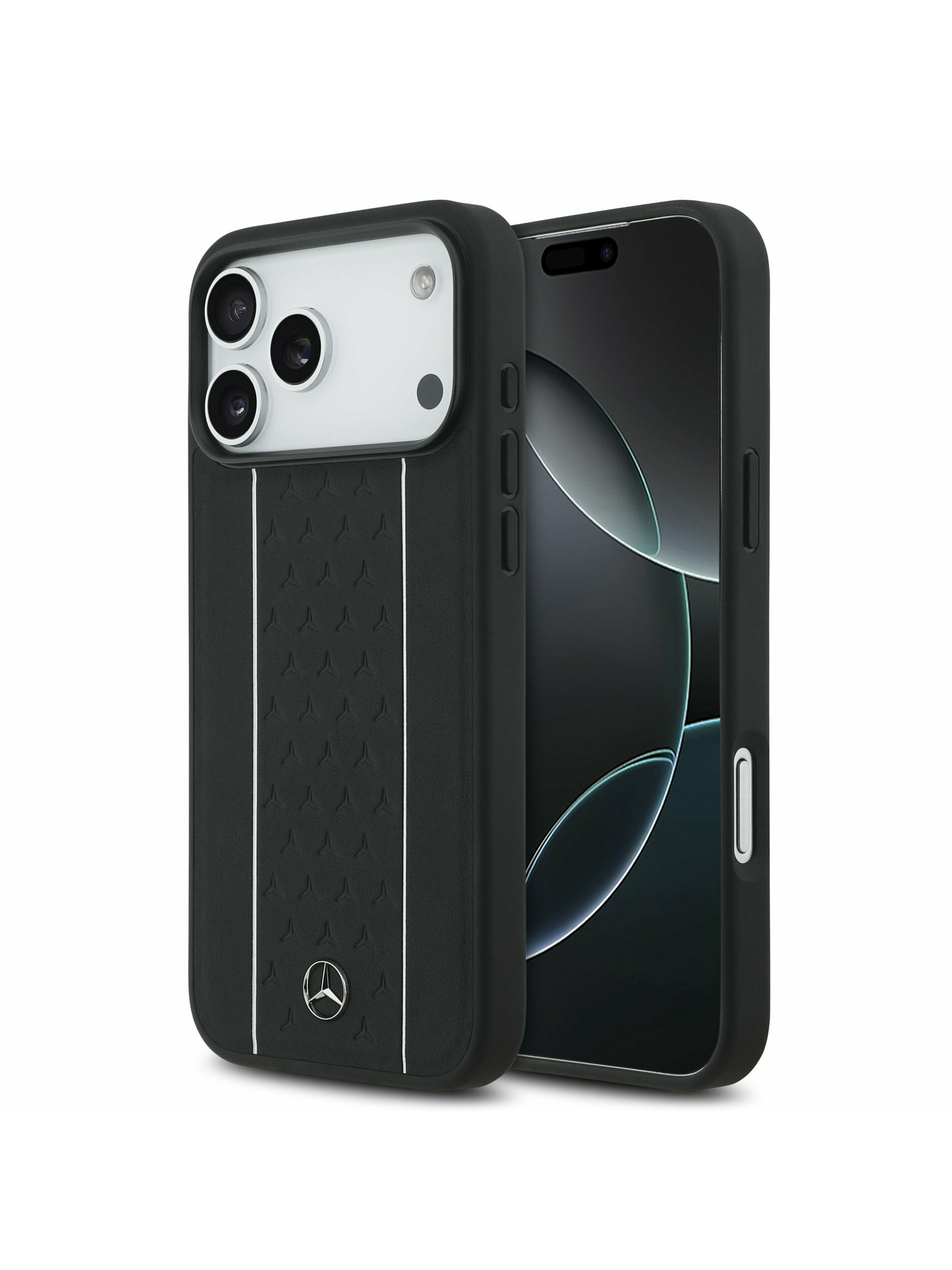 Mercedes Leather Star Pattern and Stripes MagSafe Zadní Kryt pro iPhone 17 Black/White