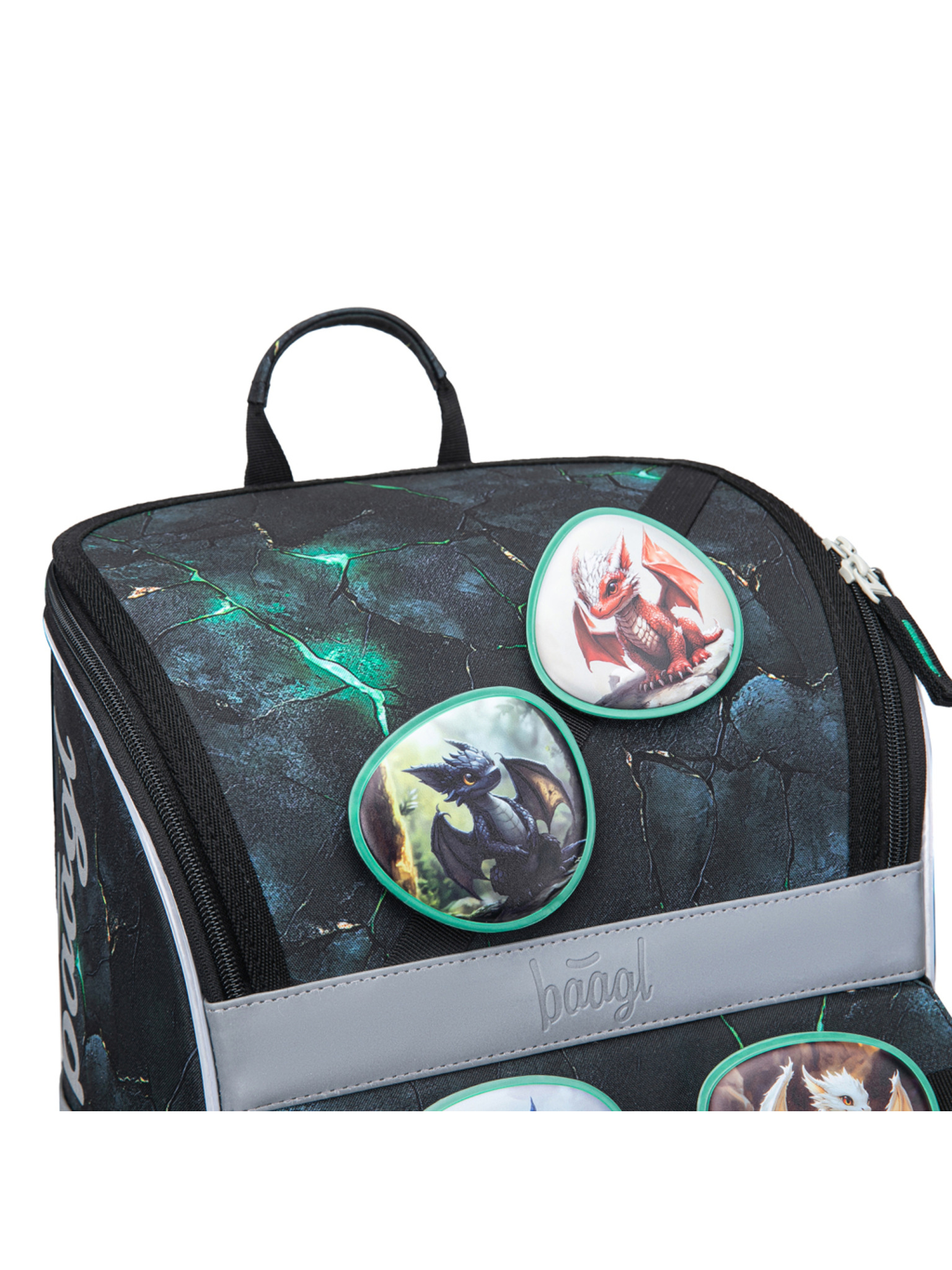 • Unikátní systém vyměnitelných odznáčků umožňuje přizpůsobit vzhled aktovky podle nálady a zájmů dítěte.