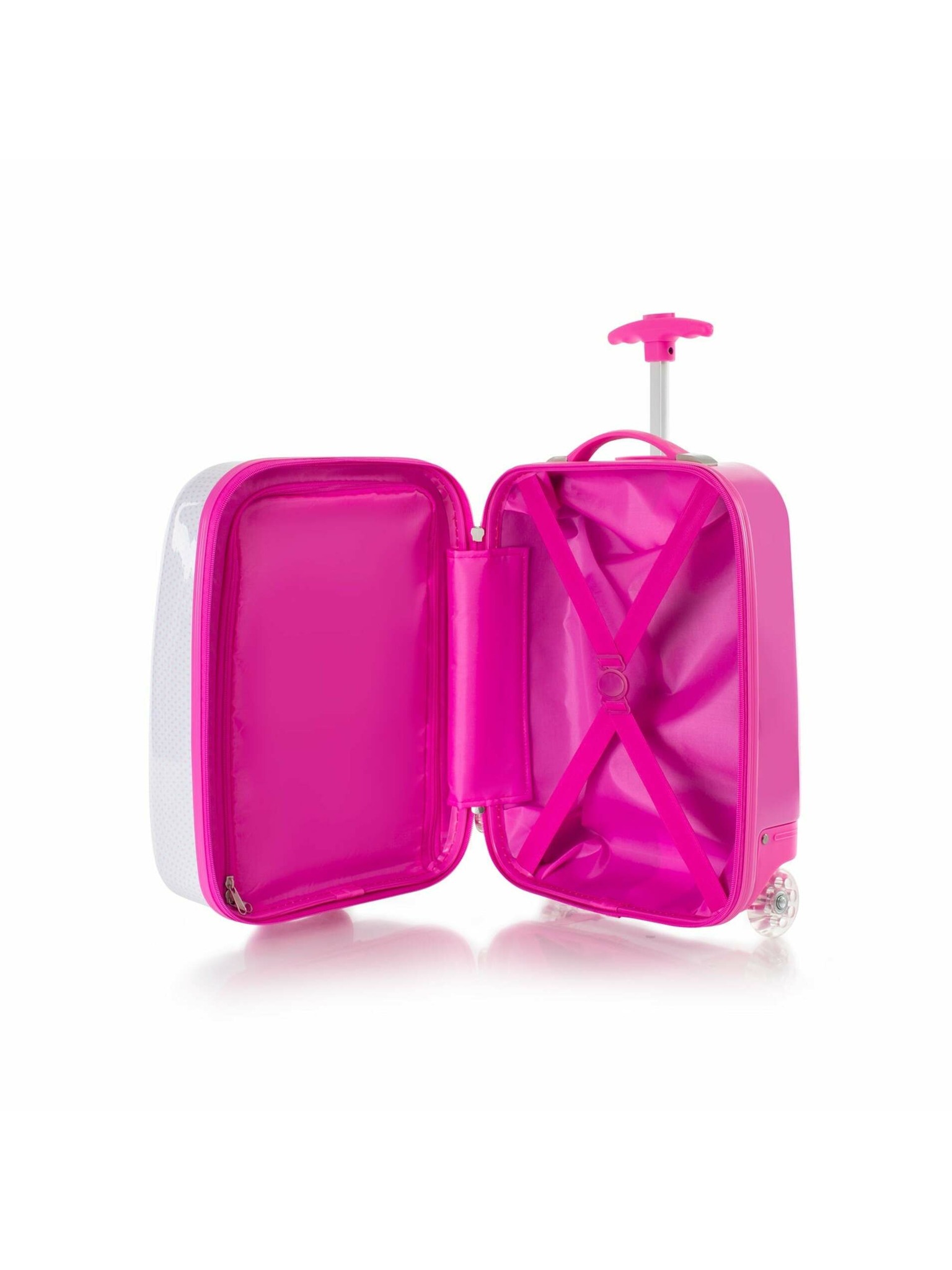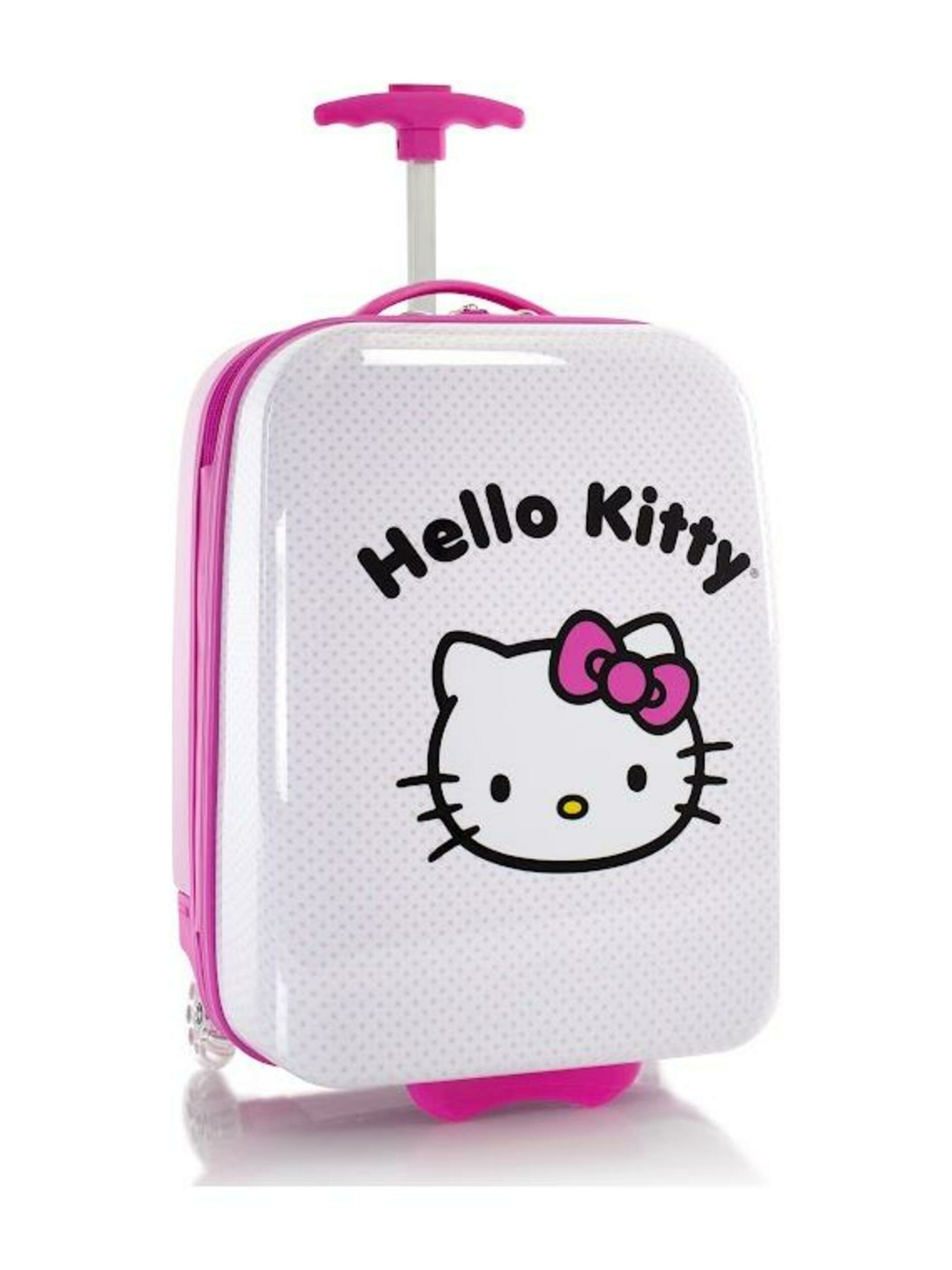 Dětský skořepinový kufřík s motivem oblíbené postavičky Hello Kitty je ideálním zavazadlem na vícedenní rodinné výlety, dovolenou i prázdniny u prarodičů. Konstrukce přizpůsobená dětem zaručuje pohodlnou jízdu i manipulaci. Kufřík je lehoučký, díky tvarovanému výsuvnému madlu pro děti dobře ovladatelný. Robustní kolečka udržují dno zavazadla v dostatečné výšce nad zemí a chrání ho před odřením. Vnitřní prostor je vybaven stejně jako kufry pro dospělé dělicí příčkou na zip a popruhy, balení tak bude ještě snazší jak pro samotné děti, tak dozorující rodiče.