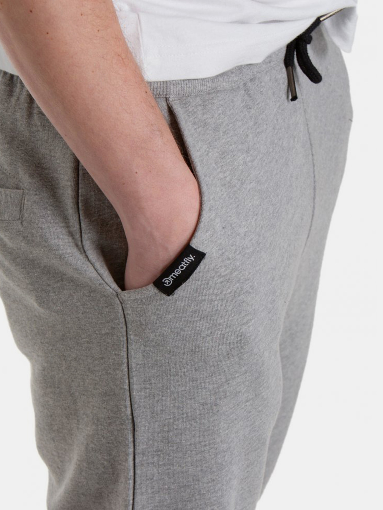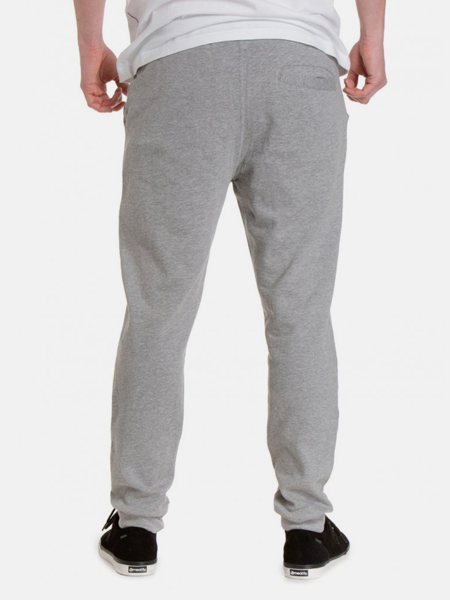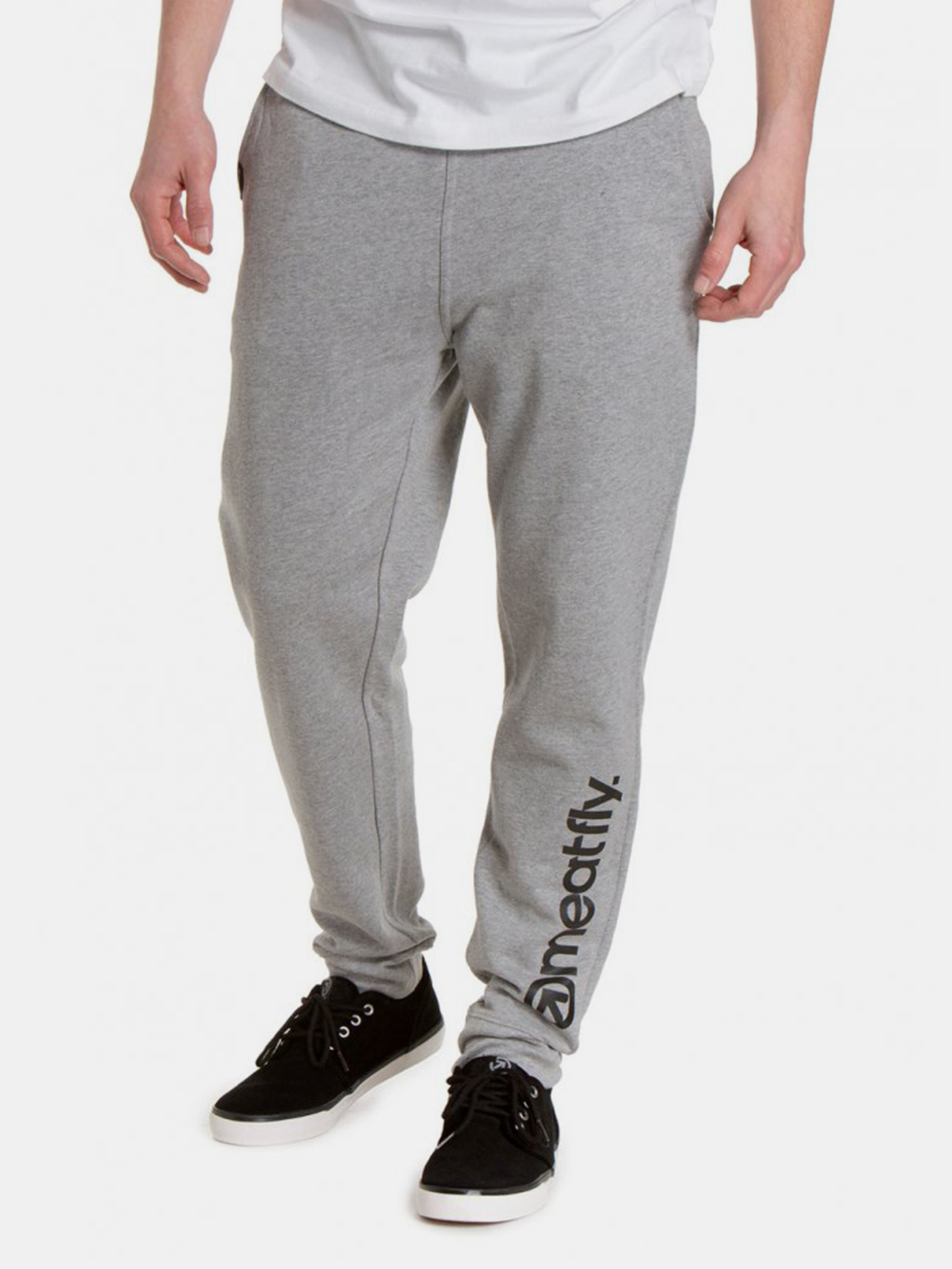 Pánské tepláky s lemováním a žebrováním na nohavicích - šedý melír