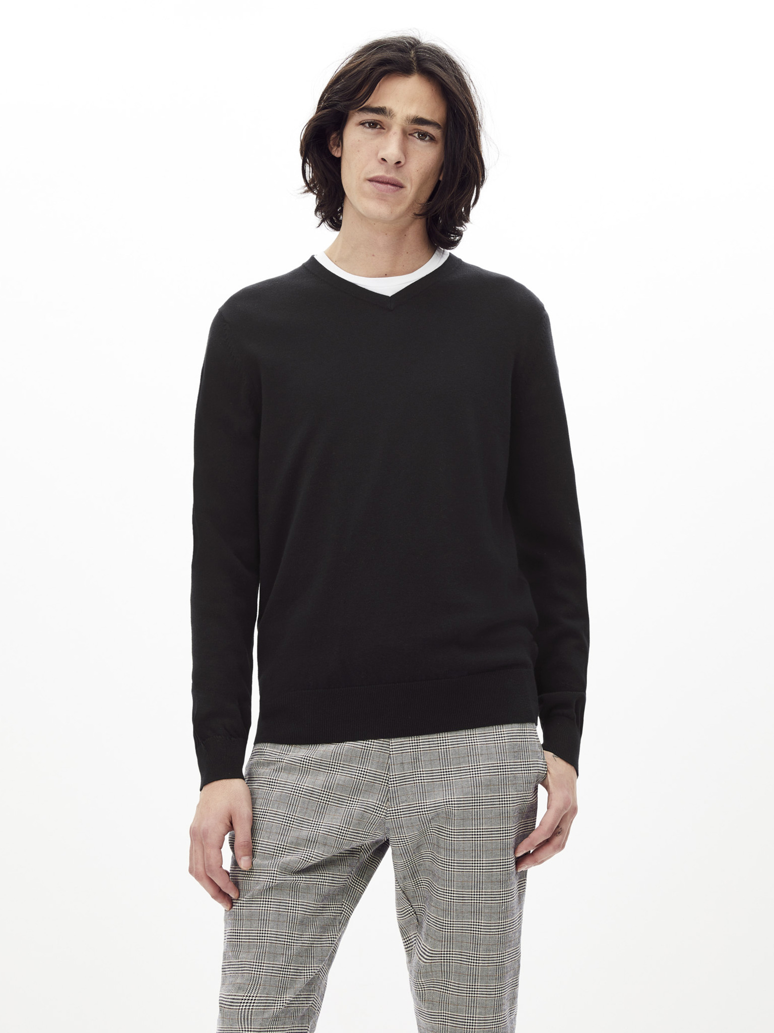 Černý pánský basic svetr s véčkovým výstřihem Ombre Clothing