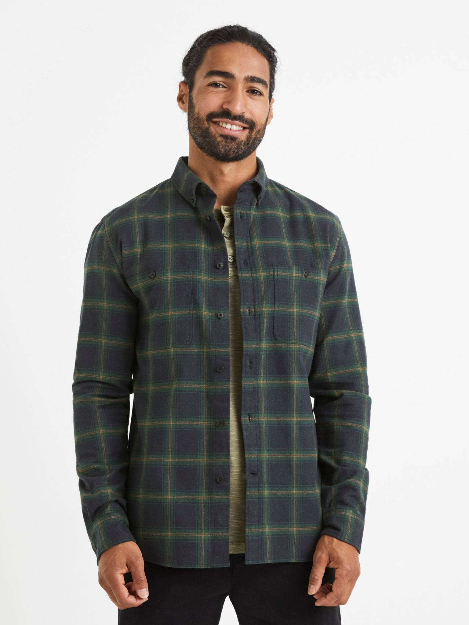 Černo-zelená pánská kostkovaná košile Celio Dawayne